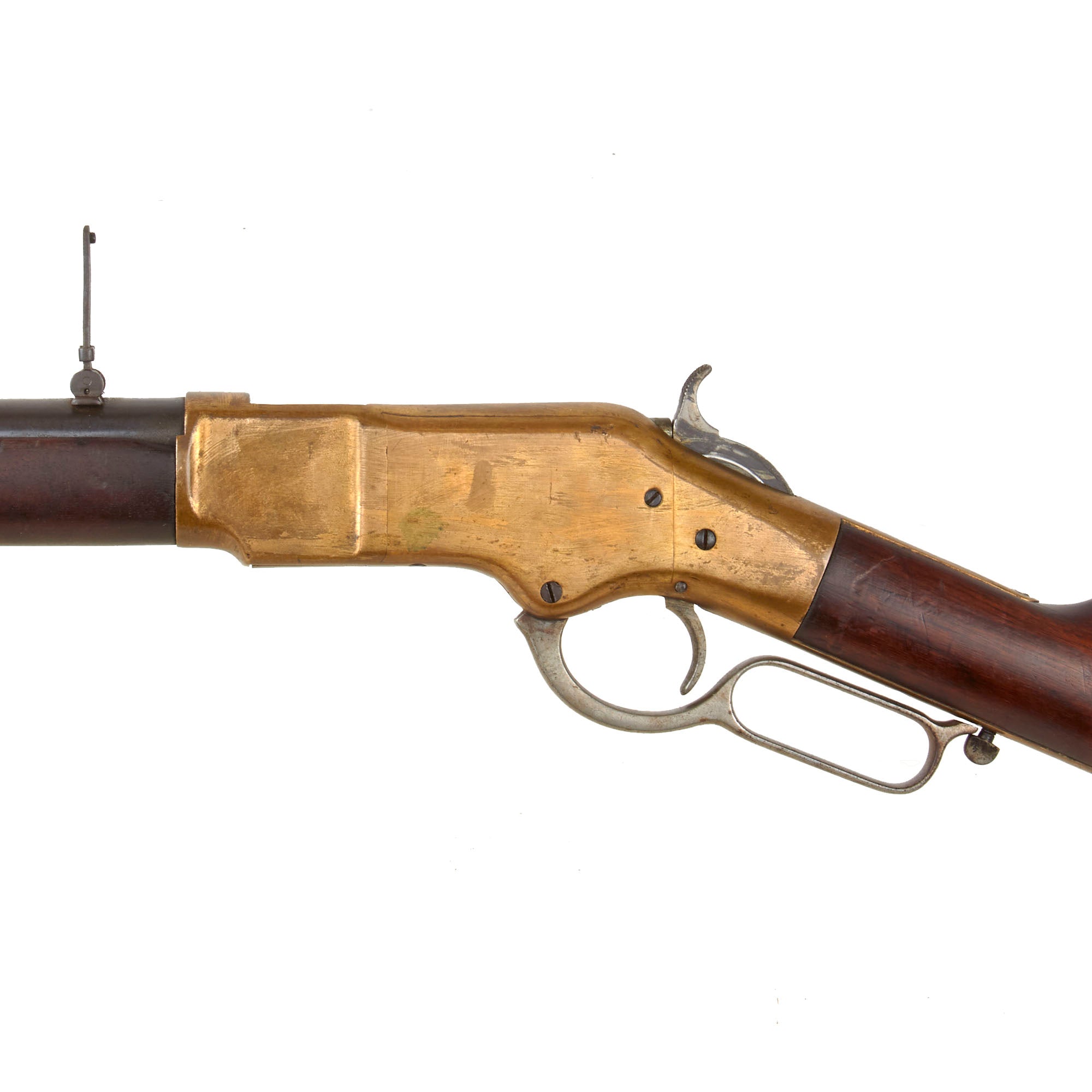 Original Item: Only One Available. This is a rare treat! A genuine M-1866 YELLOW BOY, the legendary Brass-framed first Winchester Repeating rifle! First introduced in 1866, having taken over the Henry Rifle Company, Oliver Winchester launched one of the iconic Firearm names in the history of THE OLD WEST. Many refer to the Winchester repeating rifle as the "GUN THAT WON THE WEST"! While the Model 1873 improved on many aspects of the Model 1866, it lacked the beautiful lines and lovely "gunmetal" frame that its predecessor had.
