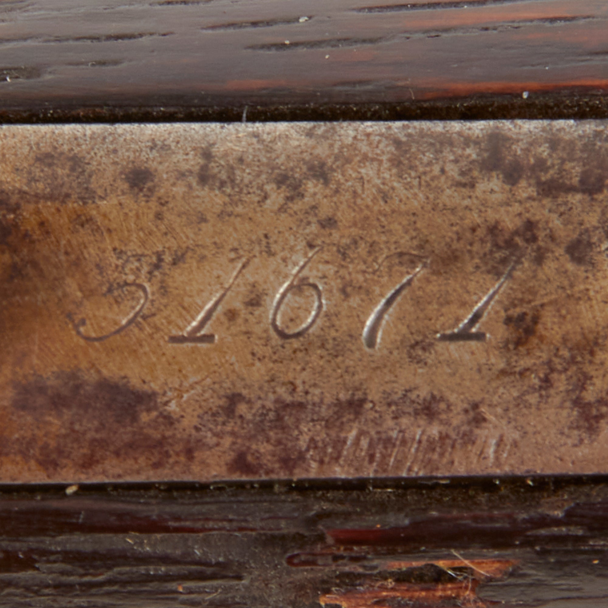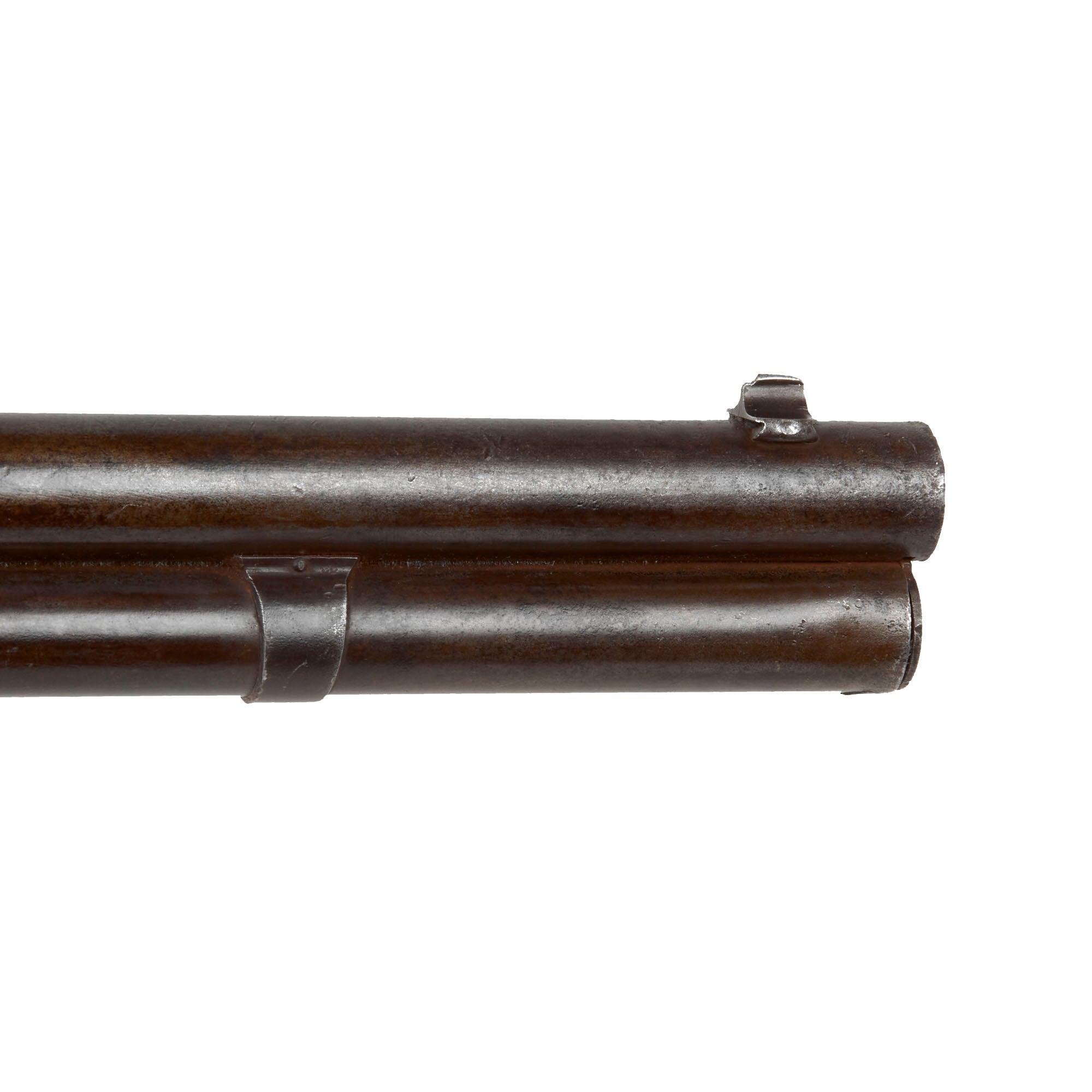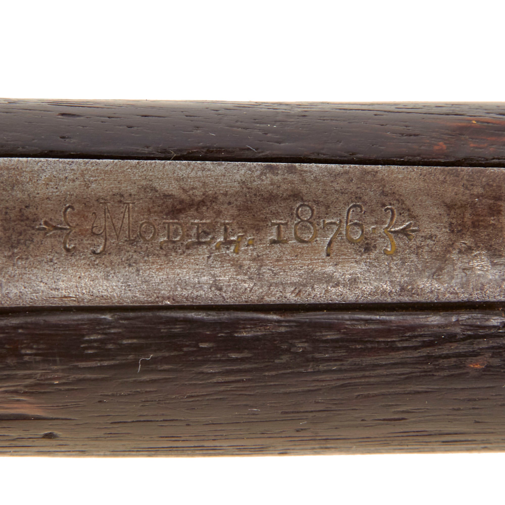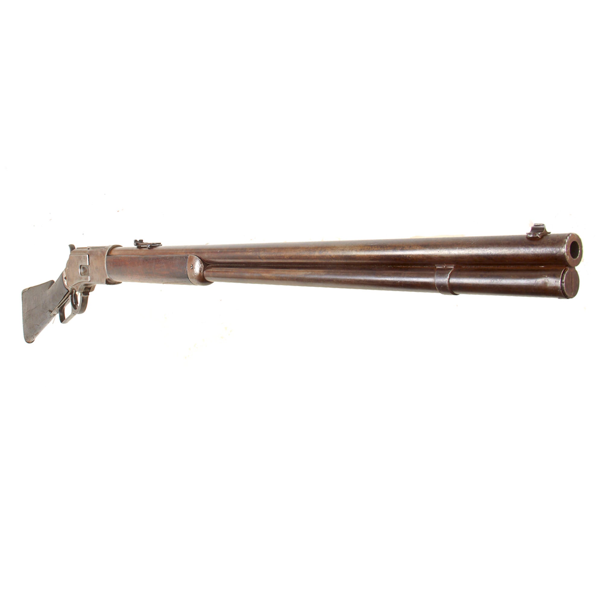 Correctly marked on the upper receiver tang with MODEL. 1876., the rifle is also marked with the caliber CAL 40 - 60 over the chamber on the barrel and 40 - 60 on the brass carrier block. Per our research only 9,275 M1876 rifles were made in this caliber, and only 6,612 of those were made with the 28" barrel. It bears serial number 51671 on the lower receiver tang, denoting the year of manufacture as 1885, though there is some disagreement between different sources, with some listing it as 1884 and some 1886. The barrel is fitted with a standard Winchester rod on blade front sight and rear adjustable ladder sight marked 1876 at the top.