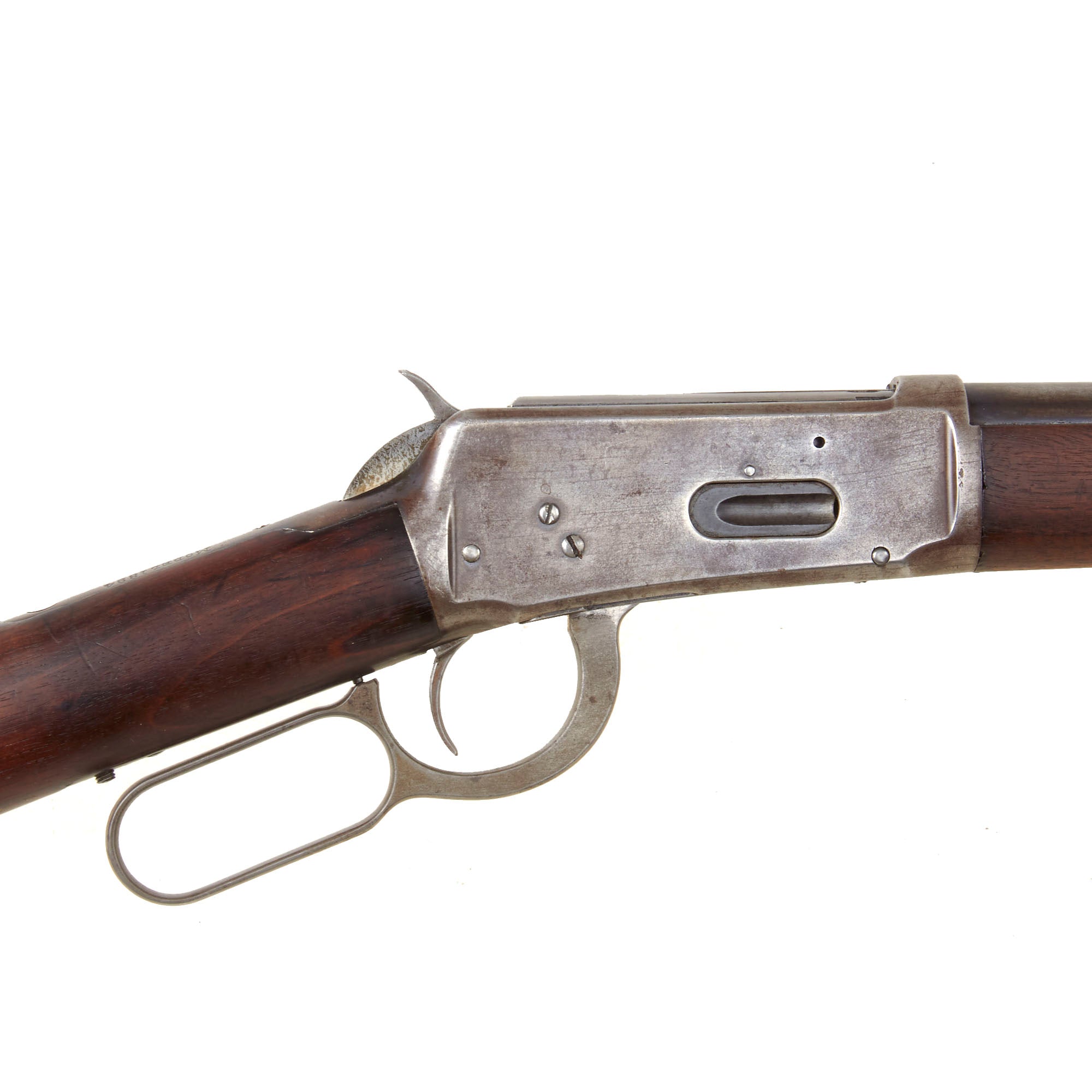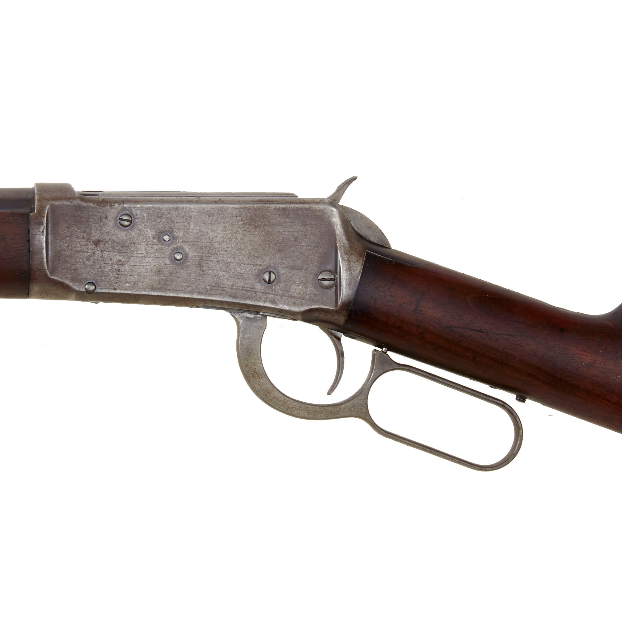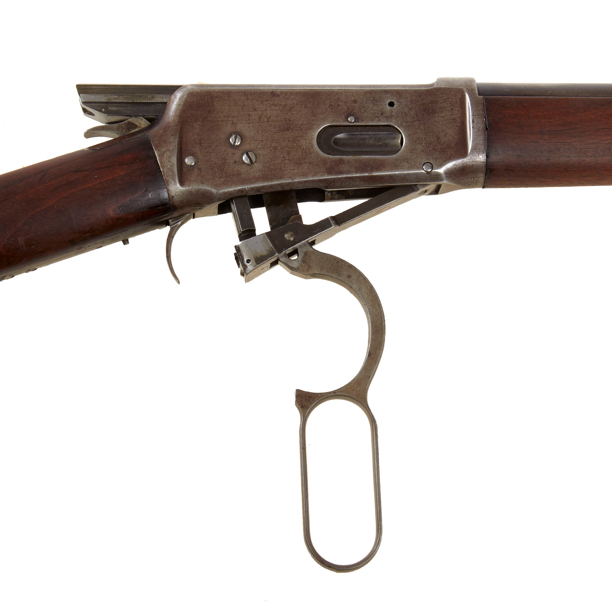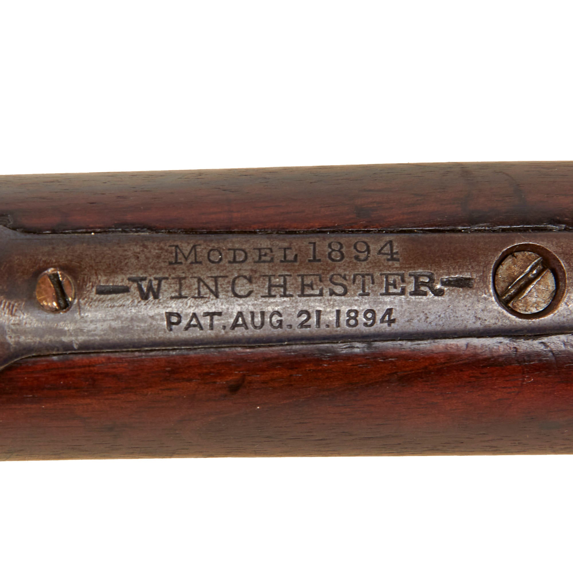 Original Item: Only One Available. This is a great find! A very desirable Winchester model 1894, Serial number 56503 in the famous Winchester .30-30 Caliber. This rifle is one of the most popular lever action repeaters ever marketed, and is popular to this day as a sporting and hunting rifle. This example features a ladder-style rear adjustable sight, with a rod front sight. It features a full-length magazine tube, and a special order 26 inch round barrel, which is marked: