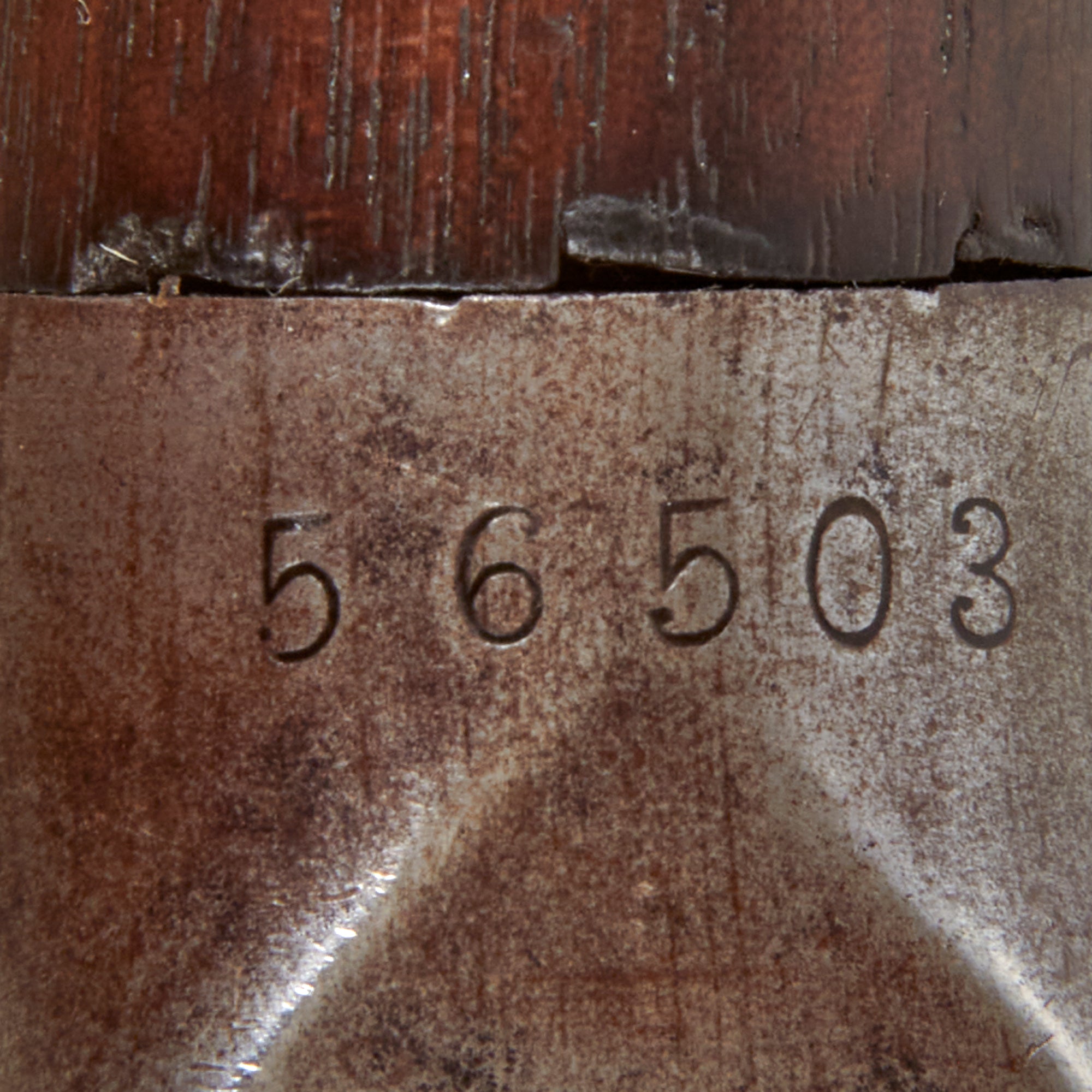 The rifle is offered with a crisp tight action in fully functional condition. Metal work is good, with a lovely speckled patina of age, and no signs of major cleaning or restoration. We can still see a good amount of bluing on the barrel around the rear sight, which made it harder to clean that area. We checked the bore, and it is in very good condition, showing clear lands and grooves and a mostly bright finish. It definitely does show some wear and light overall oxidation from use. This is definitely a rifle that saw real use, possibly out on the frontier, but we would still rate it at about a 7 out of 10.