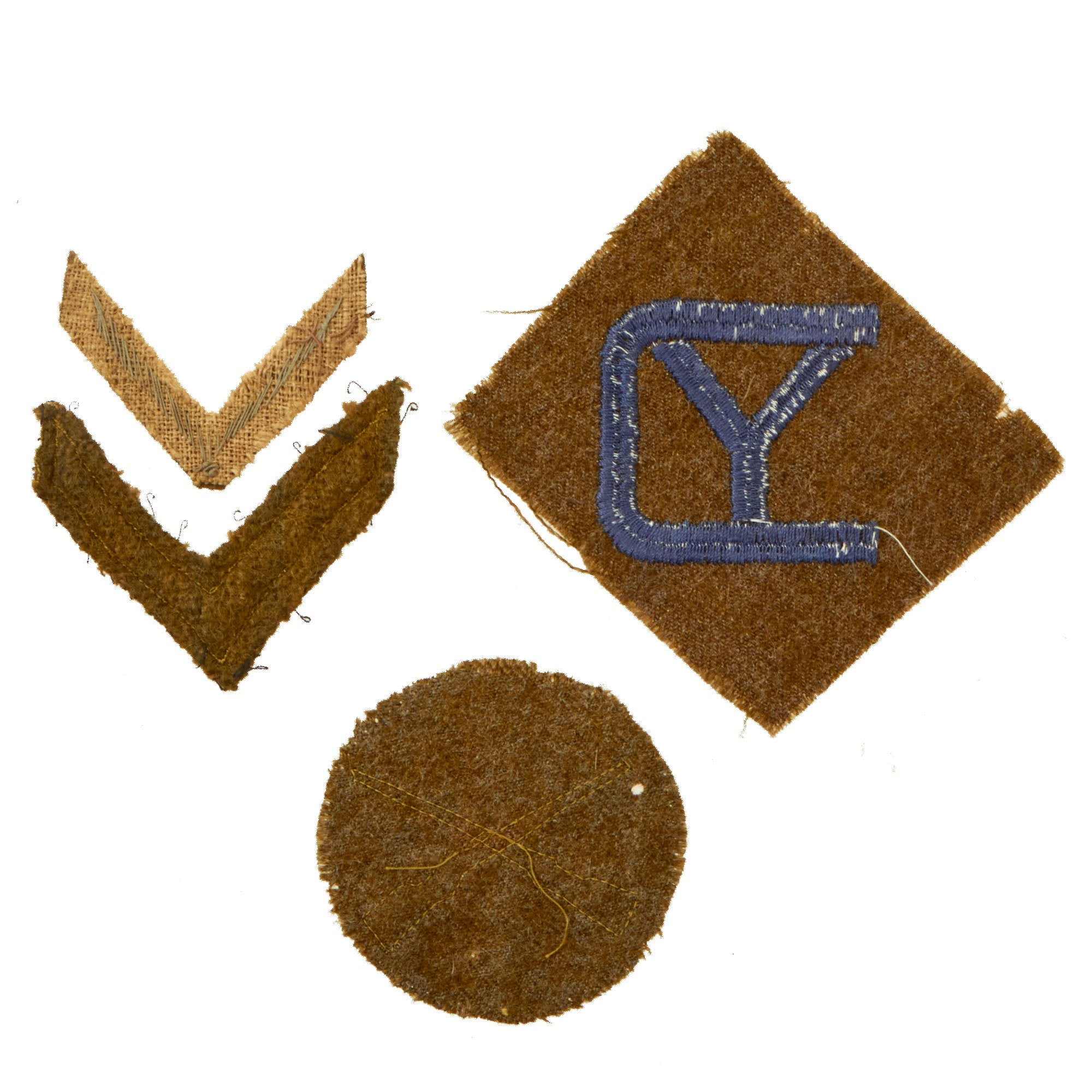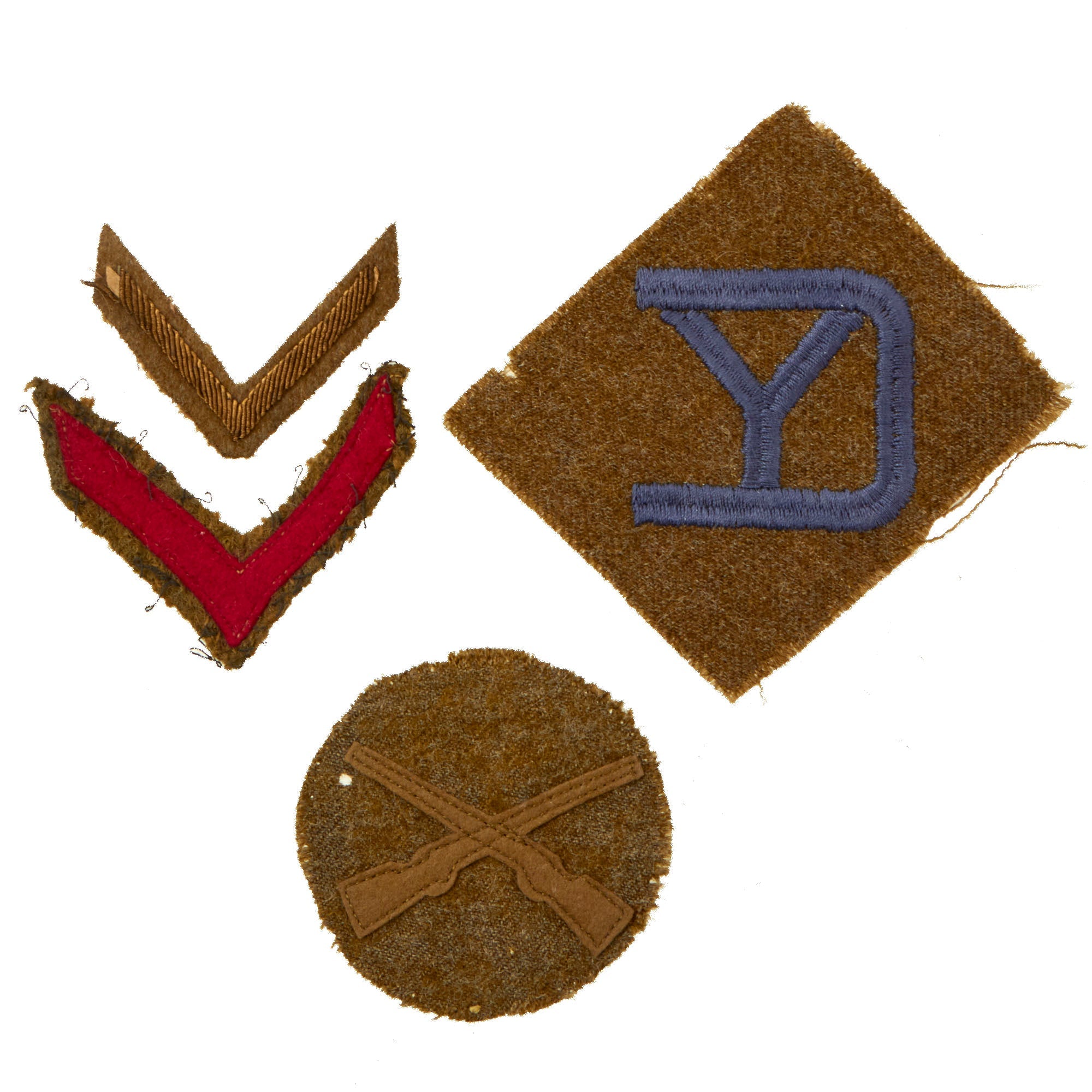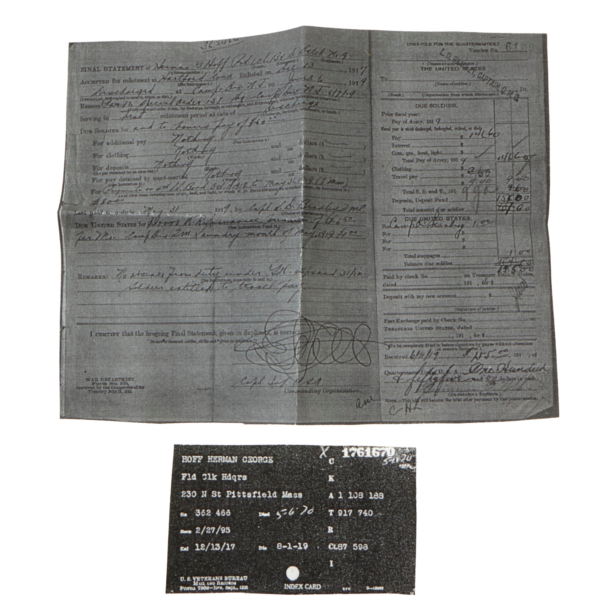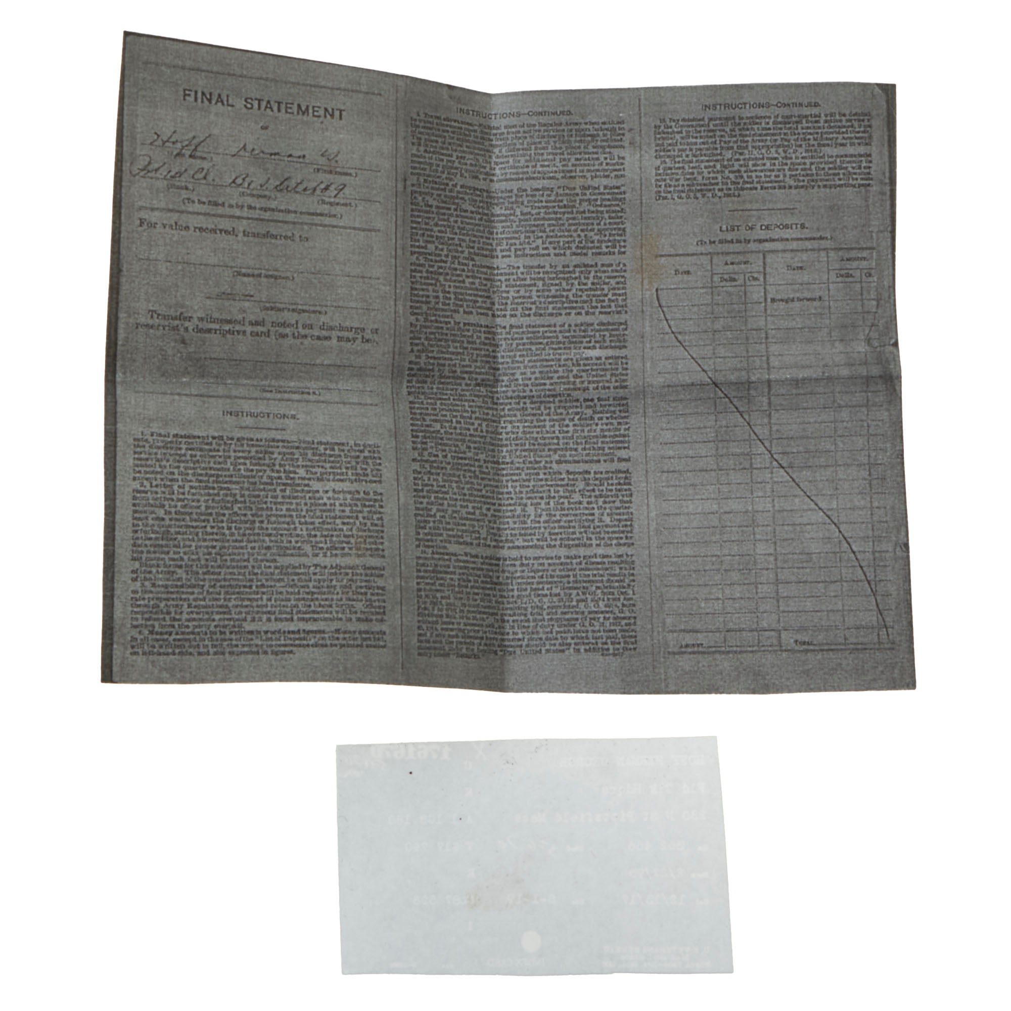 Original Item. One-of-a-Kind. This is a great 26th “Yankee” Division grouping with an attribution to Herman George Hoff, but we are not certain that the group belonged to him. The group has some great medals including an outstanding 5-place mini-medal bar and an extremely scarce French-Made U.S. WWI Victory Medal. This is not the French WWI Victory Medal, but a French jeweler-made example of the U.S. Victory Medal with a bar for the Meuse-Argonne Offensive. It even reads MADE IN FRANCE along the bottom rim and has several characteristics akin to that of French-made medals. This is the first example we have ever had!