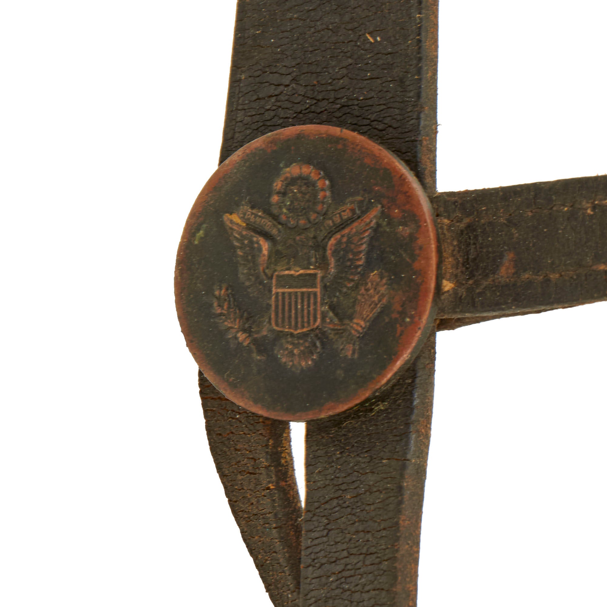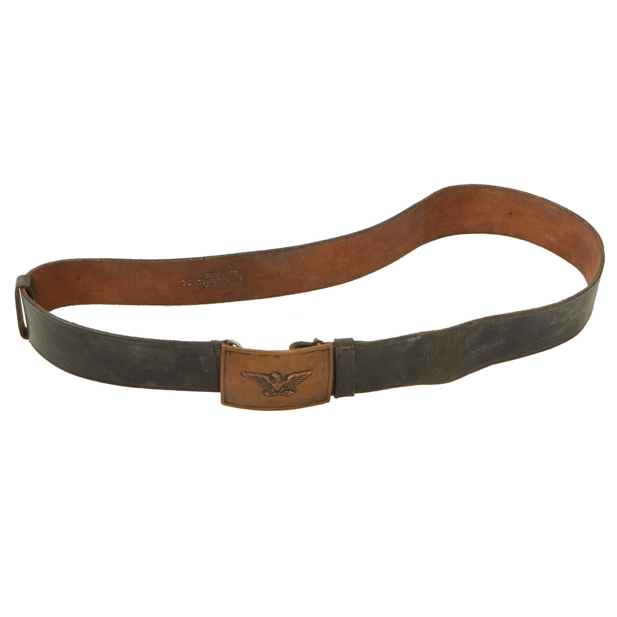 The set also includes an interesting leather belt with a Civil War style buckle with a small Federal eagle, a design we’ve never seen before. There is a maker mark but it is too worn to read.