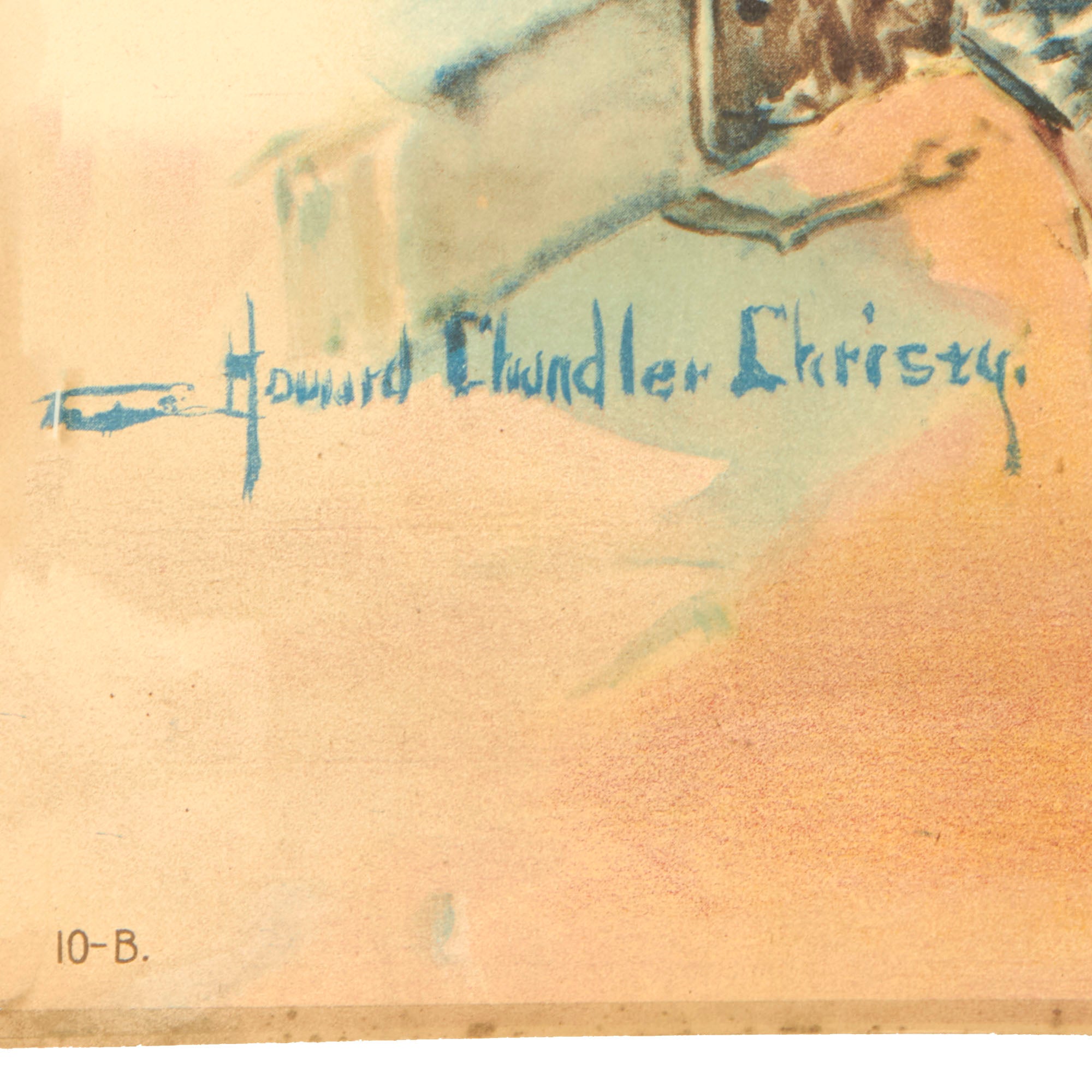 This poster was illustrated by Howard Chandler Christy in 1918. According to The Atlantic, Christy was known to be one of the most popular portrait artist in the Jazz Age Era of America. The poster is in good shape but there is a very heavy tear in the center of the poster from the top. The tear is about 6” long, and the poster should be framed to prevent further damage. The poster measures 20 x 30” and is in fair shape.