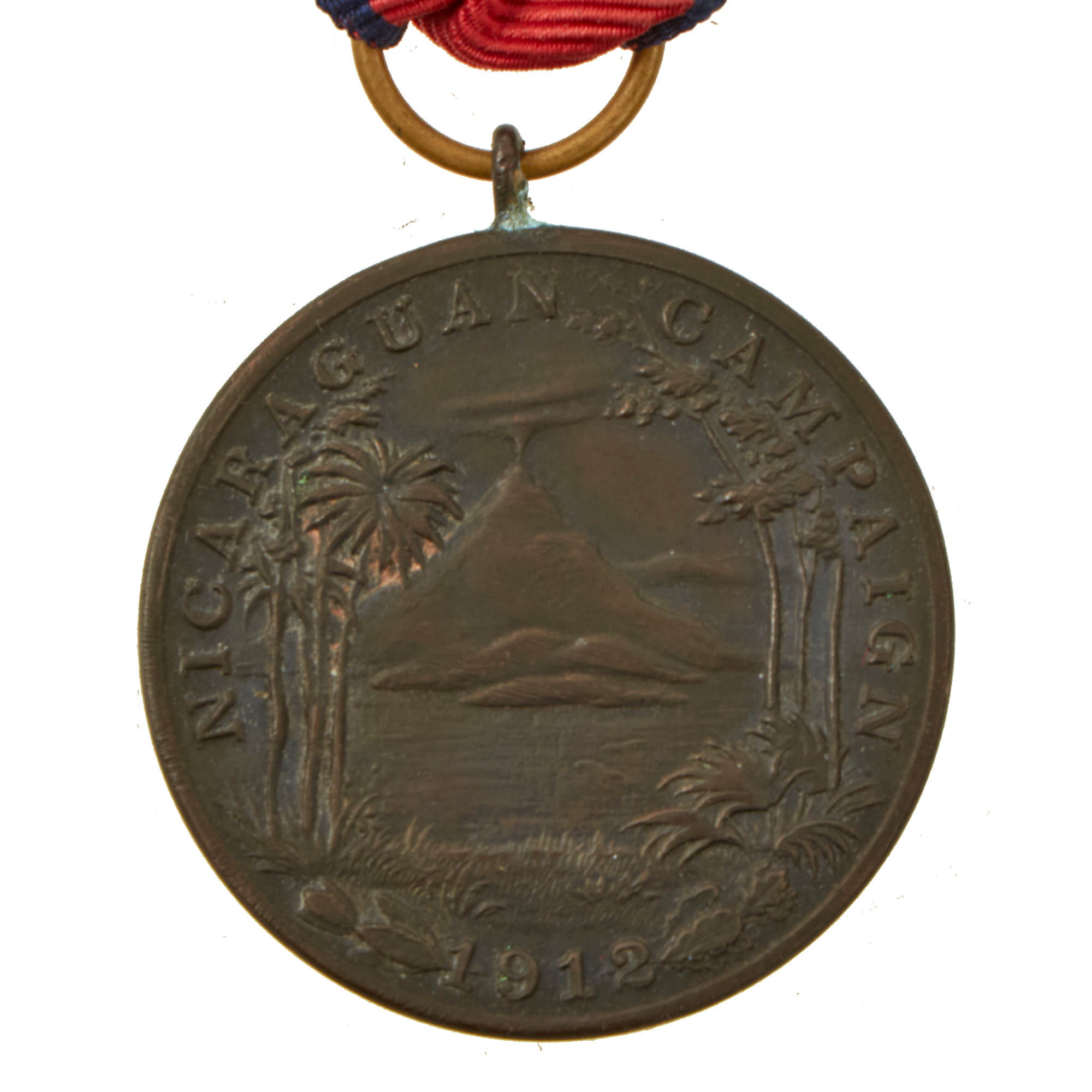 Original Items. Only One Available. This is an interesting medal, which we believe to be a restrike from the early-20th century. It is the Marine Corps 1912 Nicaraguan Campaign Medal. The medal shows honest age wear but does not have a rim-engraved number, which is why we believe it to be a restrike.