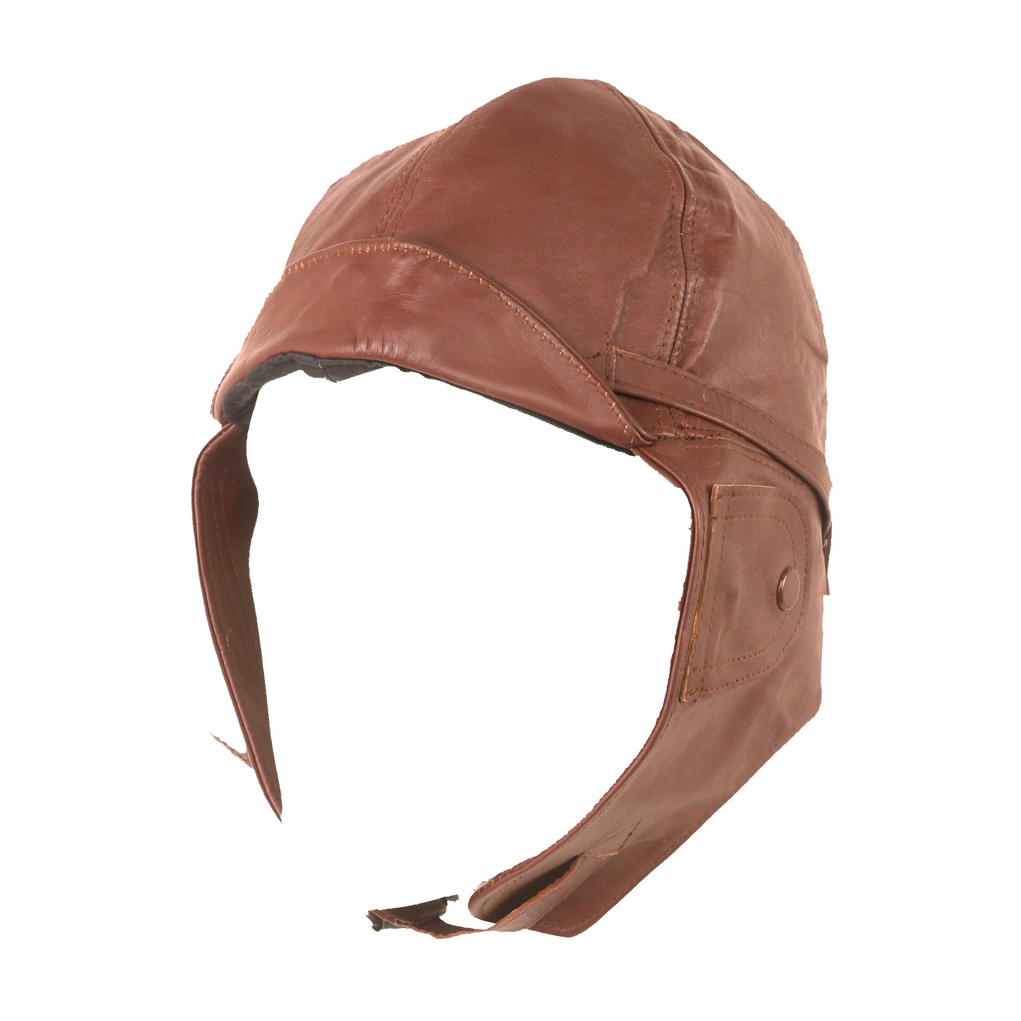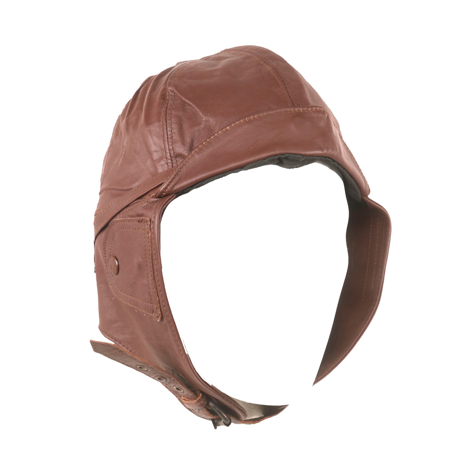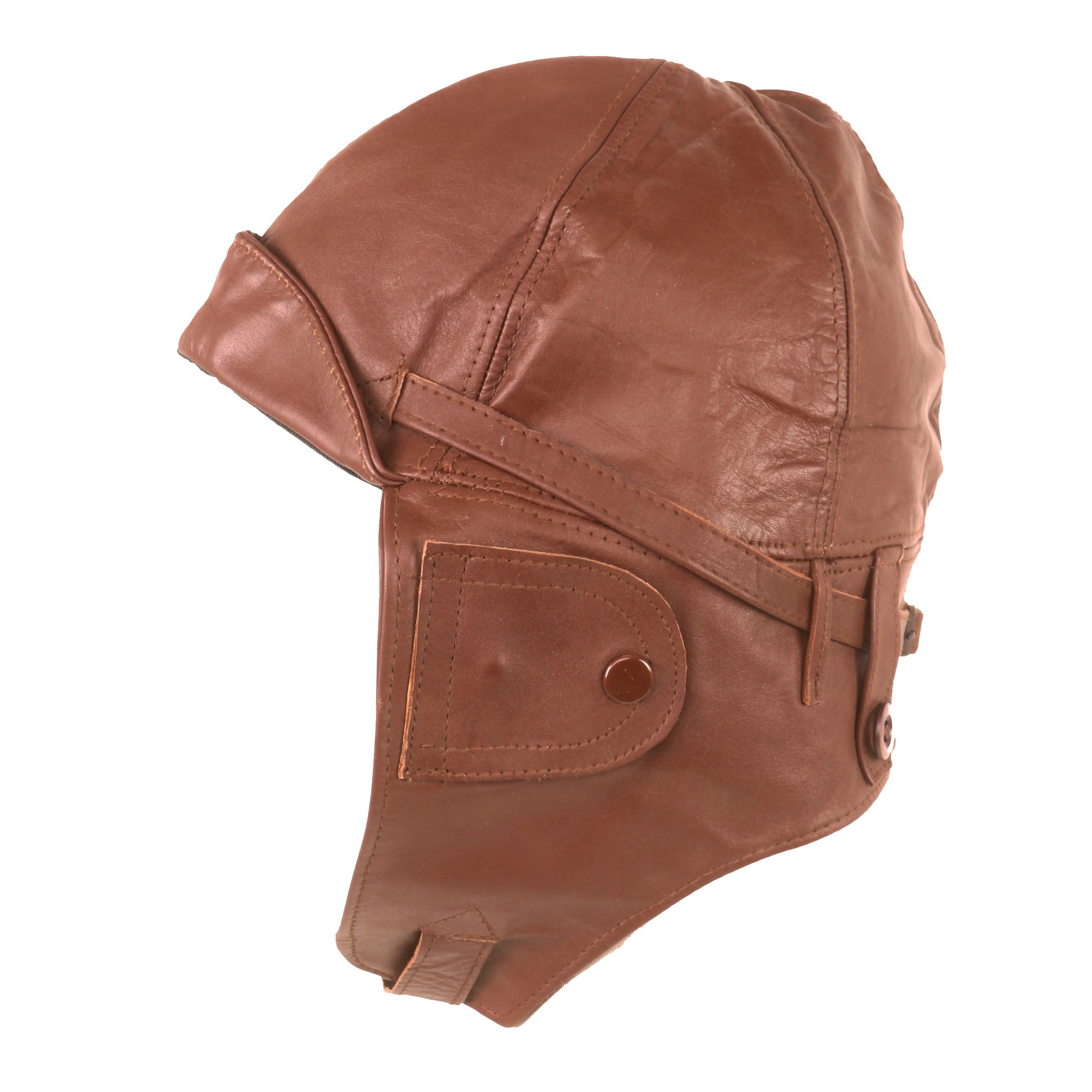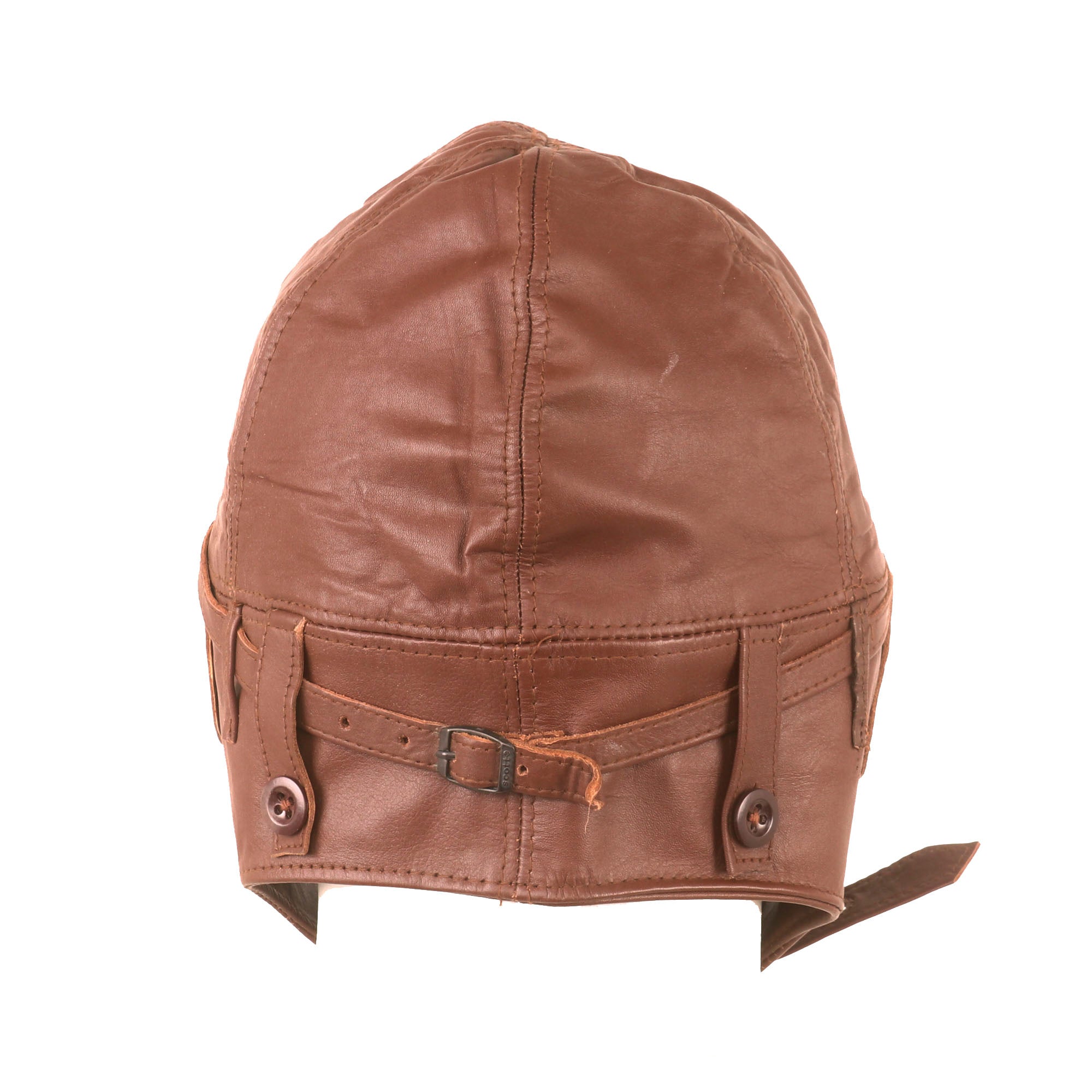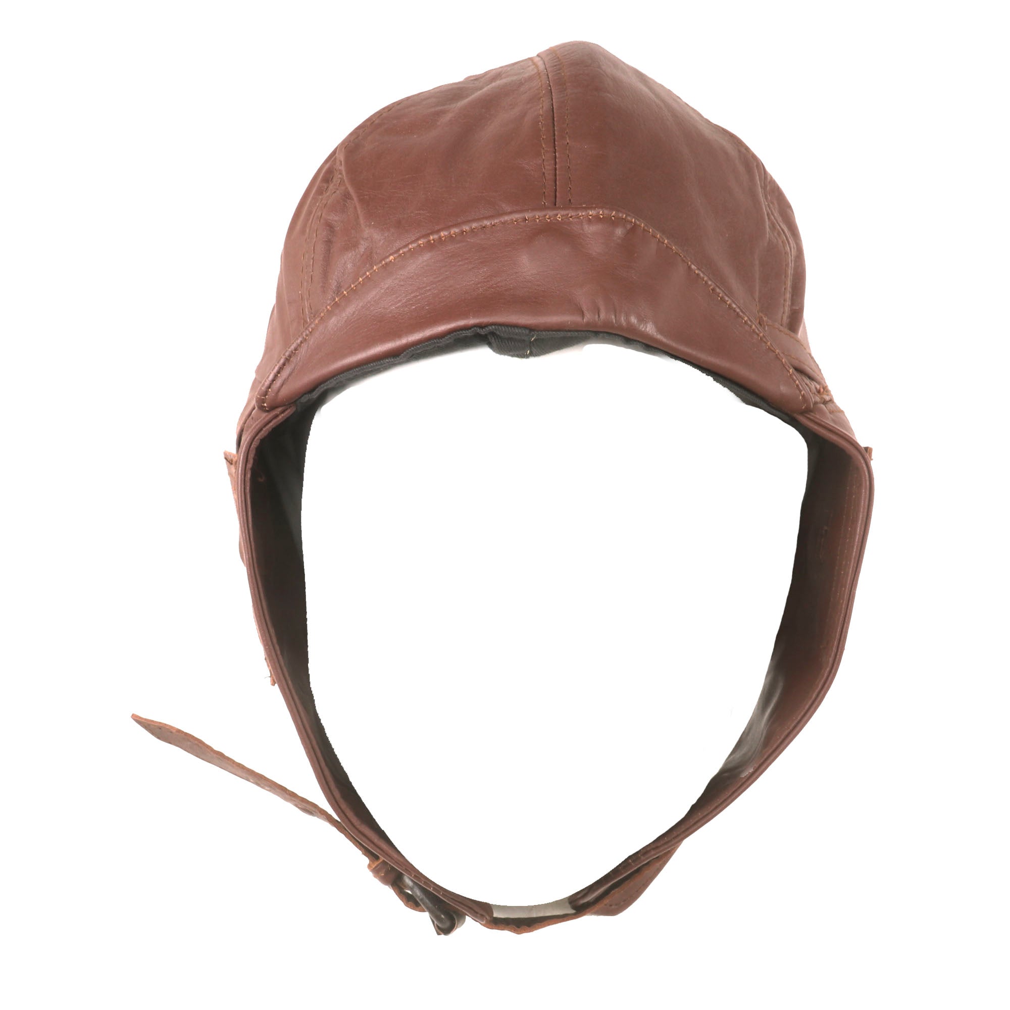 Construction is brown leather felt-lined flying helmet with buckle chinstrap, same style as a belt. Typical allied construction of the period with all snaps and buckles present; snaps are all period correct. The leather is in great shape, and the helmet probably saw very little use. Helmet is approximately 55/56cm (7).