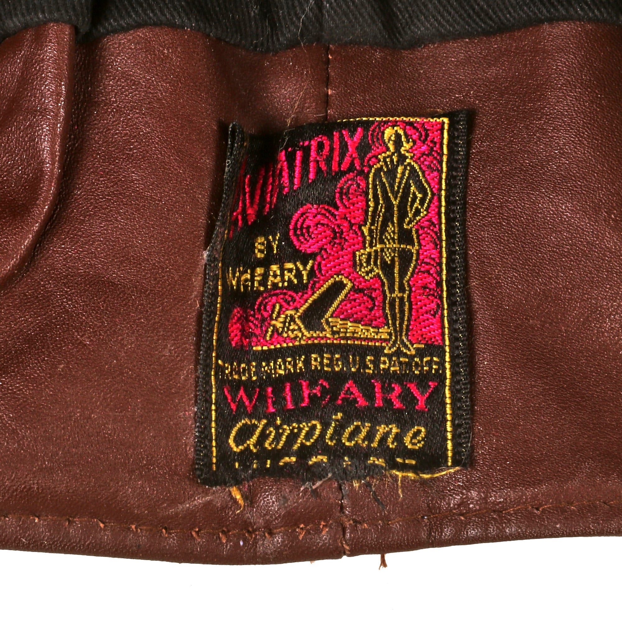Original Item: Only One Available. This fantastic rare example of a genuine WWI Aviator flying helmet is made of a soft leather and retains its Wheary Airplane tag on the interior. This model of helmet was called the Aviatrix.
