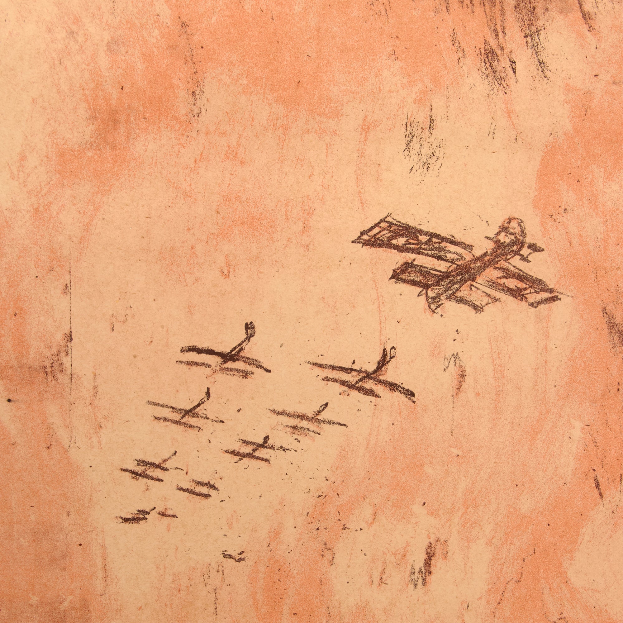 The poster has some issues including the top ½” being folded over from how it was stored, but this should look fine in a frame. The poster also has tearing and rips along the edges along with some fold markings in spots. There is a small tear on the left side and a very small hole above the planes. Otherwise, this example has held up tremendously well. The color is very well retained, much better than in other examples of this poster we’ve offered.