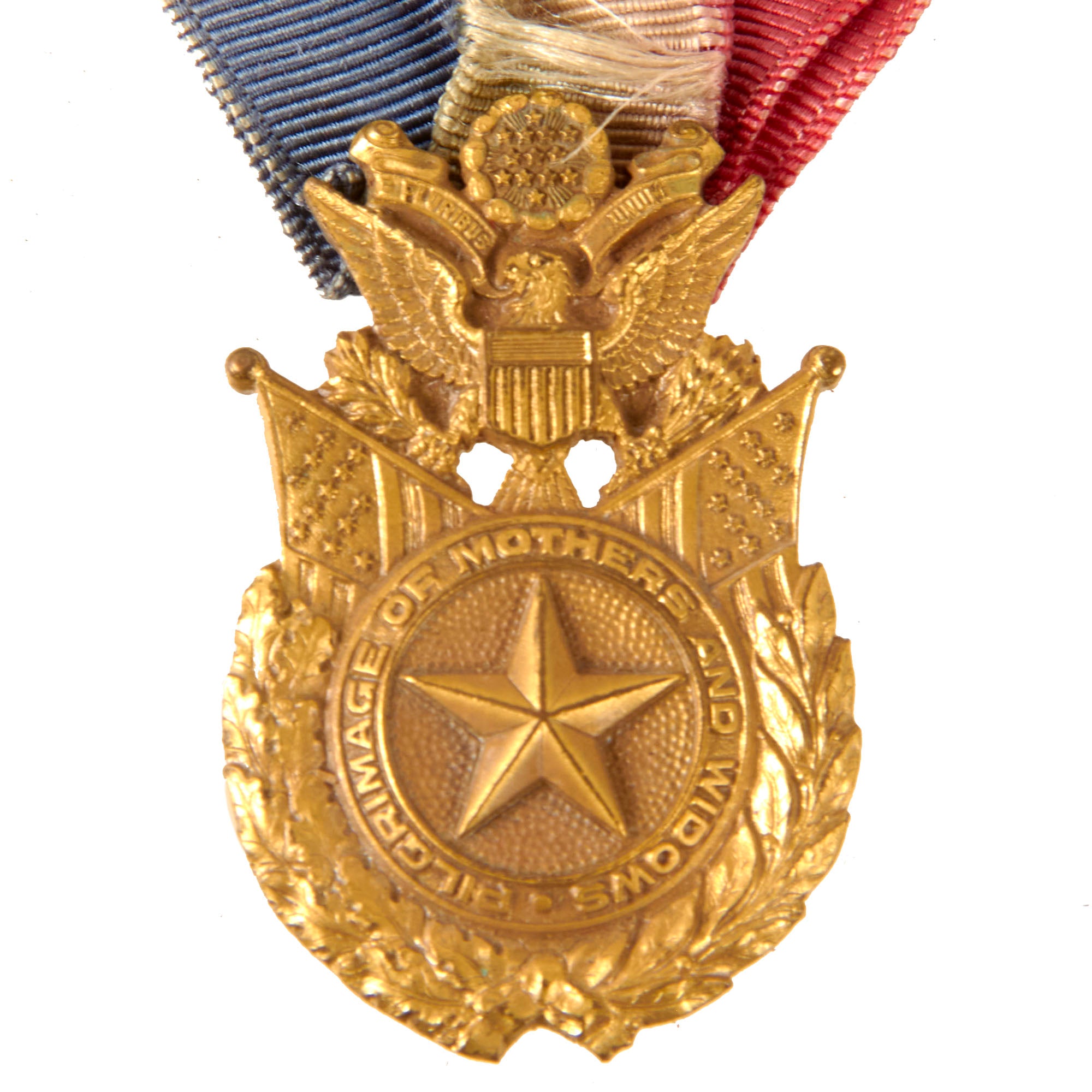 Original Item. One-of-a-Kind. This is a very scarce medal, the first of its kind we have ever offered on its own. During the 1920s, the Gold Star Mothers' Association lobbied for a federally sponsored pilgrimage to Europe for mothers with sons buried overseas. Although many of the women who belonged to the organization had visited their sons' graves, they realized that women often could not afford the trip to Europe. In their testimony, these women placed great emphasis on the bond between a mother and son. The bond between wife and husband seemed almost secondary in the congressional debates. The bond between fathers and sons was barely considered--the association maintained that the maternal bond surpassed that of the paternal bond.