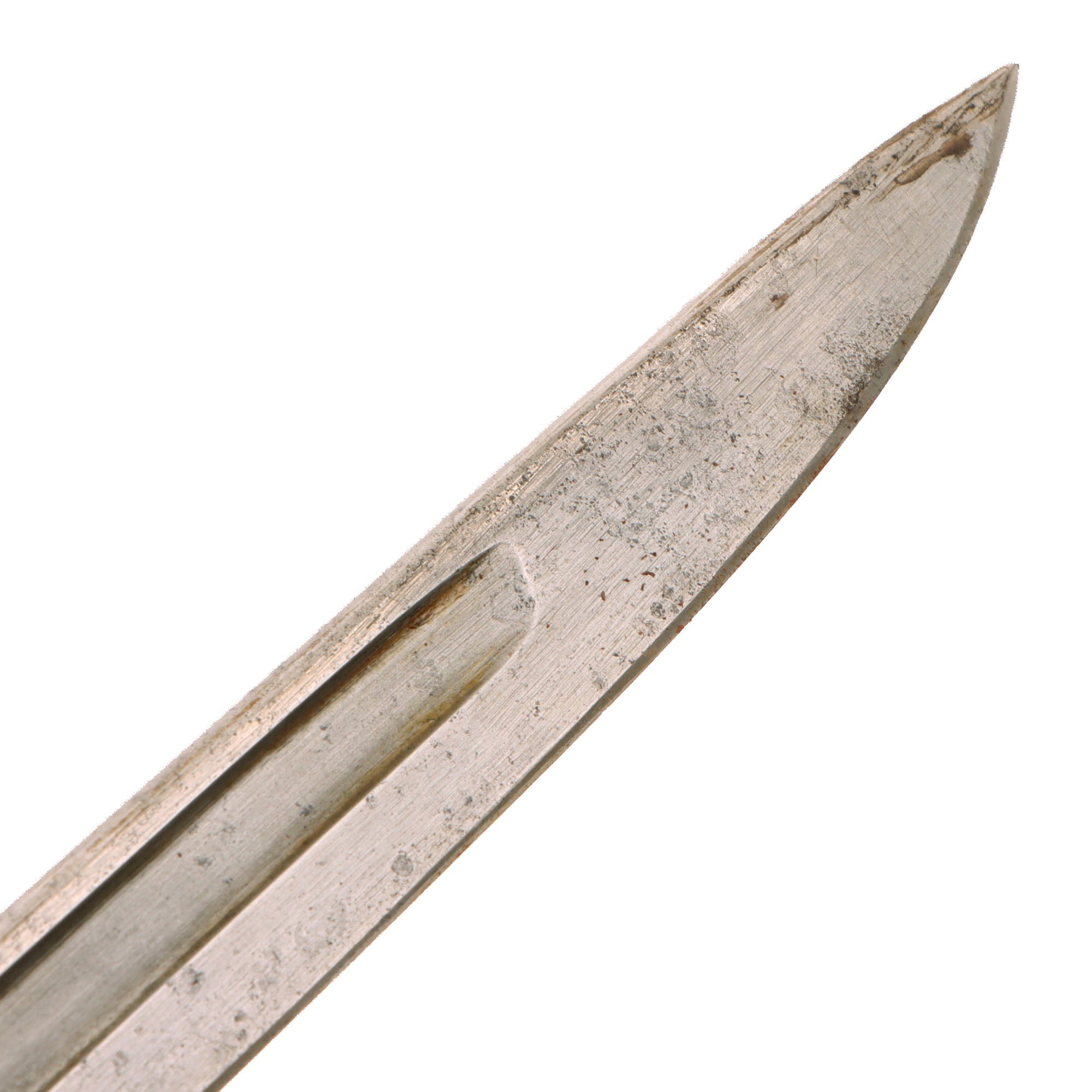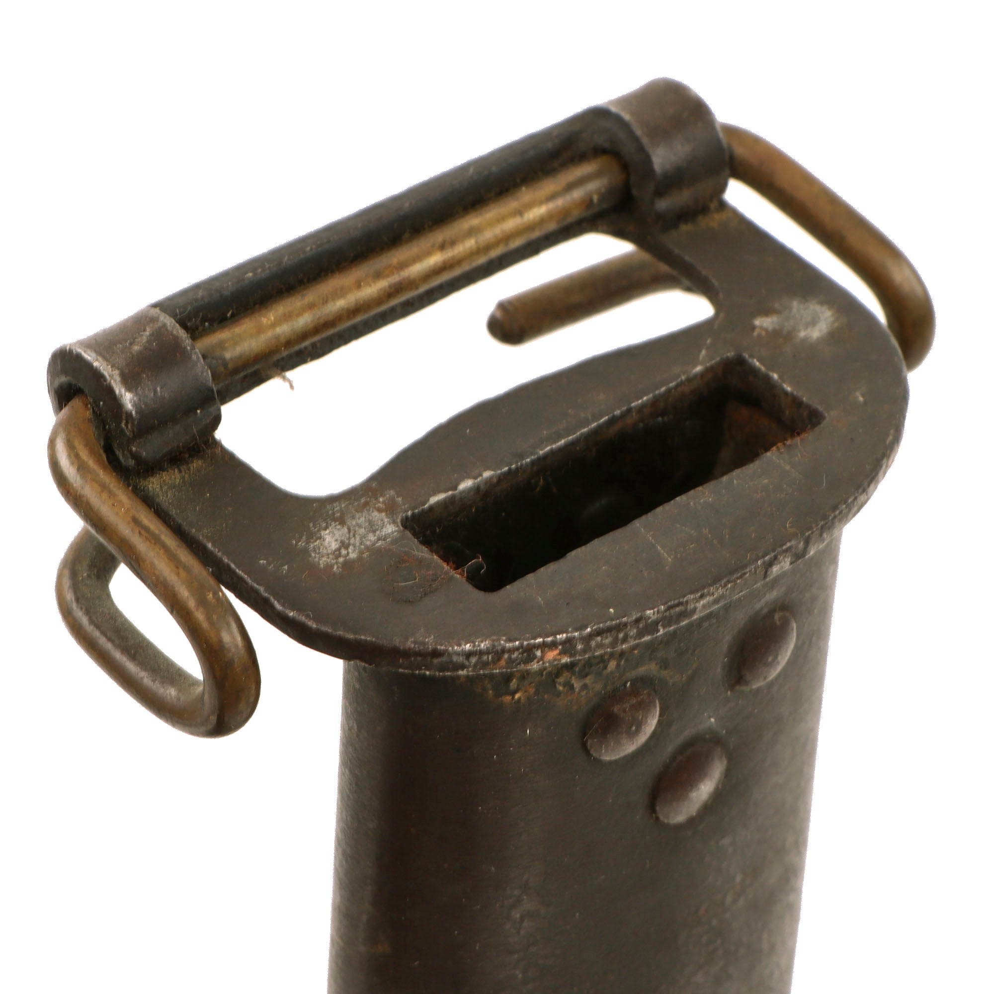 The scabbard is in good shape overall, with the throat and drag now covered in oxidation. It is stamped JEWELL - 1918.