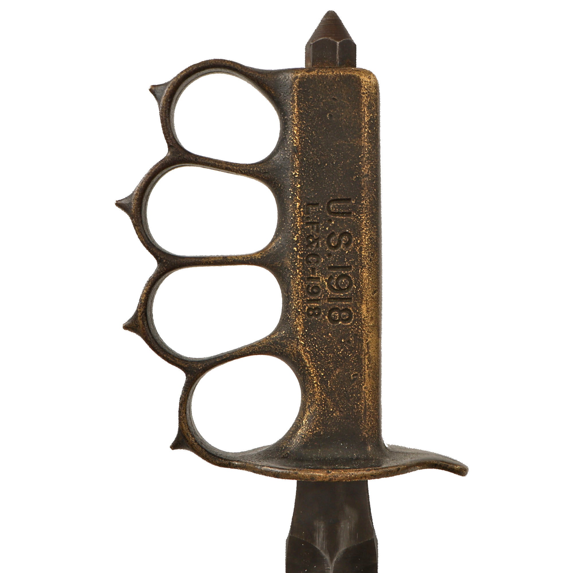 • Original Item: Only One Available. The U.S. Model 1918 Mark I Trench Knife was the second major "Knuckle Knife" to be officially adopted and issued to the US military. It was developed for use in the horrific trench warfare that typified the stalemate on the Western Front during the latter part of World War One and saw use not only there, but during World War Two as well. The knife was manufactured in the United States by Henry Disston & Sons (H.D. & S.) as well as Landers, Frary & Clark (L.F. & C.) and Oneida Community Ltd (O.C.L.). The knives were also produced in France and are marked with the usual 1918 and US marks, as well as Au Lion on the blade. Whether this mark was a maker's mark or simply a motto is not known.