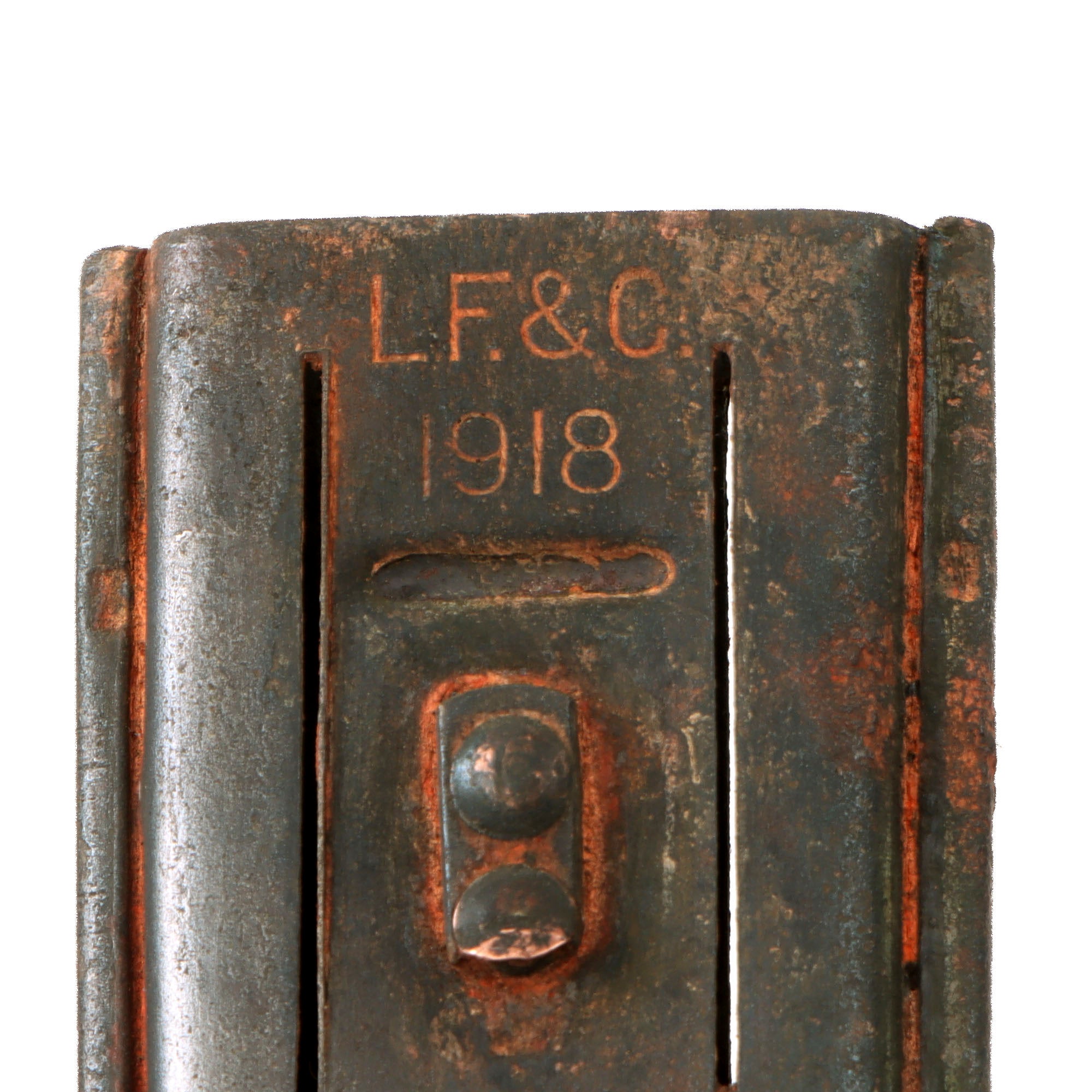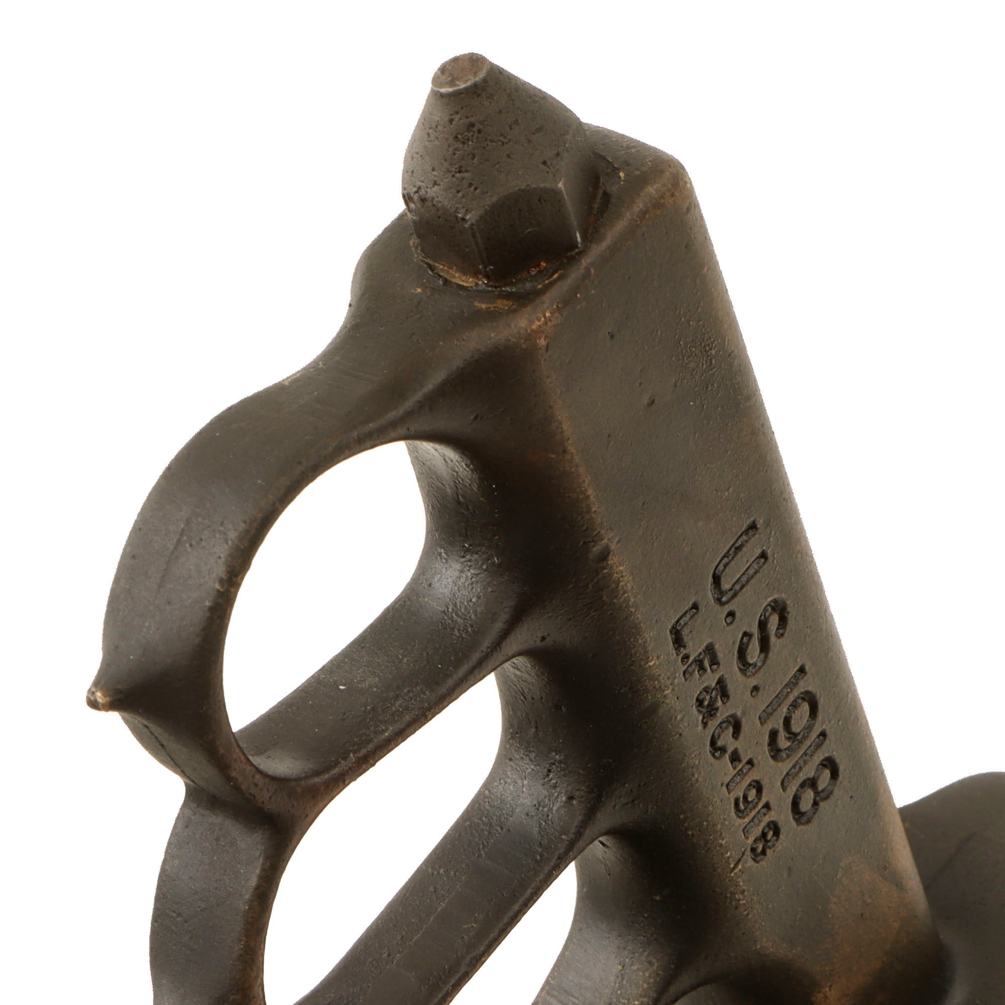 Original Item: Only One Available. The U.S. Model 1918 Mark I Trench Knife was the second major "Knuckle Knife" to be officially adopted and issued to the US military. It was developed for use in the horrific trench warfare that typified the stalemate on the Western Front during the latter part of World War One and saw use not only there, but during World War Two as well. The knife was manufactured in the United States by Henry Disston & Sons (H.D. & S.) as well as Landers, Frary & Clark (L.F. & C.) and Oneida Community Ltd (O.C.L.). The knives were also produced in France and are marked with the usual 1918 and US marks, as well as Au Lion on the blade. Whether this mark was a maker's mark or simply a motto is not known.