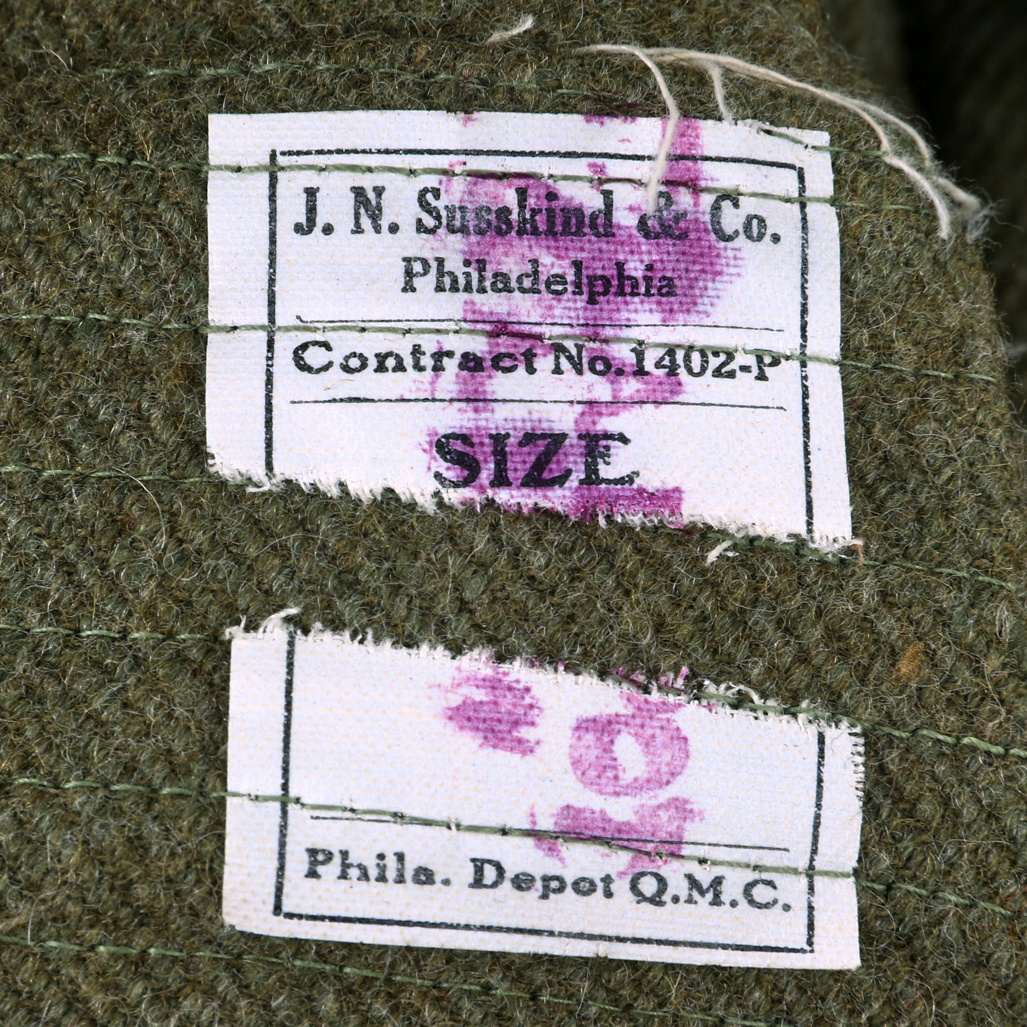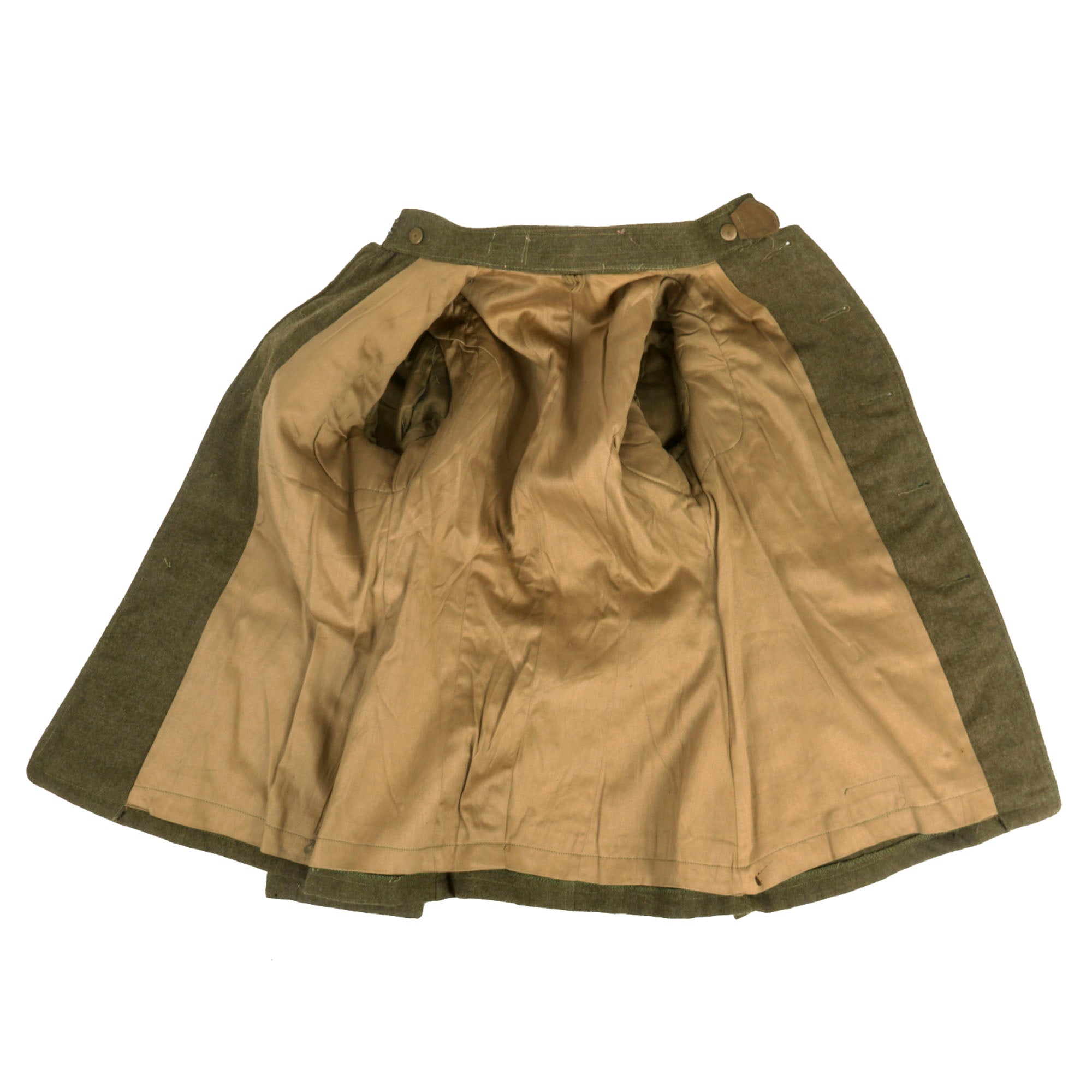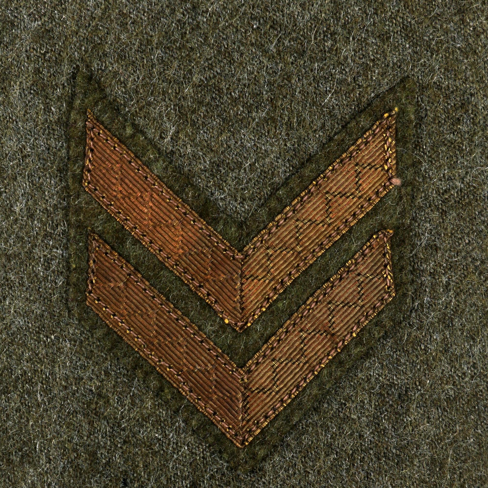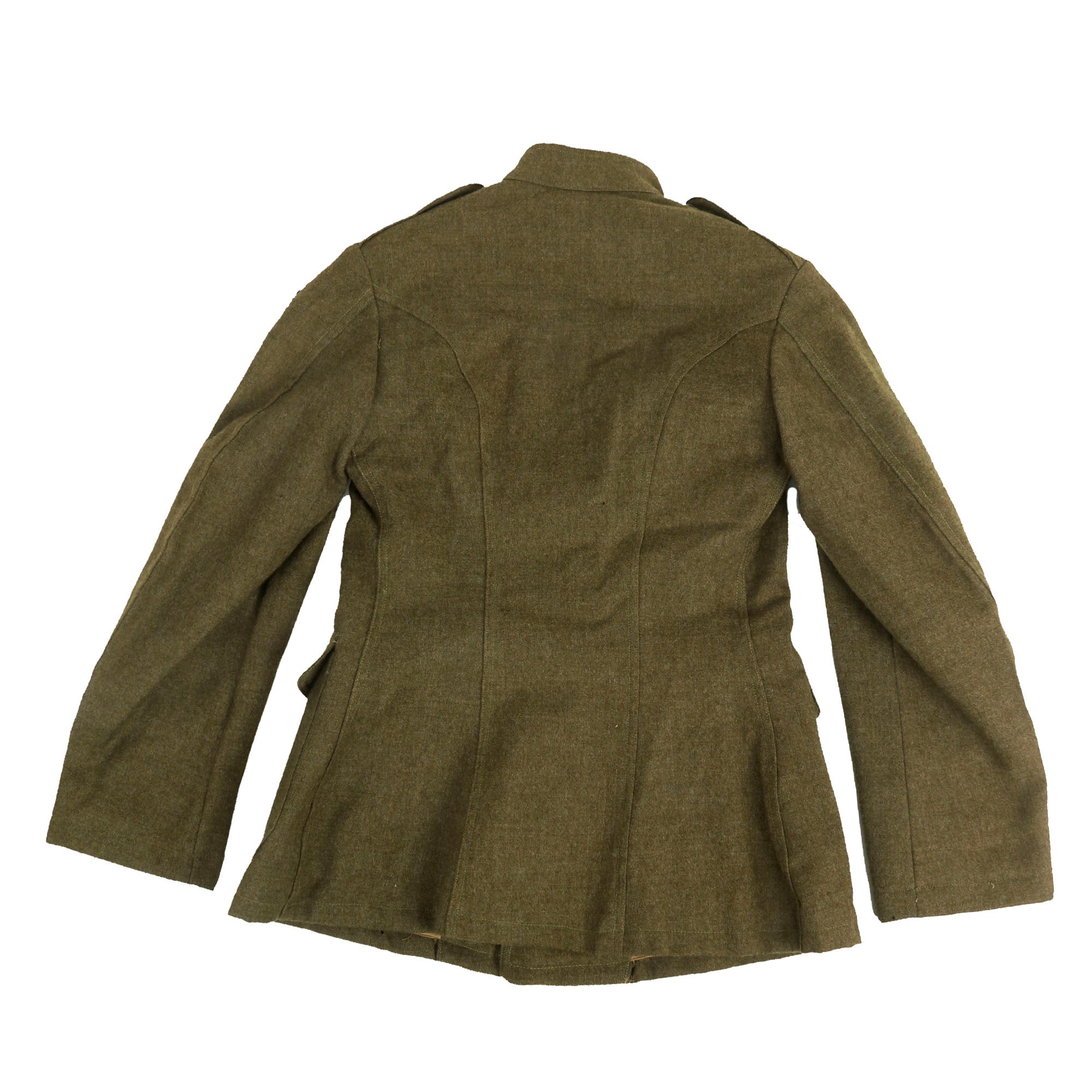 The tunic itself is in fantastic condition with signs of moderate wear, light moth nips and overall an excellent appearance. The lower left sleeve has 3 inverted overseas chevrons denoting 18 months overseas while the lower right sleeve has two wound stripes, reflecting the Purple Heart ribbon on the chest. The ribbons do appear to have been added for display purposes.