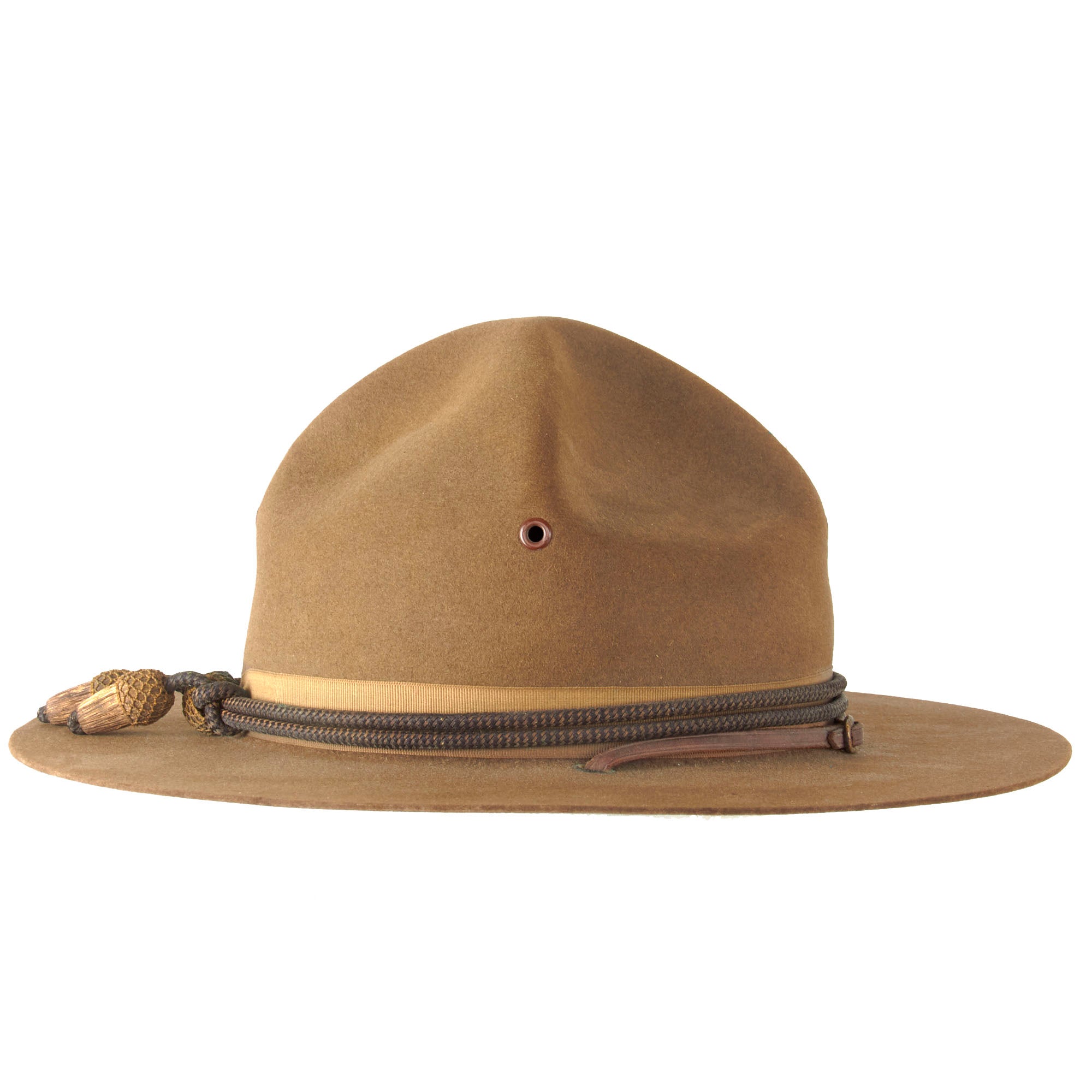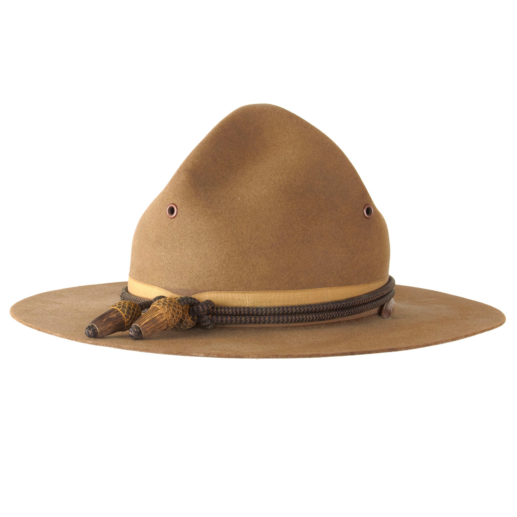 The origins of the hat can be traced to the 1840s when U.S. Army mounted troops posted to the far-west sometimes wore wide-brimmed civilian hats, which were more practical than the regulation shakos and forage caps then issued. The crease was influenced by the designs of the sombreros worn by the Mexican Vaqueros. The name started to be used after the 1872–1876 regulations, which introduced a black felt hat—which could be drab after 1883—for fatigue use derived from the types popularized during the American Civil War. Some were worn with campaign cords, mainly as a form of decoration.