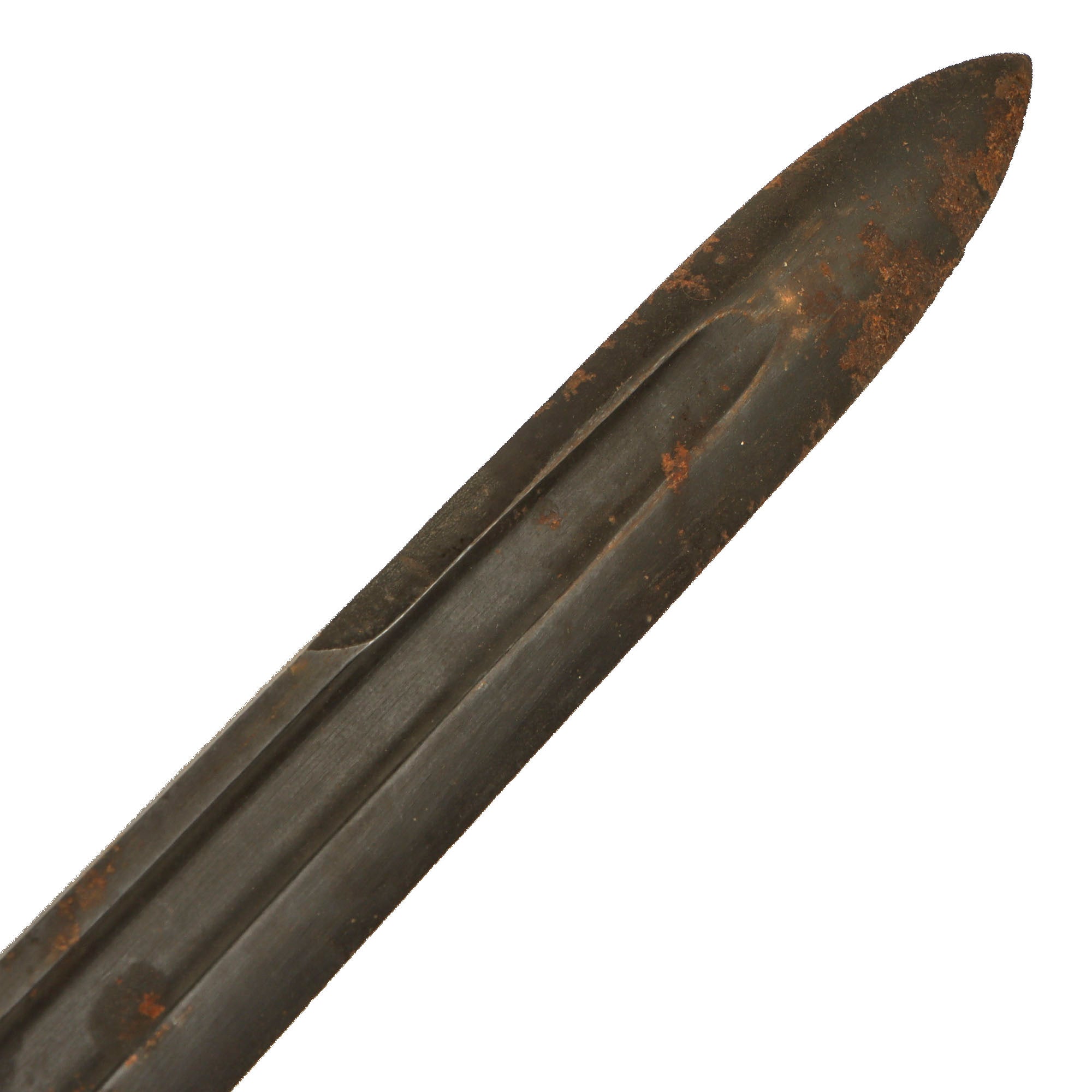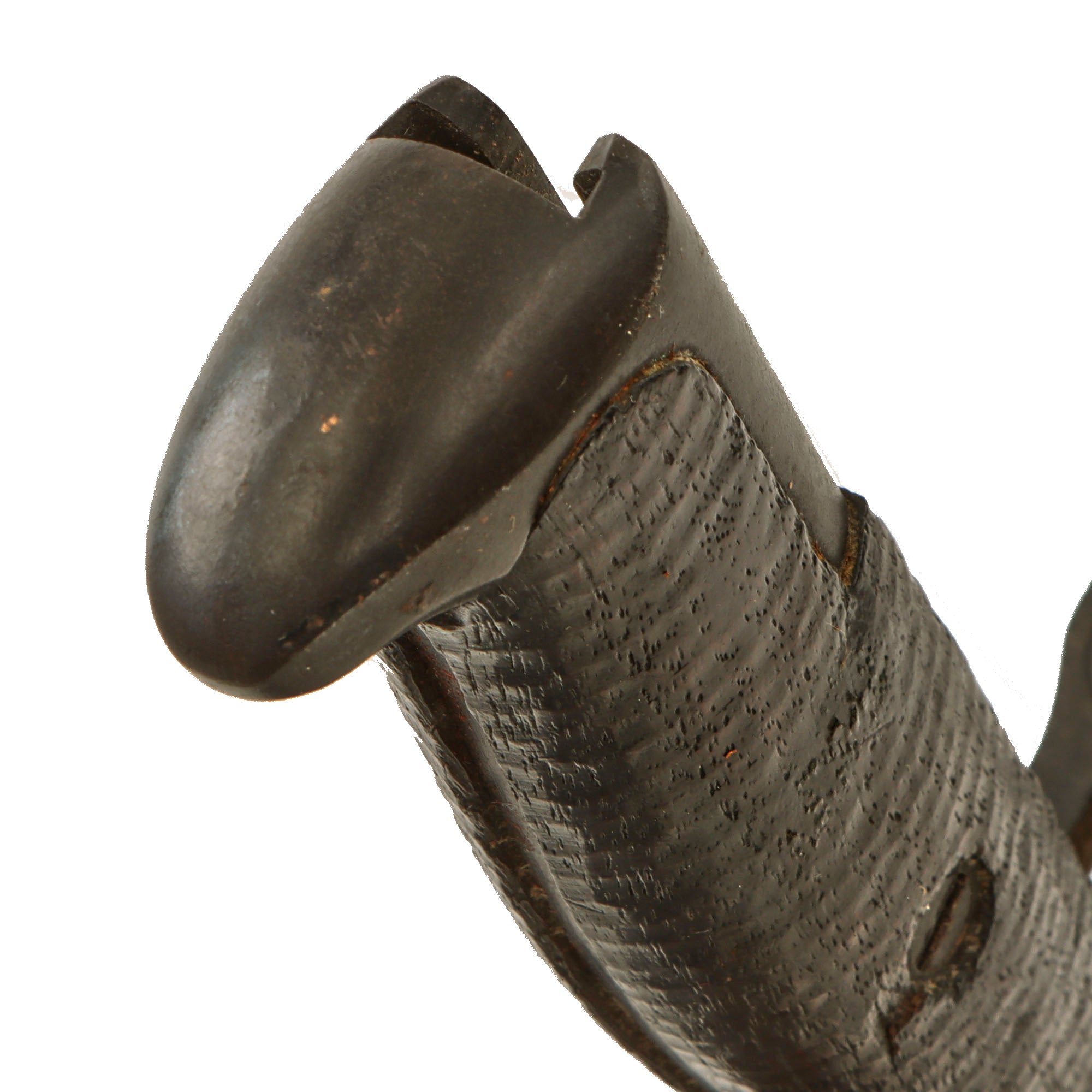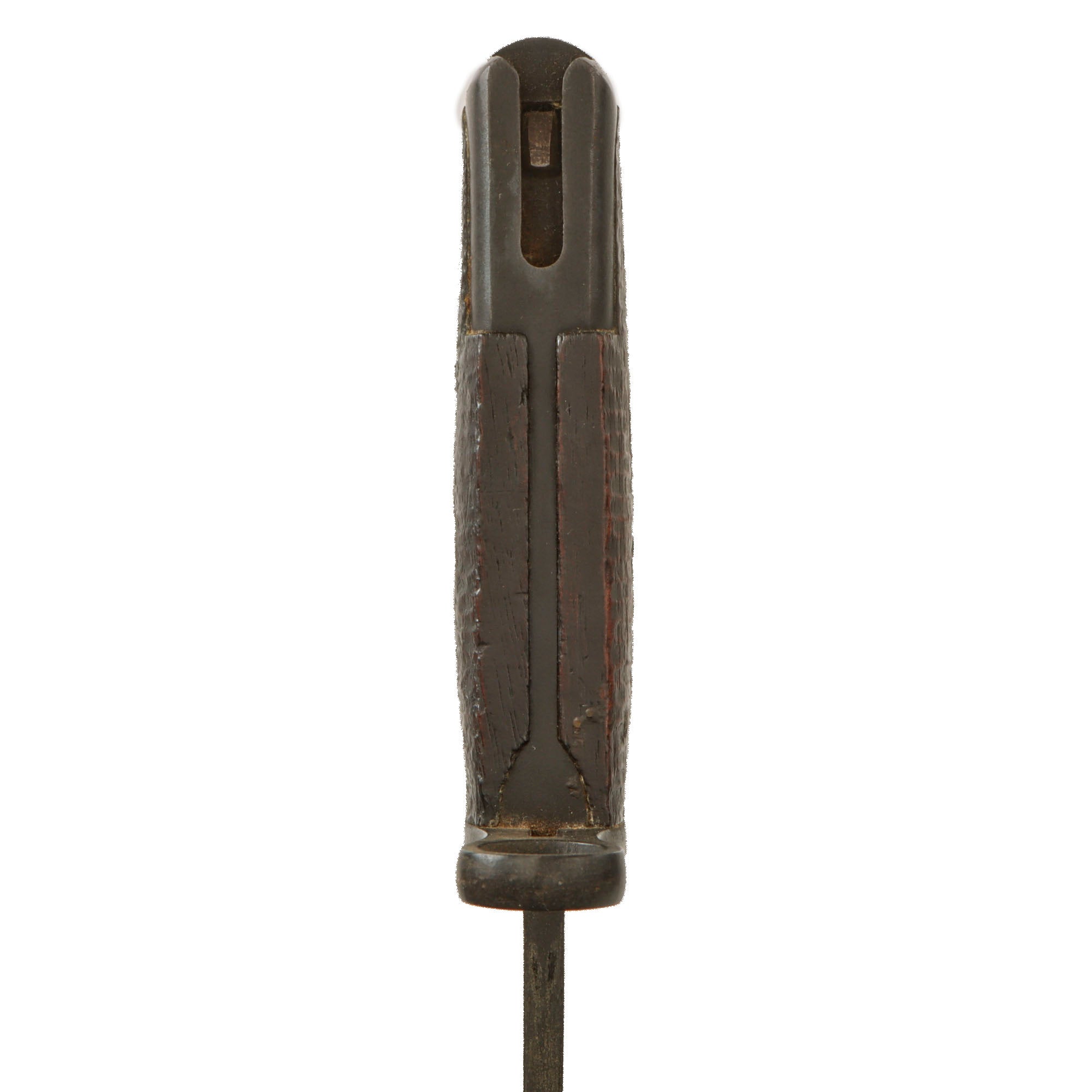 In 1943, the specification for bayonets was changed to have a 10 inch blade, and many M1905 bayonets were shortened to this length. This bayonet however is still in the original configuration, which is rare to find on the market today.