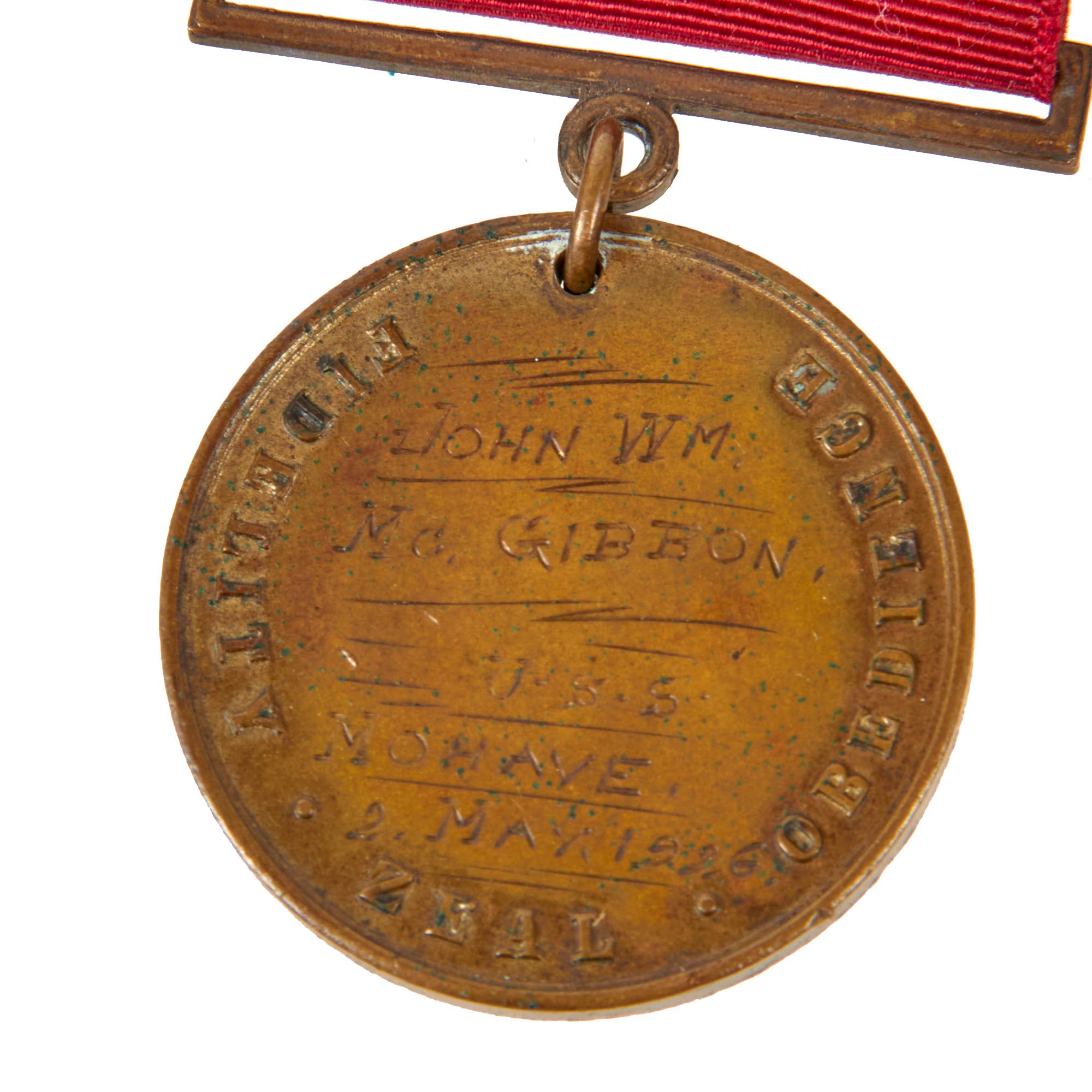 - Engraved Navy Good Conduct Medal, John Wm. McGibbon. USS MOHAVE 2. MAY1926. The medal has subsequent award clasps marked U.S.S. OGLALA and dated 1932, and the other marked 1941 and named to McGibbon on the back. Ribbon has fraying and should be handled very carefully.