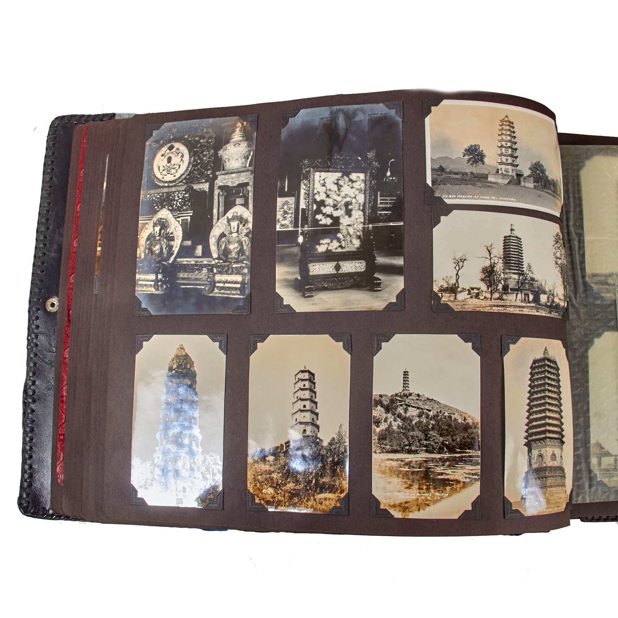 - 11 x 15” Large scrapbook from China, mostly with tourist photos of locations there. A gorgeous scrapbook in general with great photos and separator pages. About half full. Just a tourist piece, no photos of him inside.