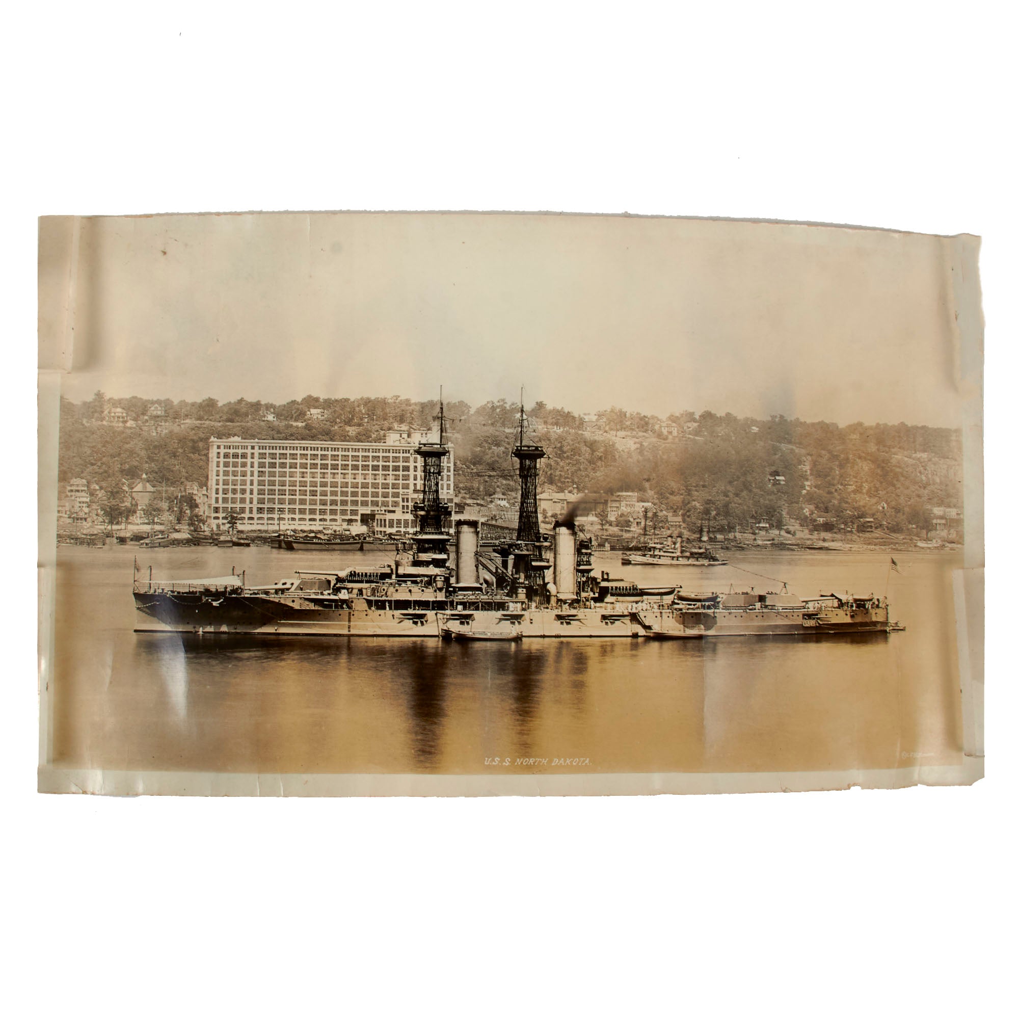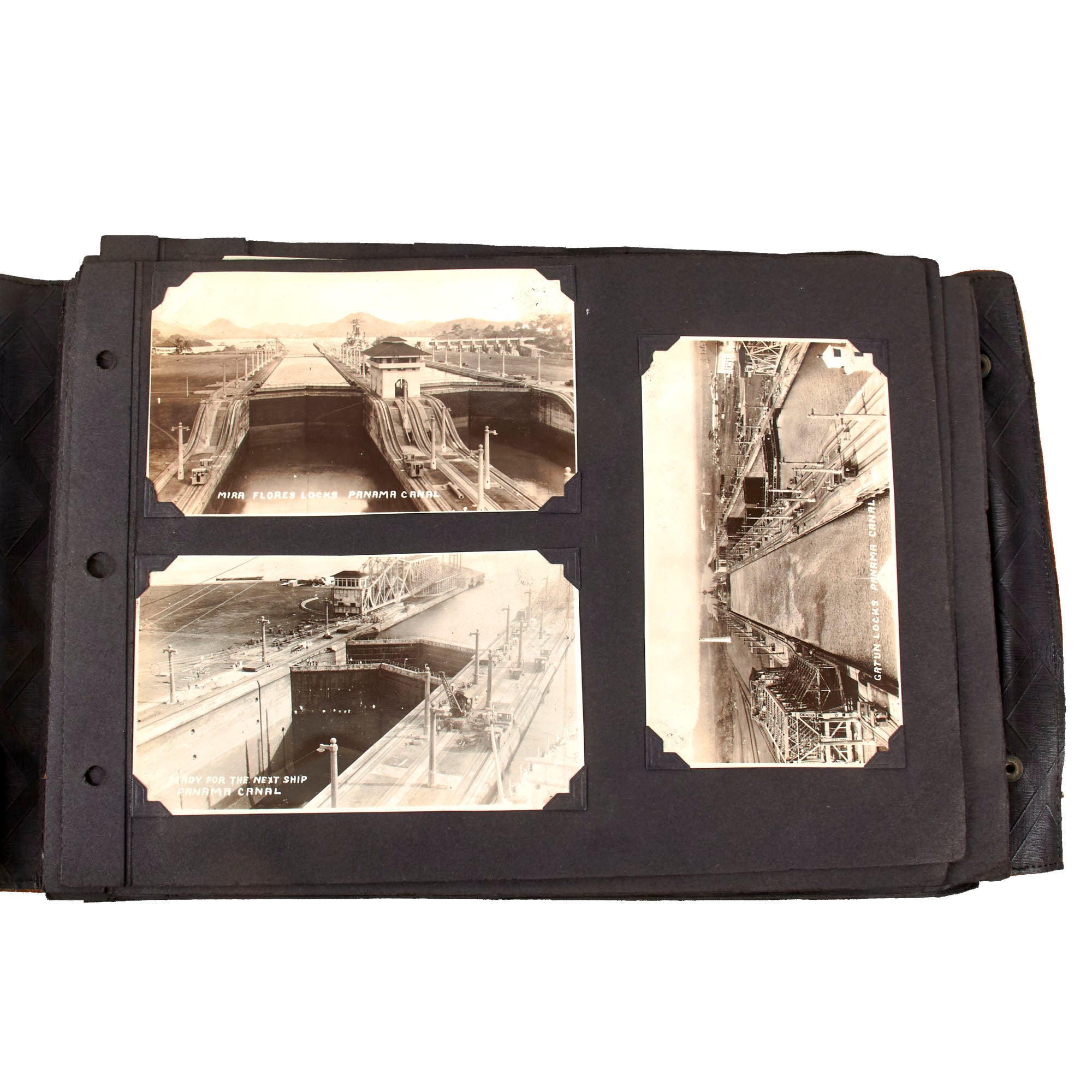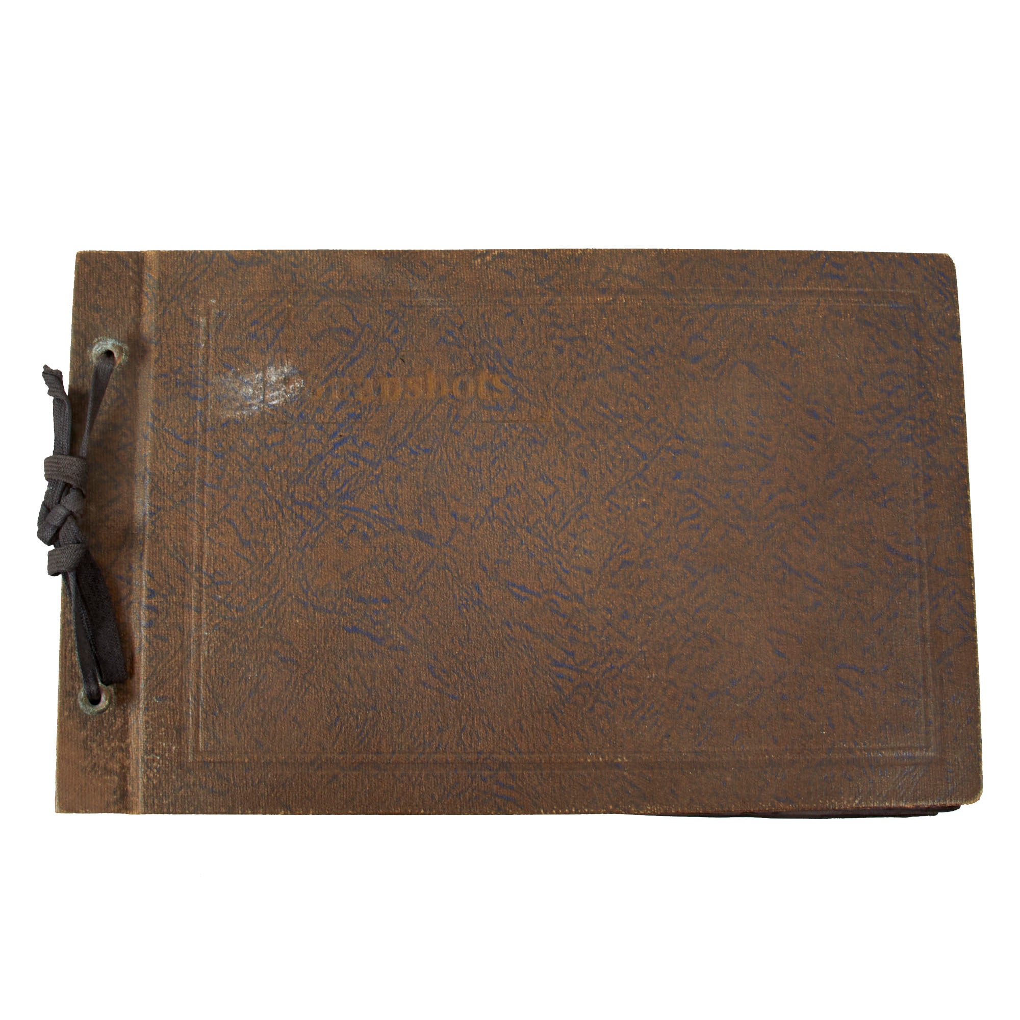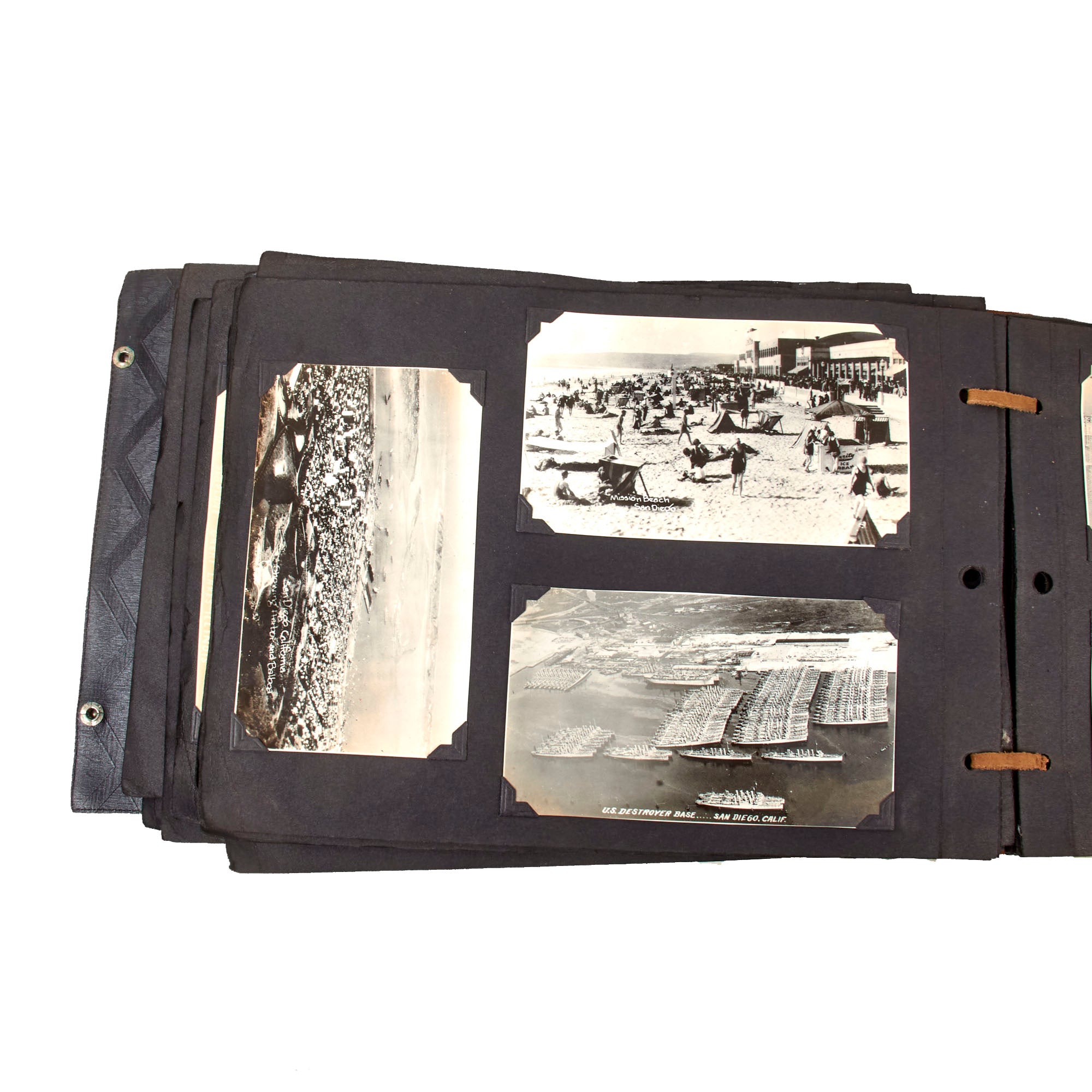 - 8 x 12” scrapbook for USS Oglala, almost all pages are disconnected from the cover and are likely in the wrong order. There are some great shots in this album including two shots of gun crews of the Oglala. There are many photos from the places they traveled, elephant photos, native photos, and in the back were two large scale photos of German submarines during WWI, the first showing a German submarine in Spain in 1918, and the other showing U-56 with an interesting camouflage pattern before entering Santander. There are a lot of tourist photos in here too but they are likely around 25-30 great original shots.