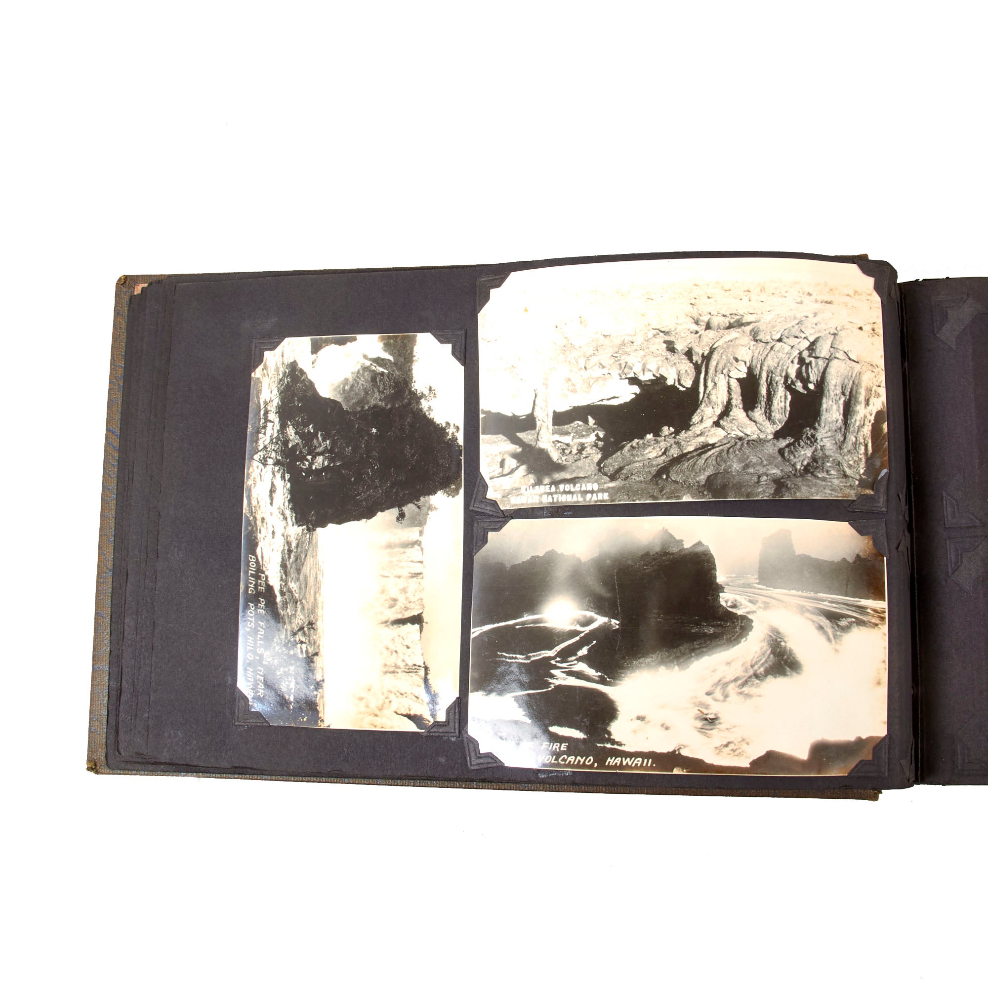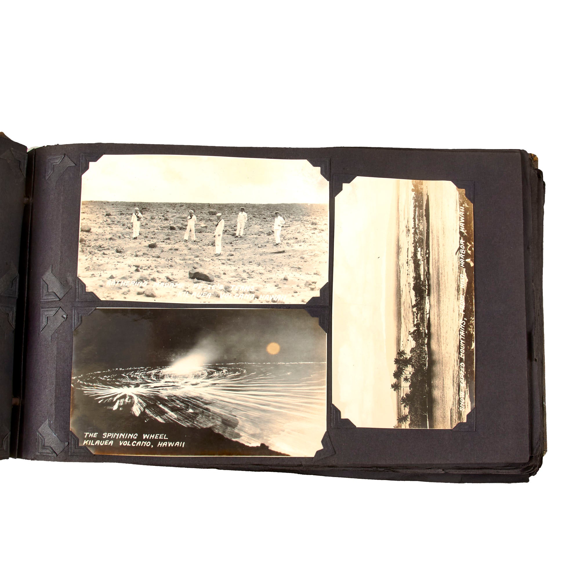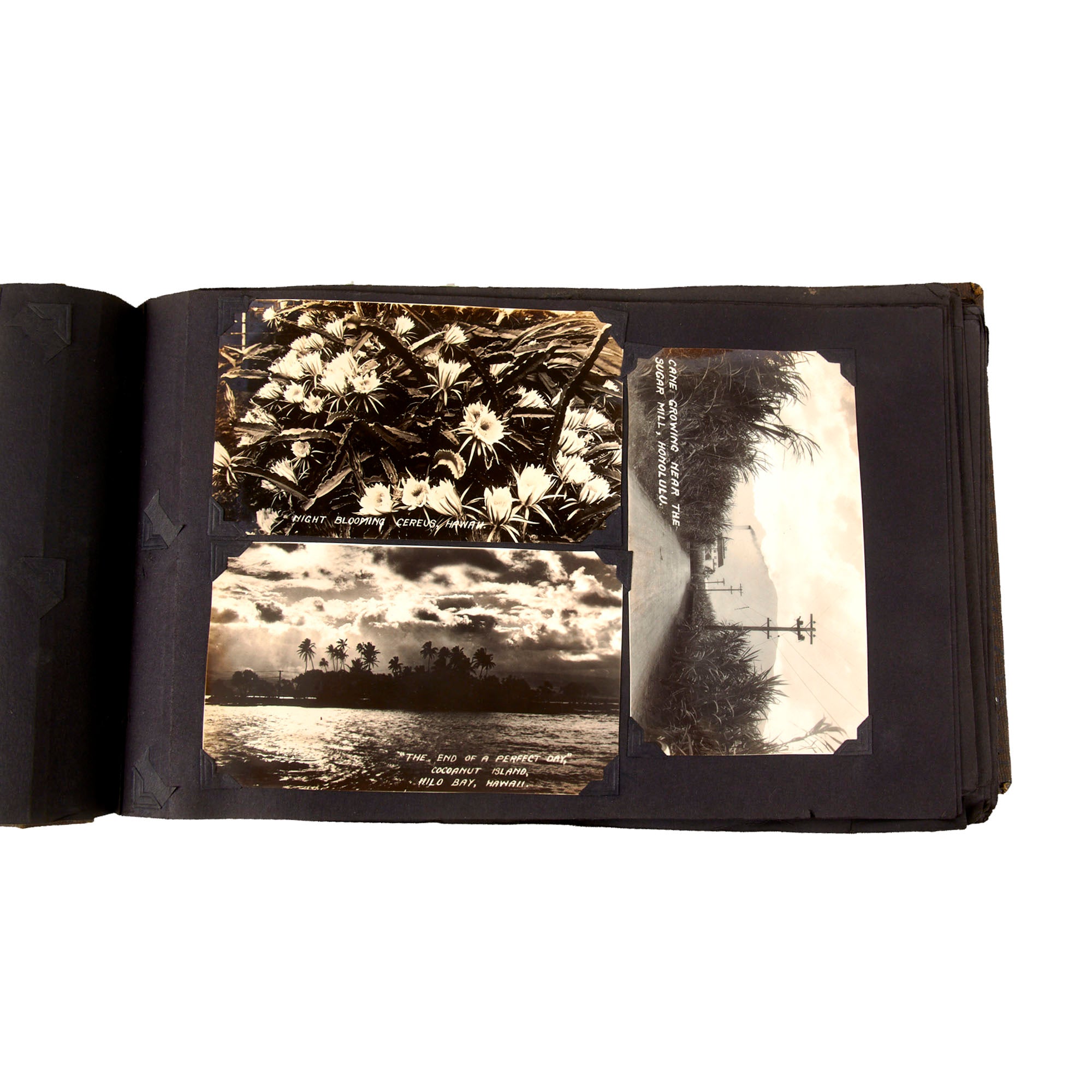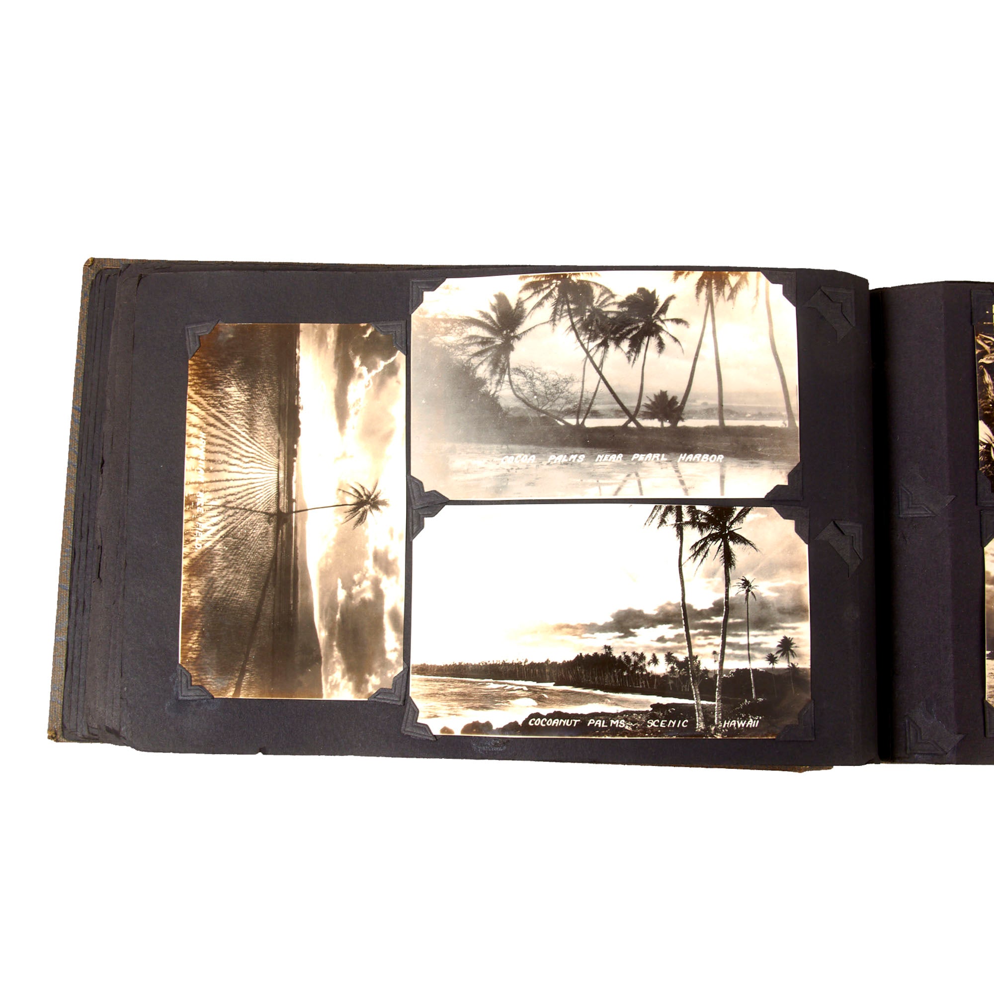 - 7 ½ x 12” thick scrapbook put together in Hawaii, about 85% are tourist photos of places in Hawaii, with some added photos near the middle with his ship’s captains and some other crew photos. 25% of the book is empty.