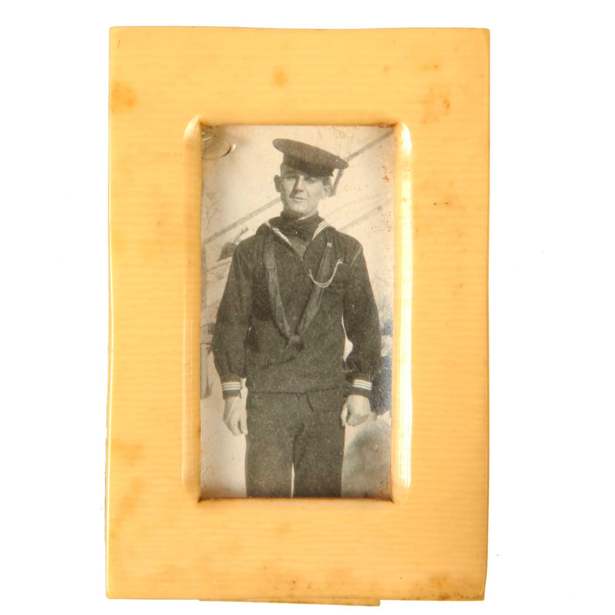 - Small photo of McGibbon likely during WWI in celluloid frame, very cute.
