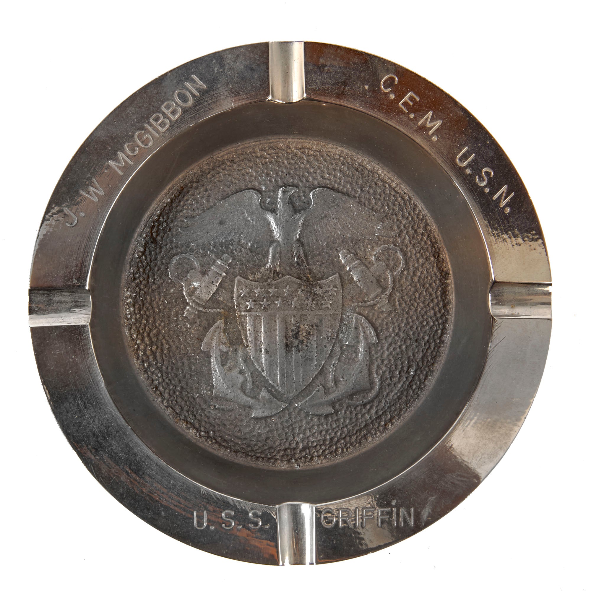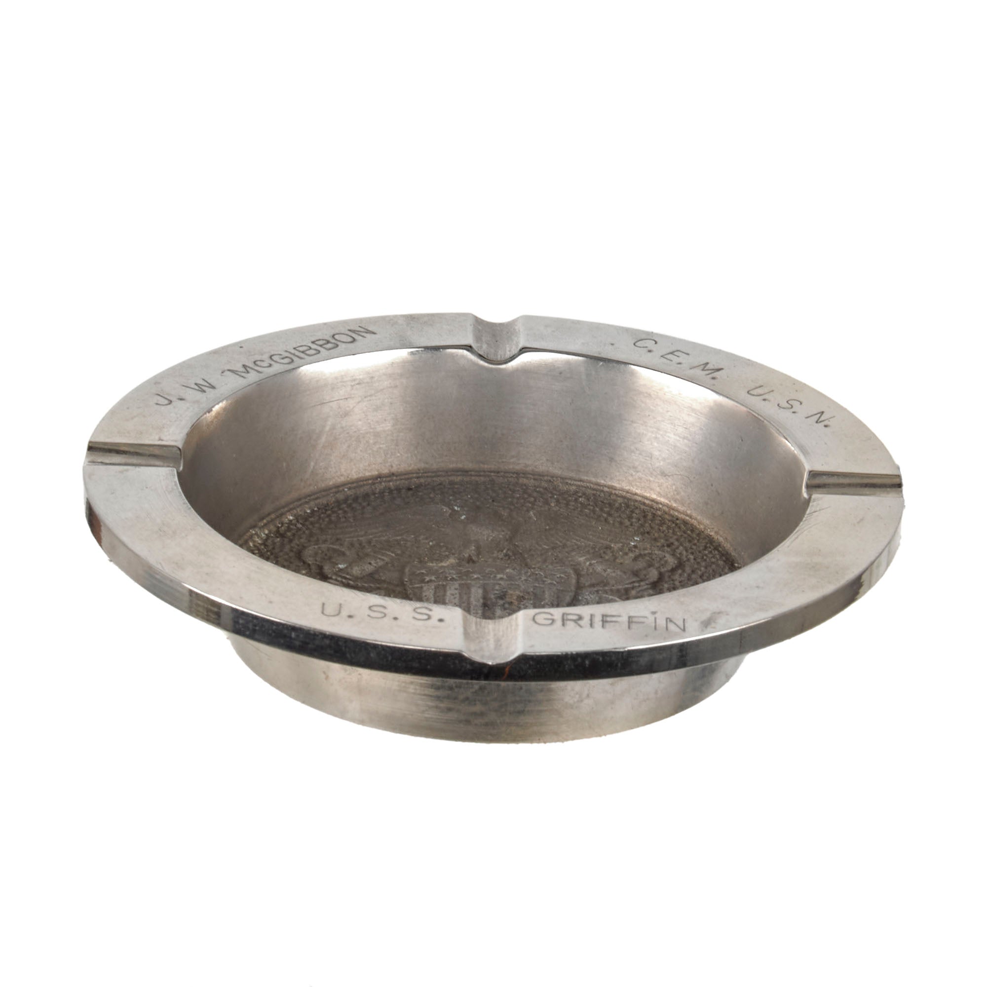 - Heavy Navy ashtray stamped J.W. MCGIBBON C.E.M. U.S.N. / U.S.S. GRIFFIN. Great piece.