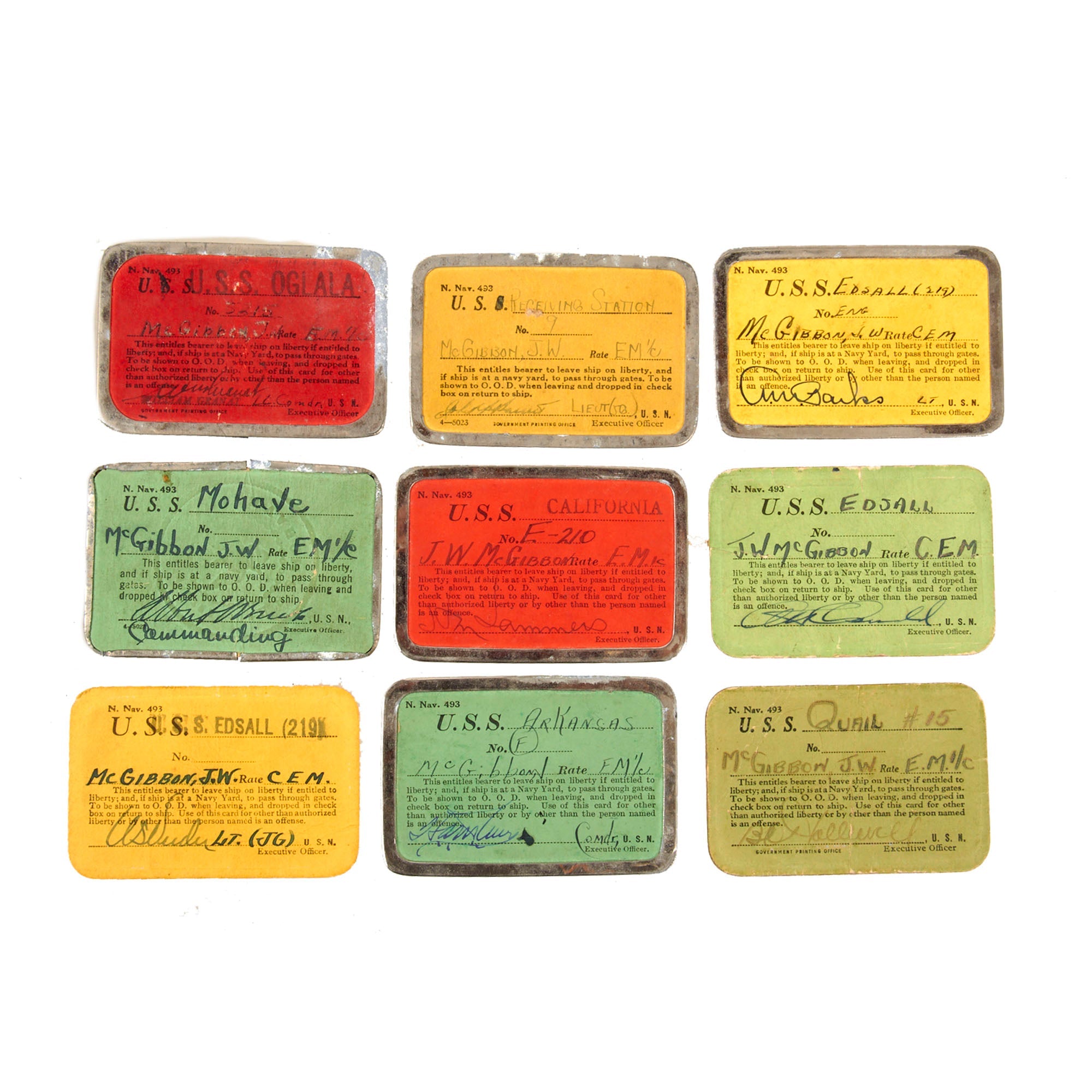 - 9 Additional passes including for the USS Edsall, USS Mohave, USS California, USS Edsall (2nd), USS Quail, USS Arkansas, USS Edsall, USS Oglala, and US Receiving Station. Outstanding collection of them all named to McGibbon.