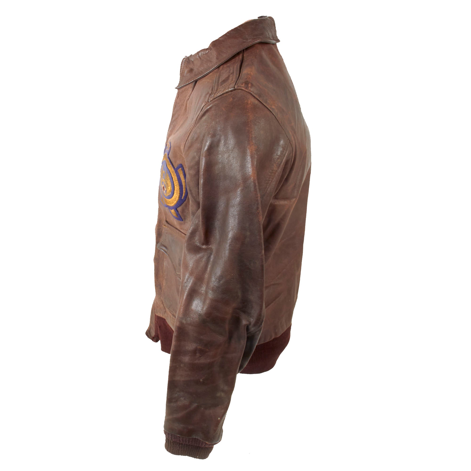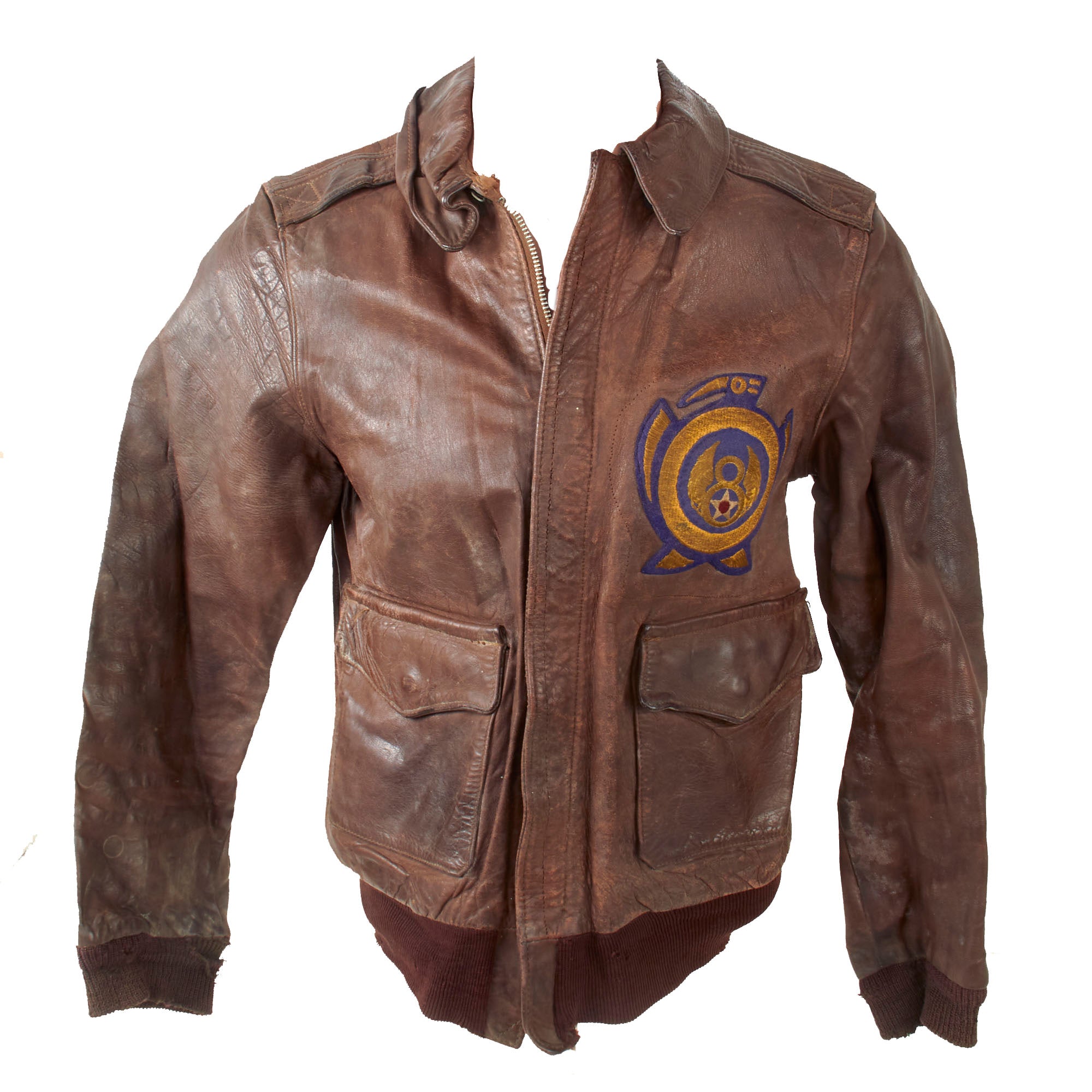 Original Item. Only One Available. The Type A-2 leather flight jacket is a military flight jacket closely associated with World War II U.S. Army Air Forces pilots, navigators and bombardiers, who often decorated their jackets with squadron patches and elaborate artwork painted on the back. Sometimes casually referred to as a bomber jacket, its original designation was "Jacket, Pilot's (summer)", and its wartime usage was limited neither to pilots nor to bomber crews.