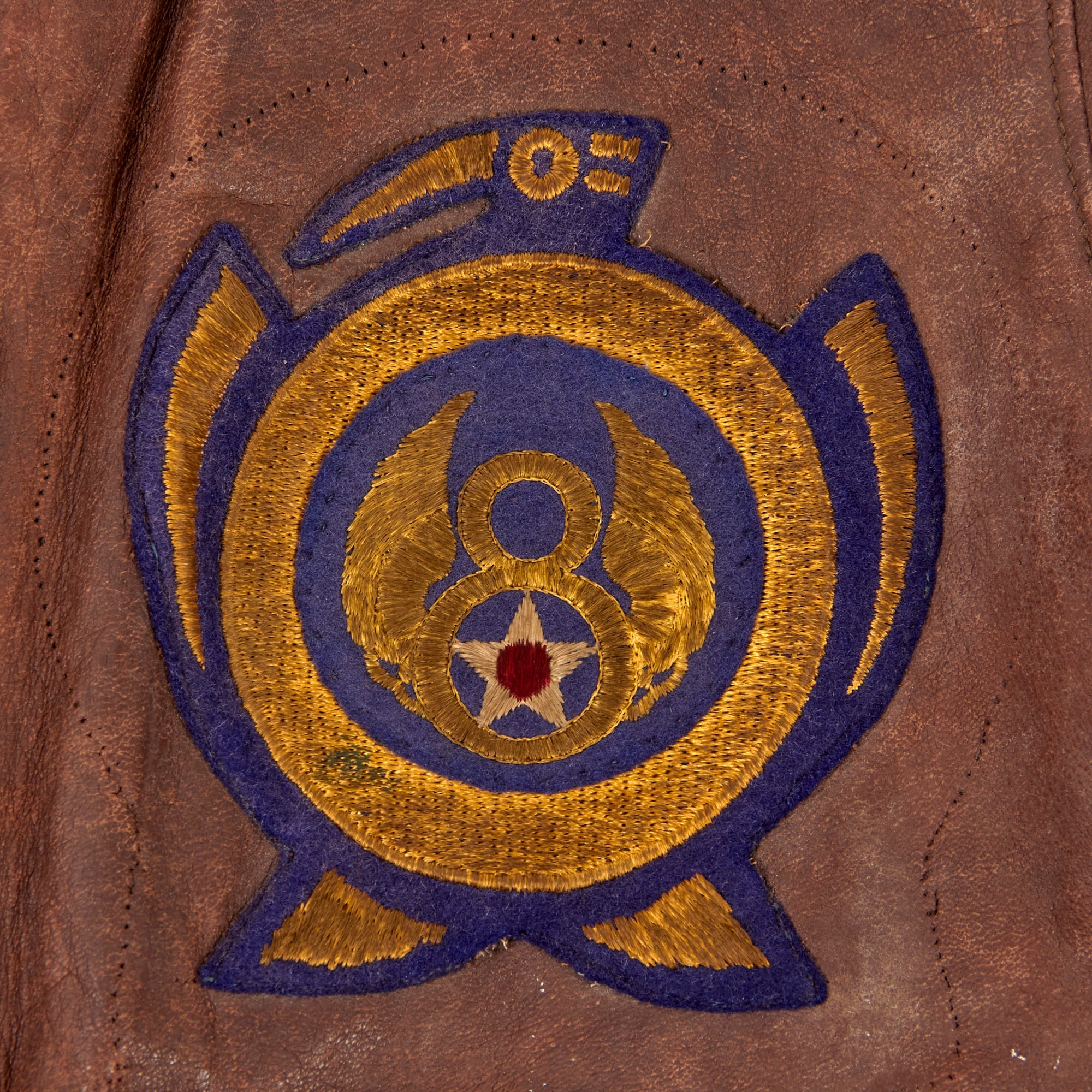 This is a very interesting patched A2 flight jacket which has a great period-applied patch for the 391st Bombardment Squadron with an 8th Air Force patch on top. This squadron was originally the 1st Reconnaissance Squadron (Heavy) from 1940-1941, before being redesignated the 391st Bombardment Squadron (Heavy) from 1942-1945. The jacket was likely worn by a member of the 391st.