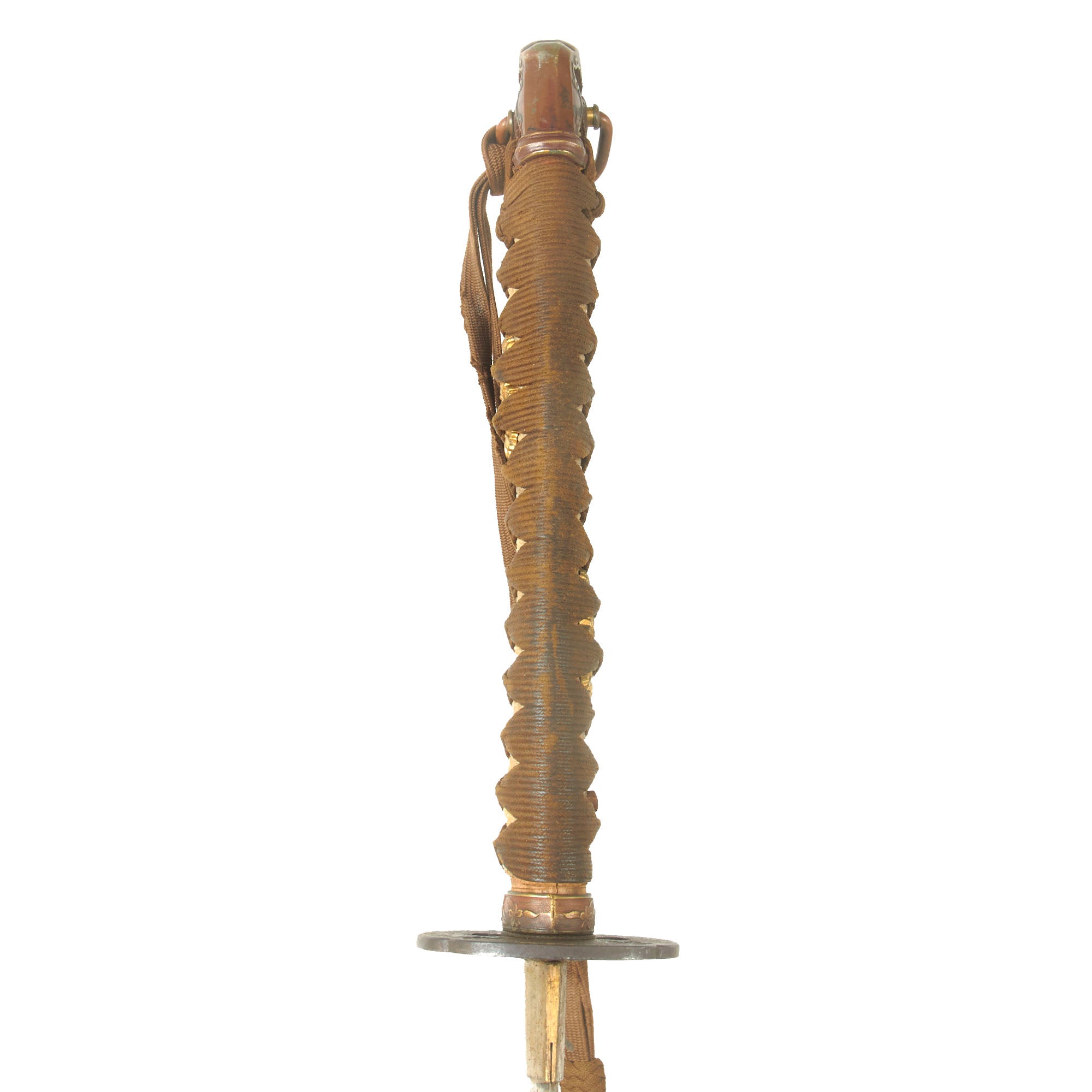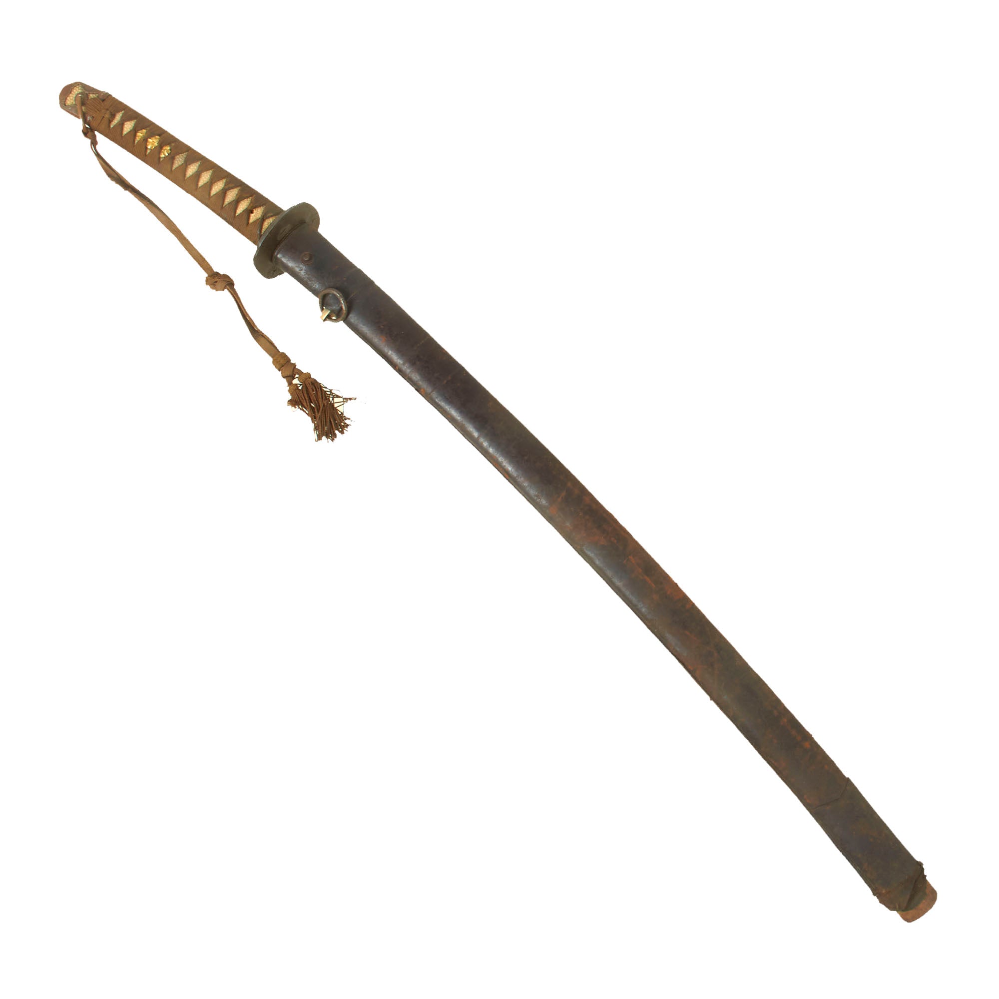 The swords sent home by Barile are relatively standard examples used by officers in the Imperial Japanese Army. The first sword is a wartime produced Japanese Officer Katana in the Type 98 Shin-Gunto (九八式軍刀 kyūhachi-shiki guntō) setting. The Type 98 fittings (koshirae) are slightly simplified compared to the earlier Type 94. A Shin-Guntō (新軍刀, new military sword) is a weapon and symbol of rank used by the Imperial Japanese Army between the years of 1935 and 1945.