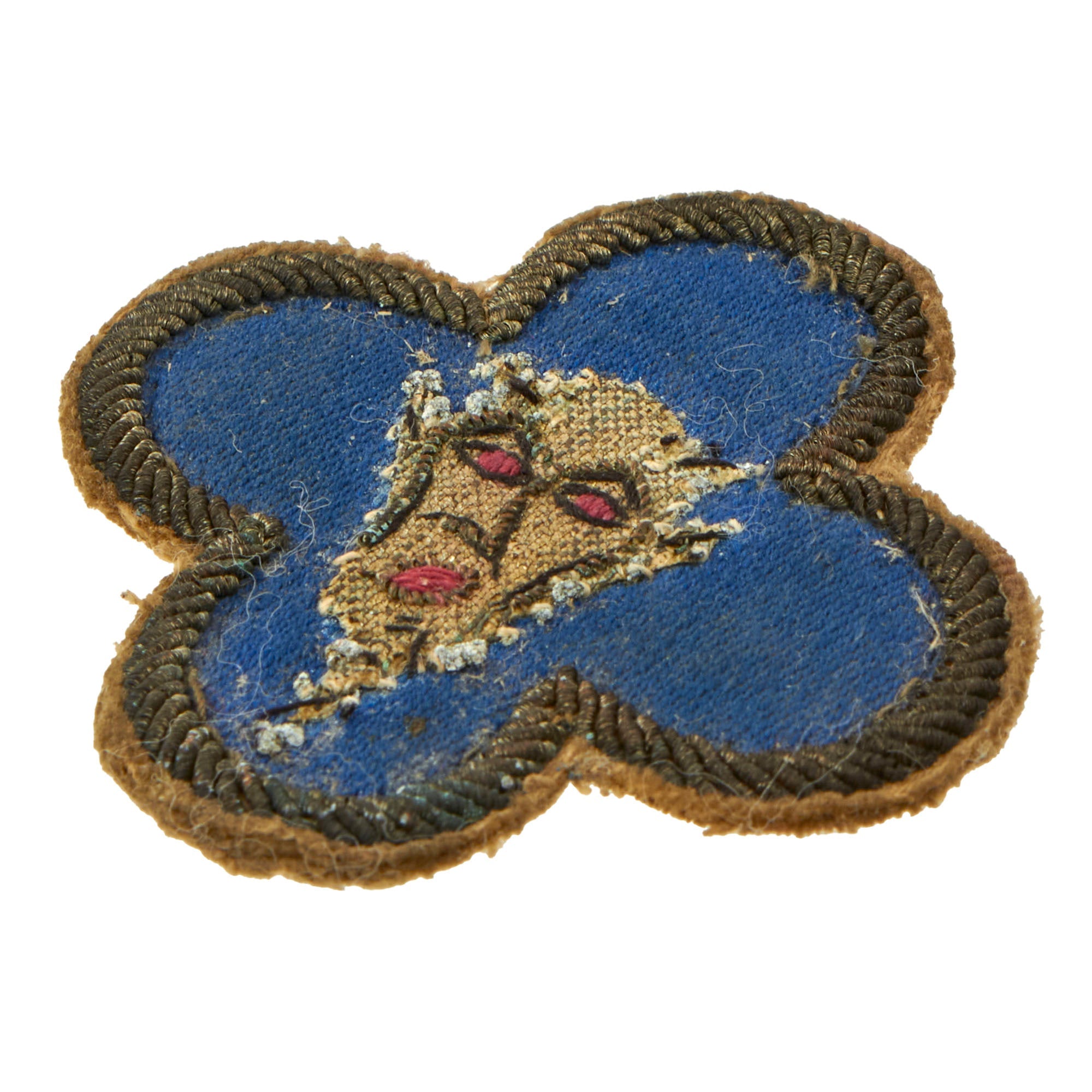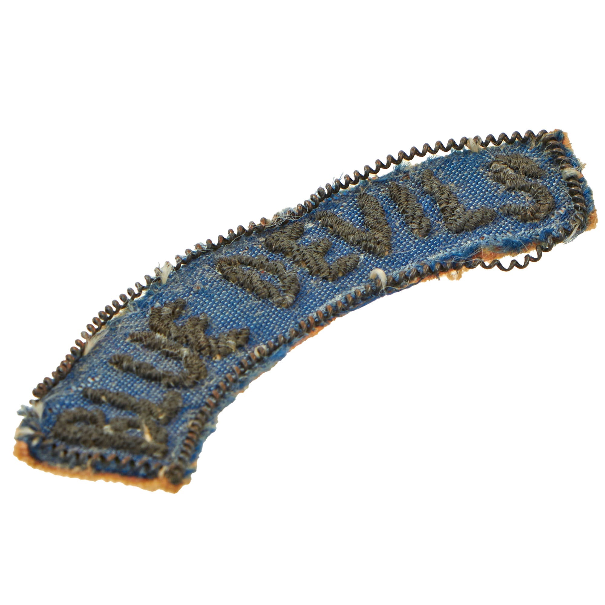 This is an extremely scarce 88th ID Patch set consisting of a Bullion-bordered blue clover with the devil himself in the center, and a separate blue rocker reading BLUE DEVILS in bullion lettering.