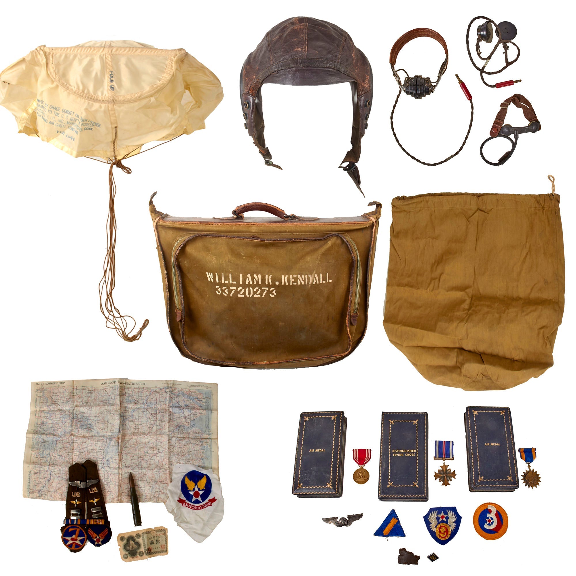Original Items. One-of-a-Kind Group. This is the tremendous B-4 Flight bag grouping of Staff Sergeant William K. Kendall (ASN 33720273), 641st Bombardment Squadron, 409th Bombardment Group, 9th Air Force, who flew 60 combat missions as a turret gunner on both the A-20 “Havoc” and the A-26 “Invader”. He was awarded the Air Medal with a staggering 12 oak leaf clusters. He also appears to have been awarded the Distinguished Flying Cross, but we couldn’t find reference to this online. This grouping came from the family of Kendall, so everything present came from the family. From a newspaper article: