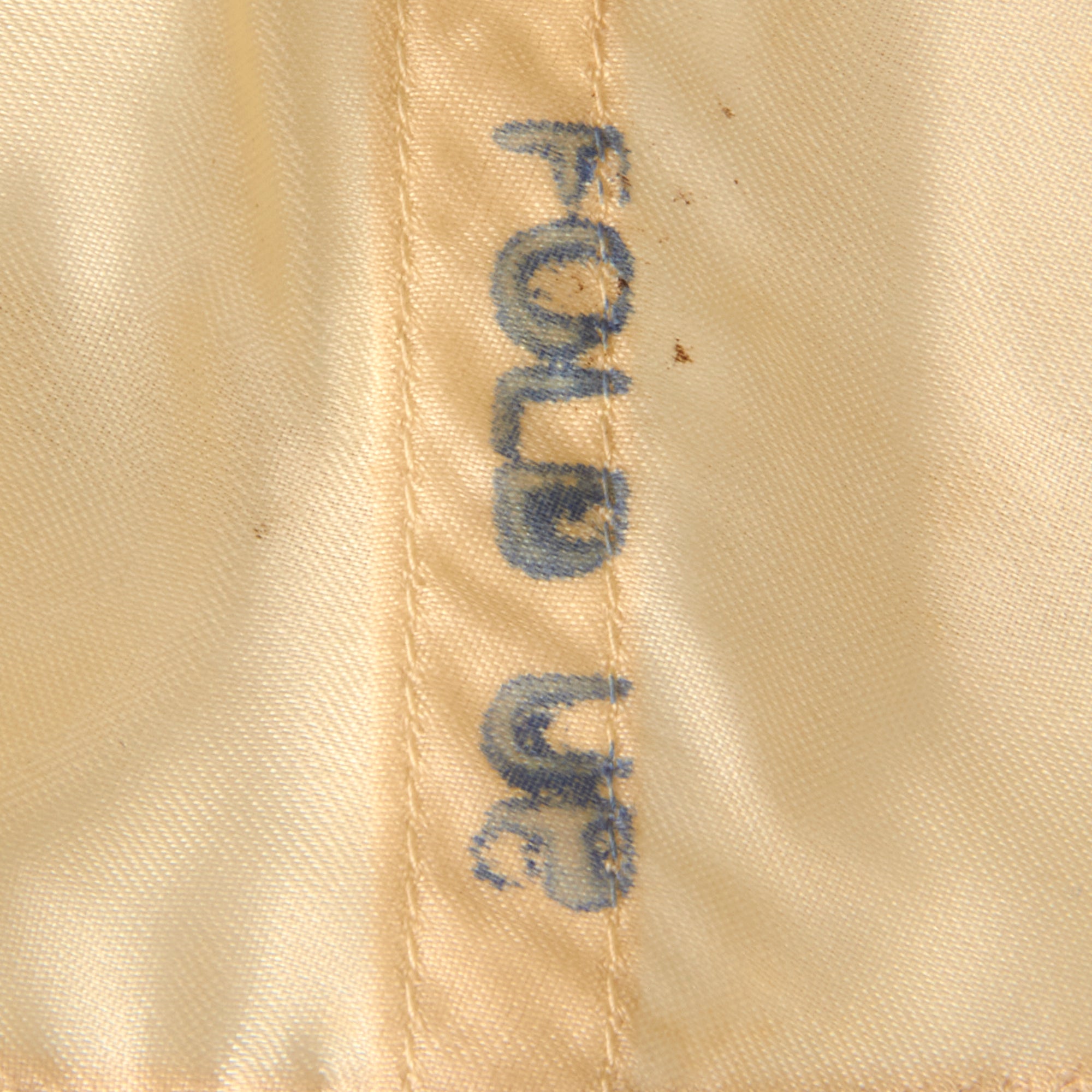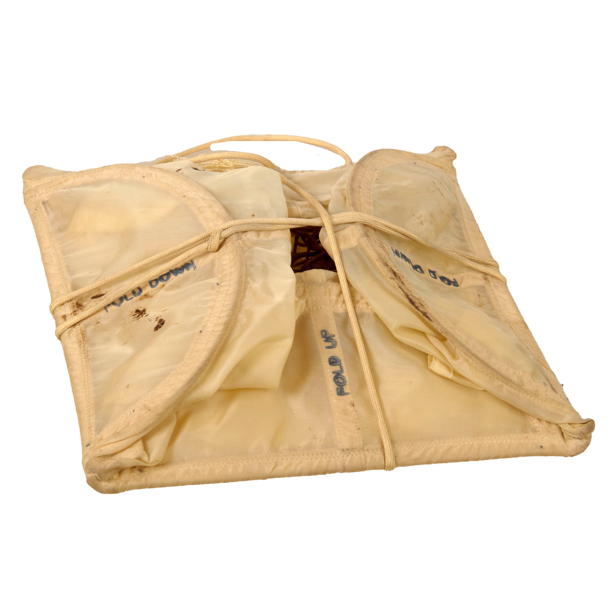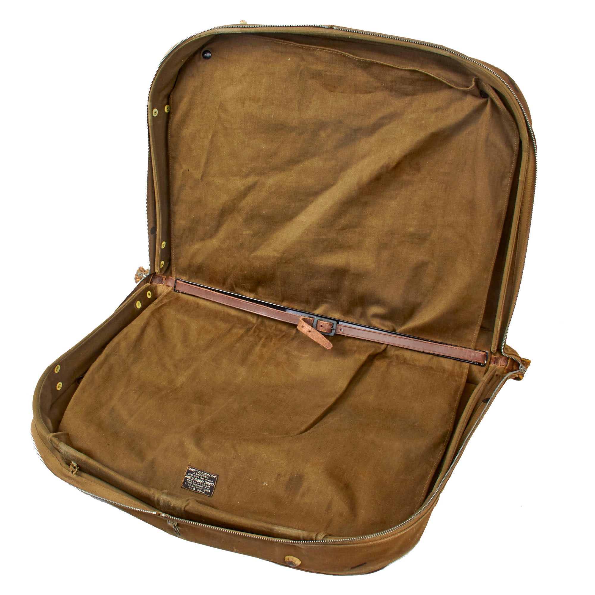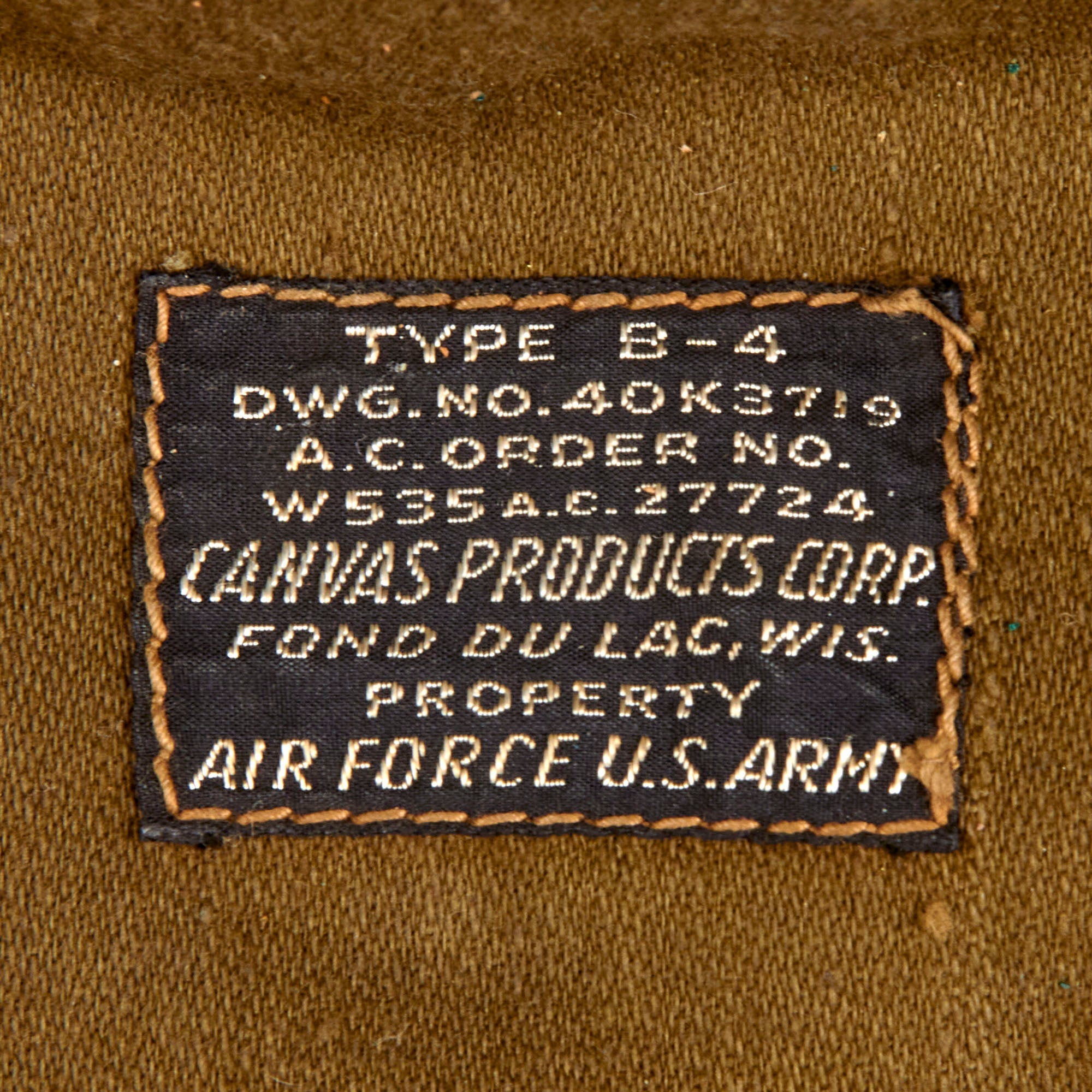 - Kendall’s B-4 Canvas flight crew bag with his name and number stenciled on both sides, heavy wear overall from use. Original data tag is retained showing manufacture by Canvas Products Corp.