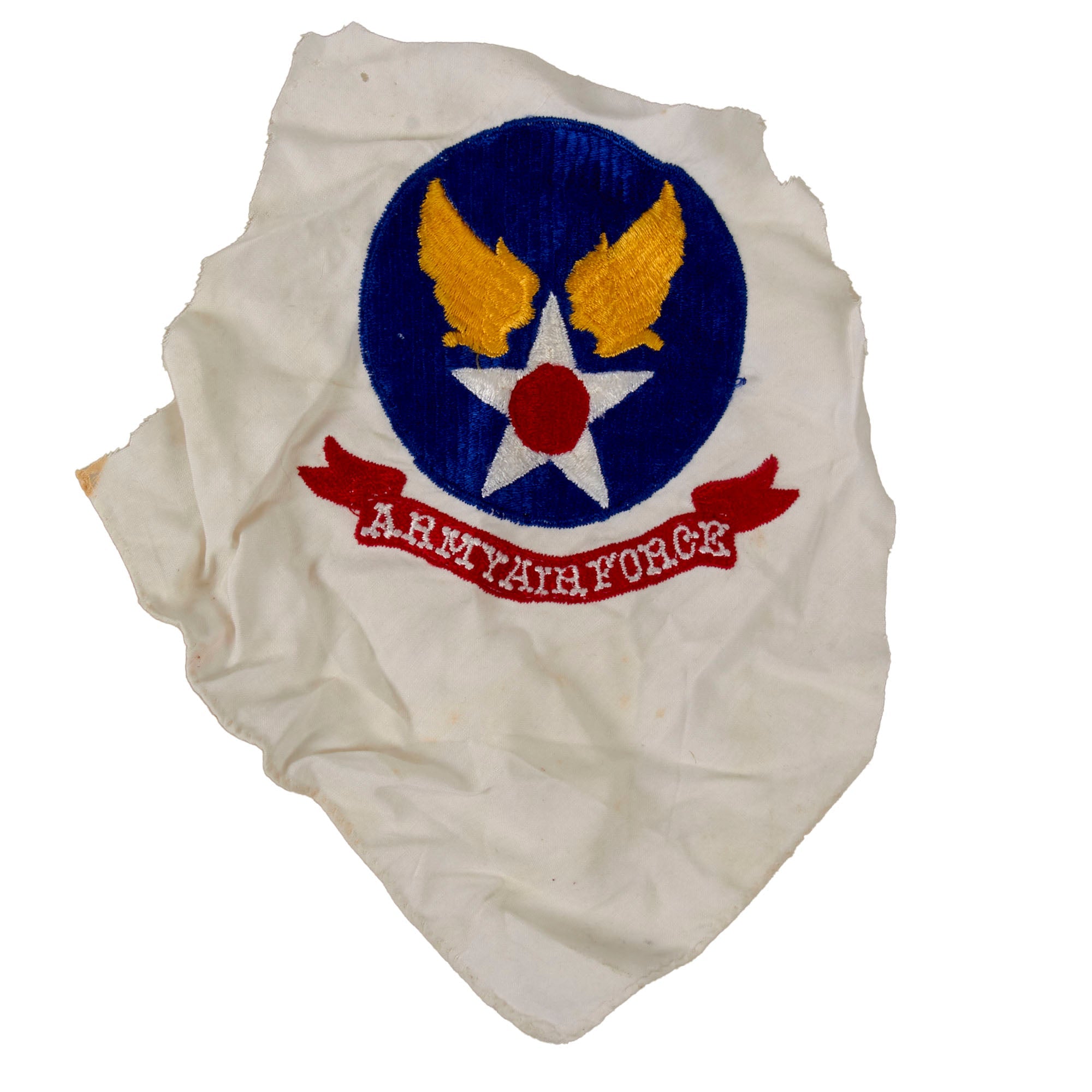 - Army Air Forces patch on cloth from pillowcase, cut out.