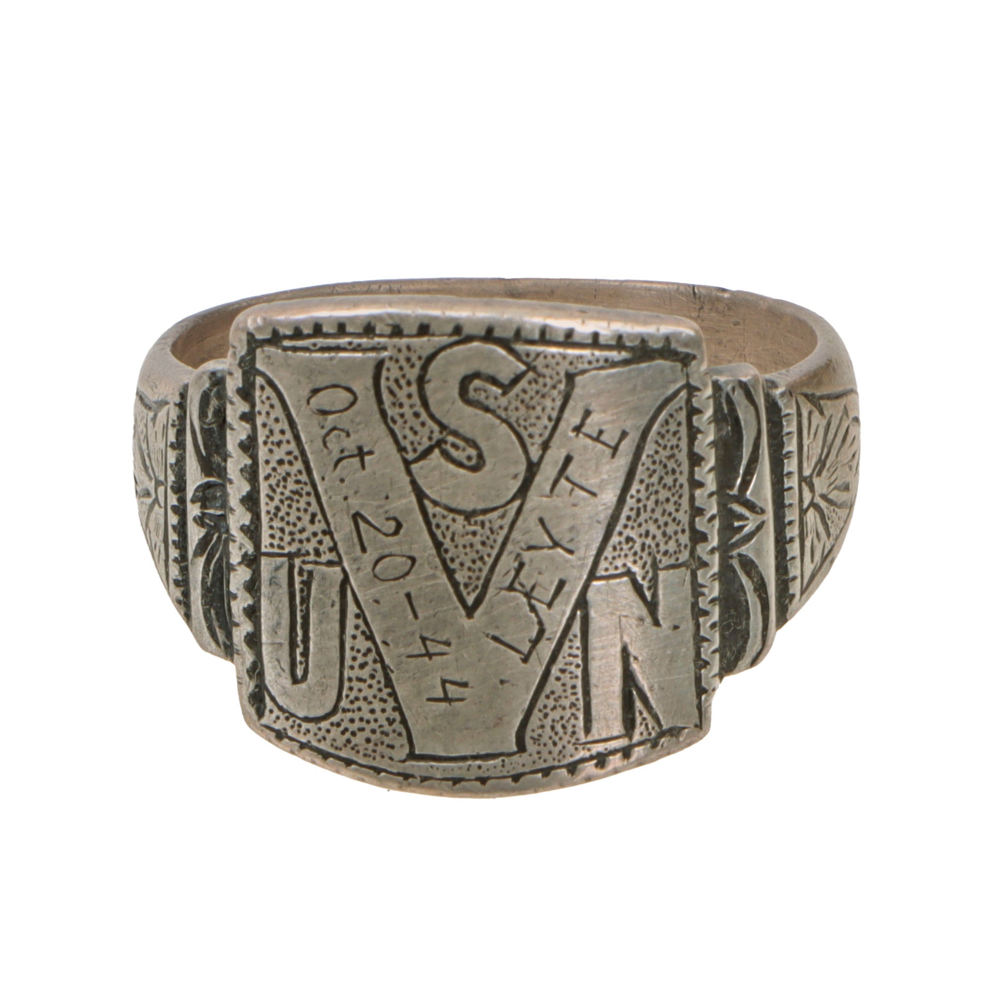 - Leyte USN Ring, engraved Oct 20-44 LEYTE inside a V for Victory next to USN.