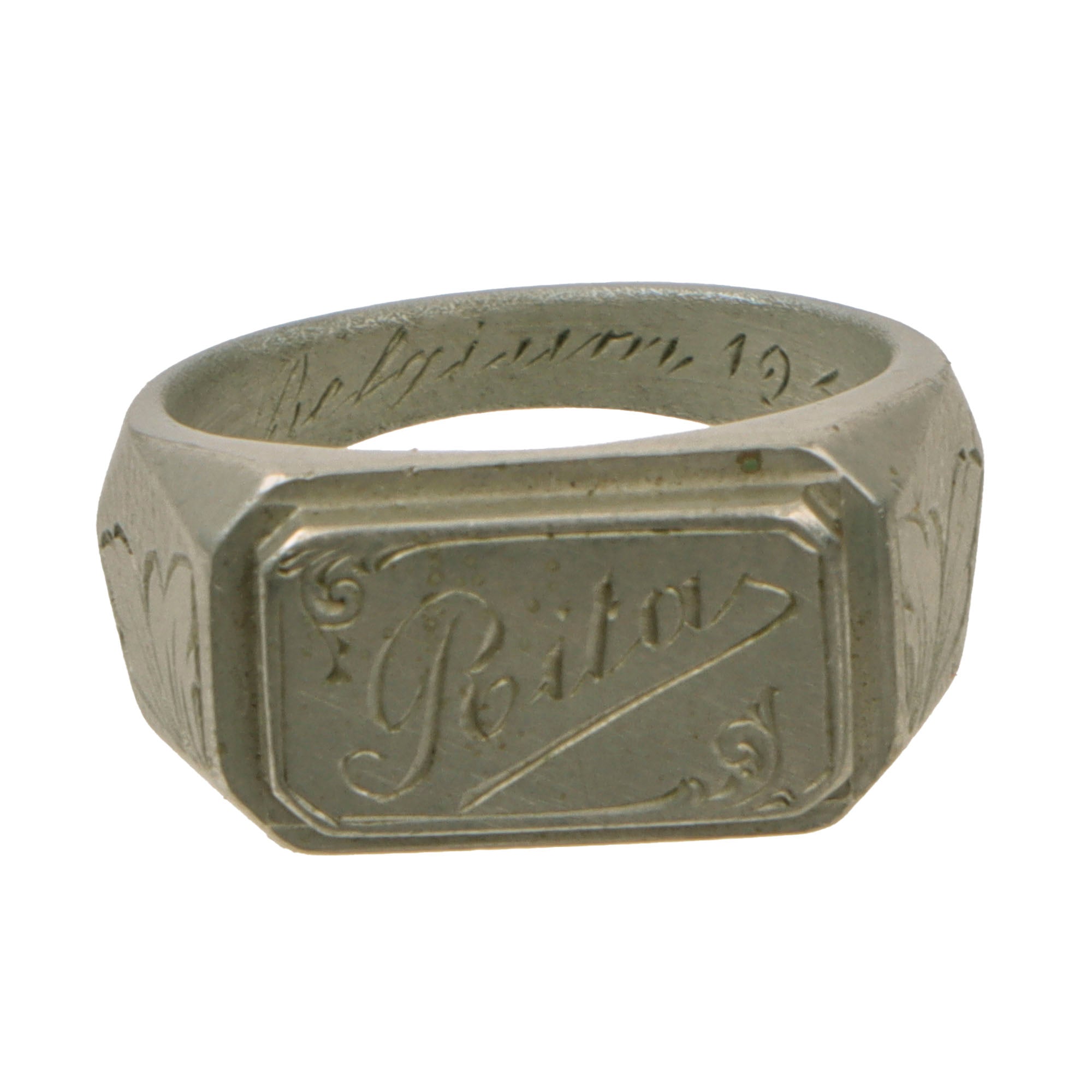 - Small ring engraved “Rita” on the front with the interior engraved “Belgium 1945”.
