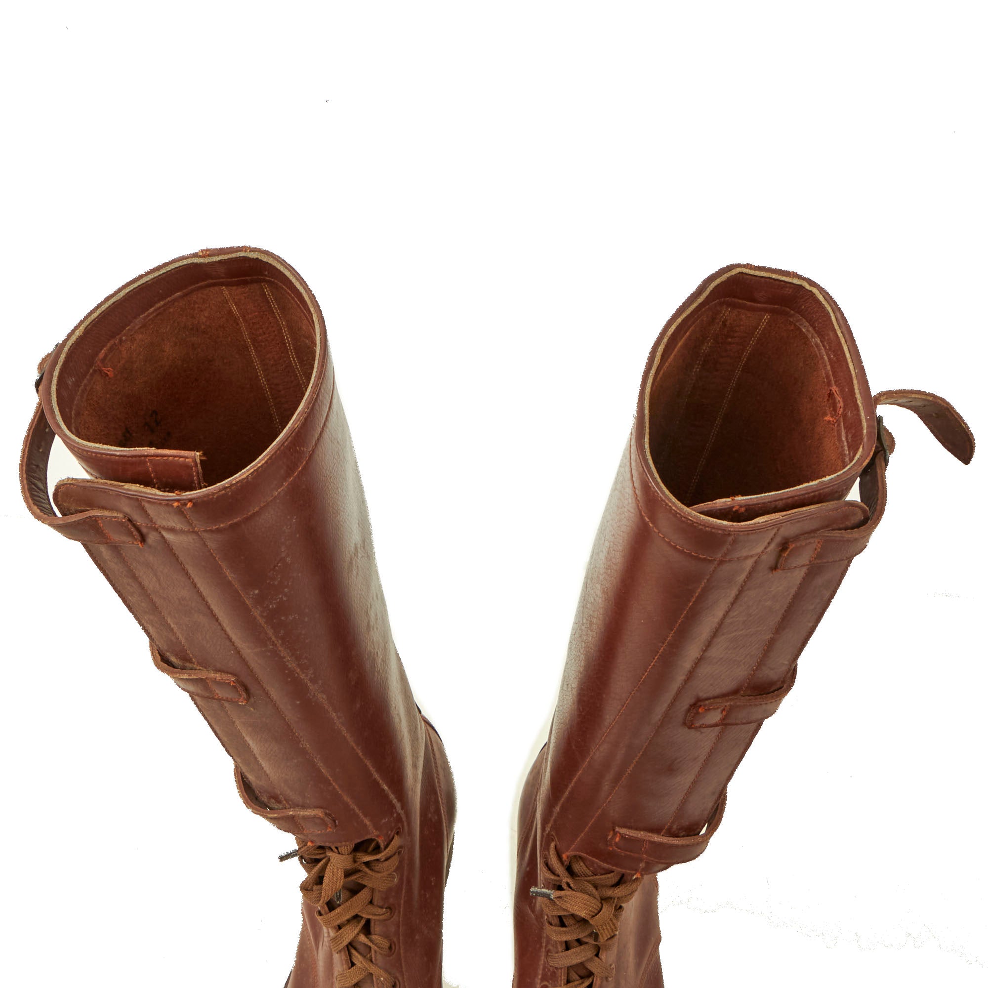 The boots retain all of their buckles and their laces. They retain markings on the interior: