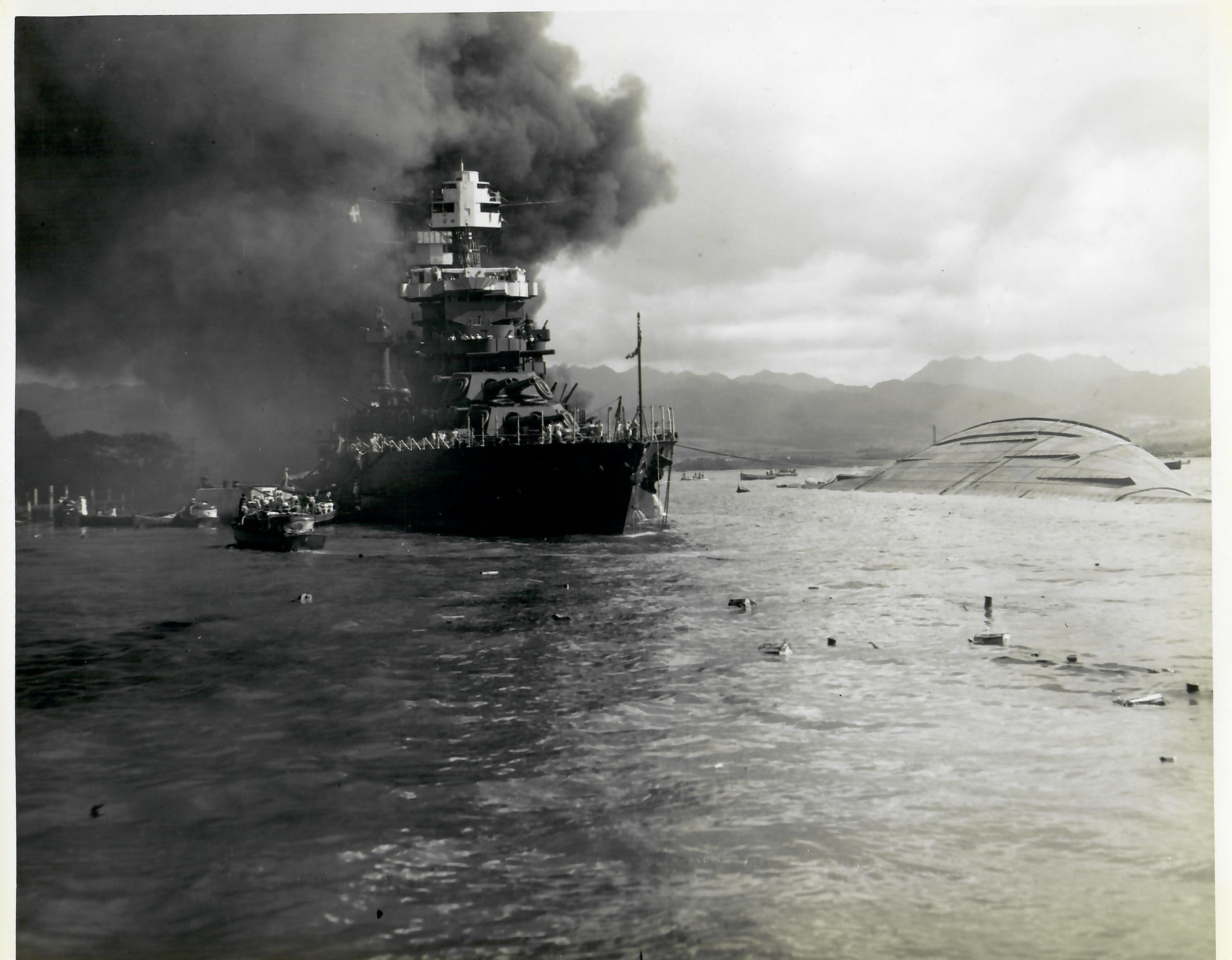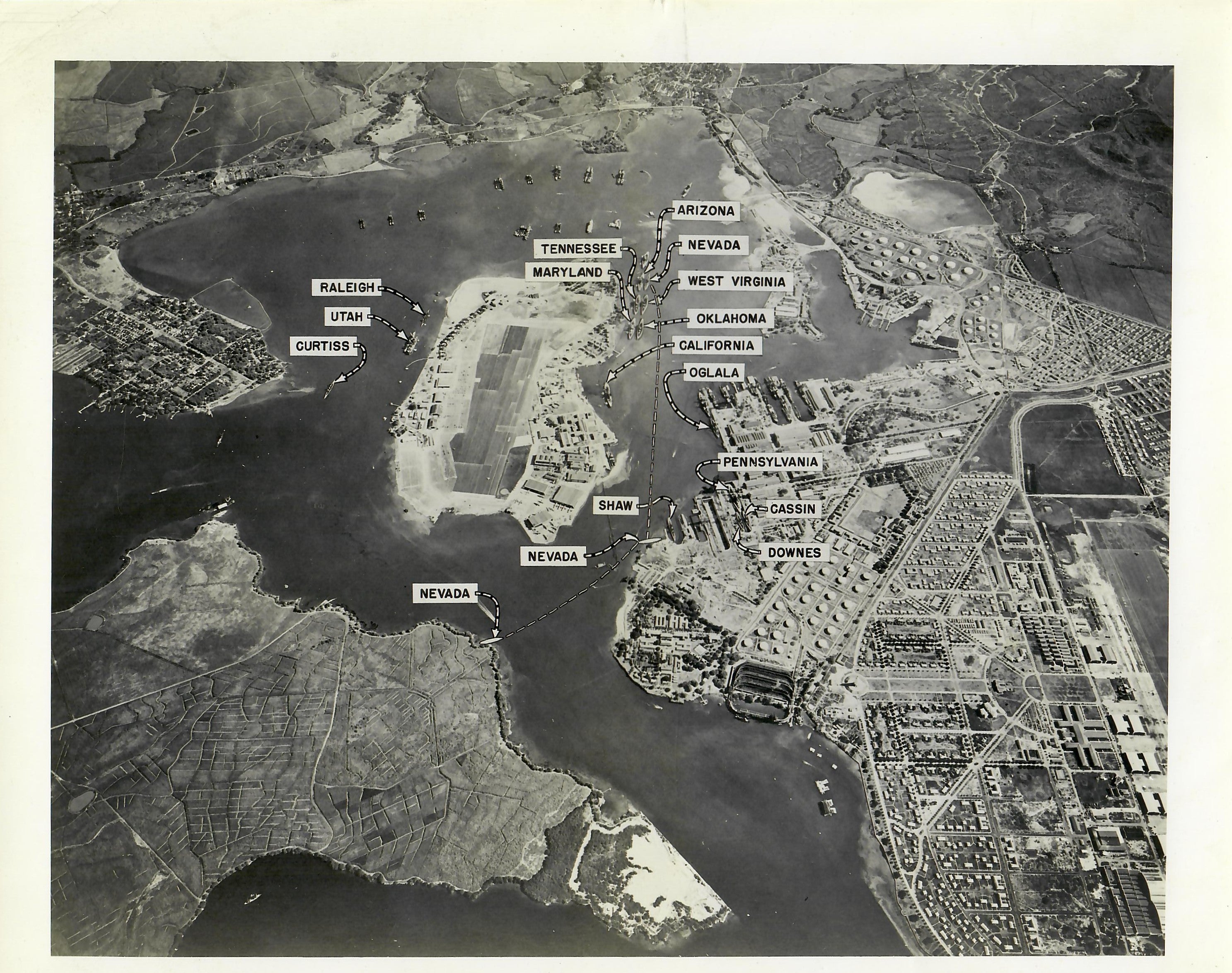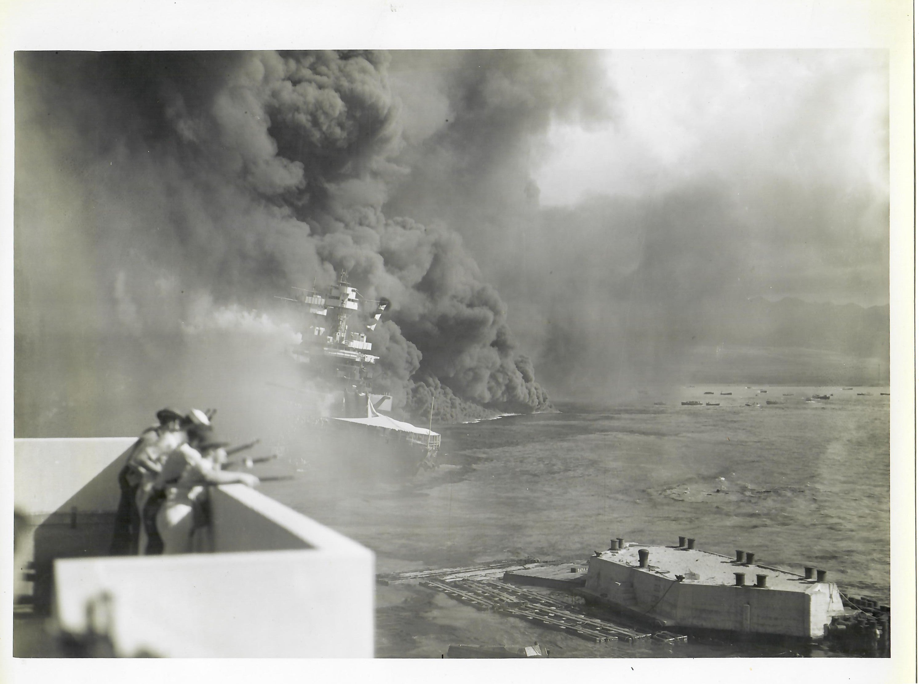 - Six curling 8 x 10 shots of burning ships at Pearl Harbor, marked for Chief of Bureau of Aeronautics.