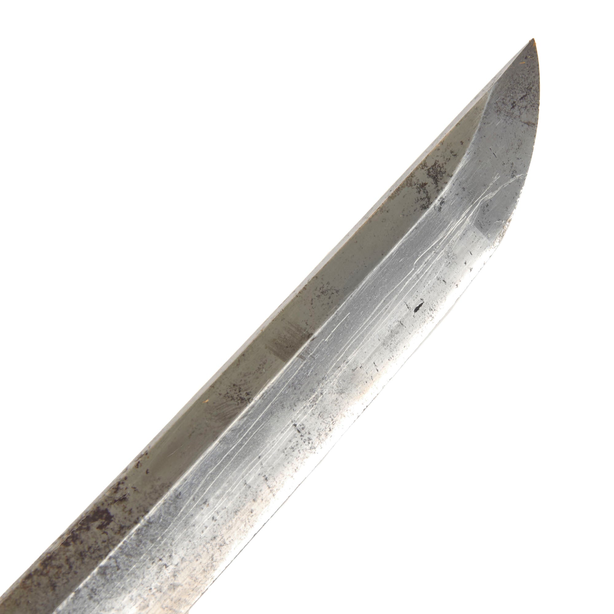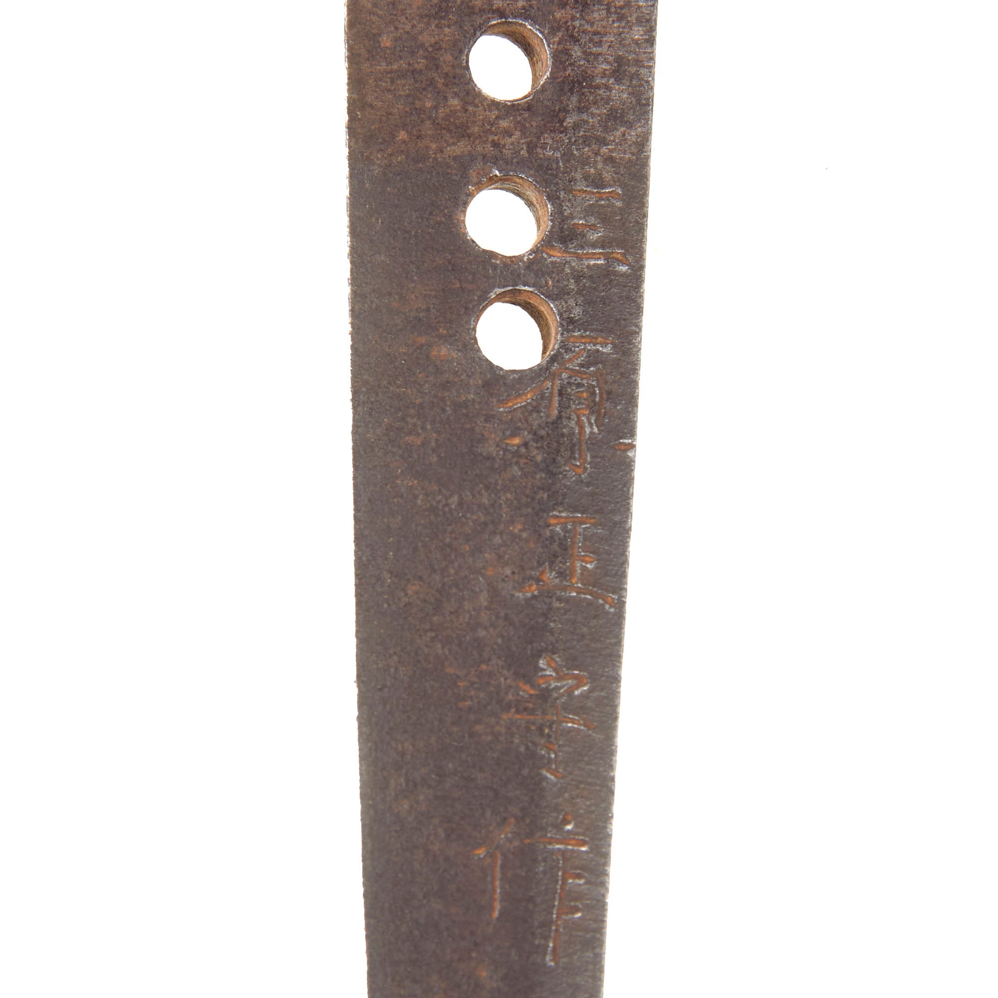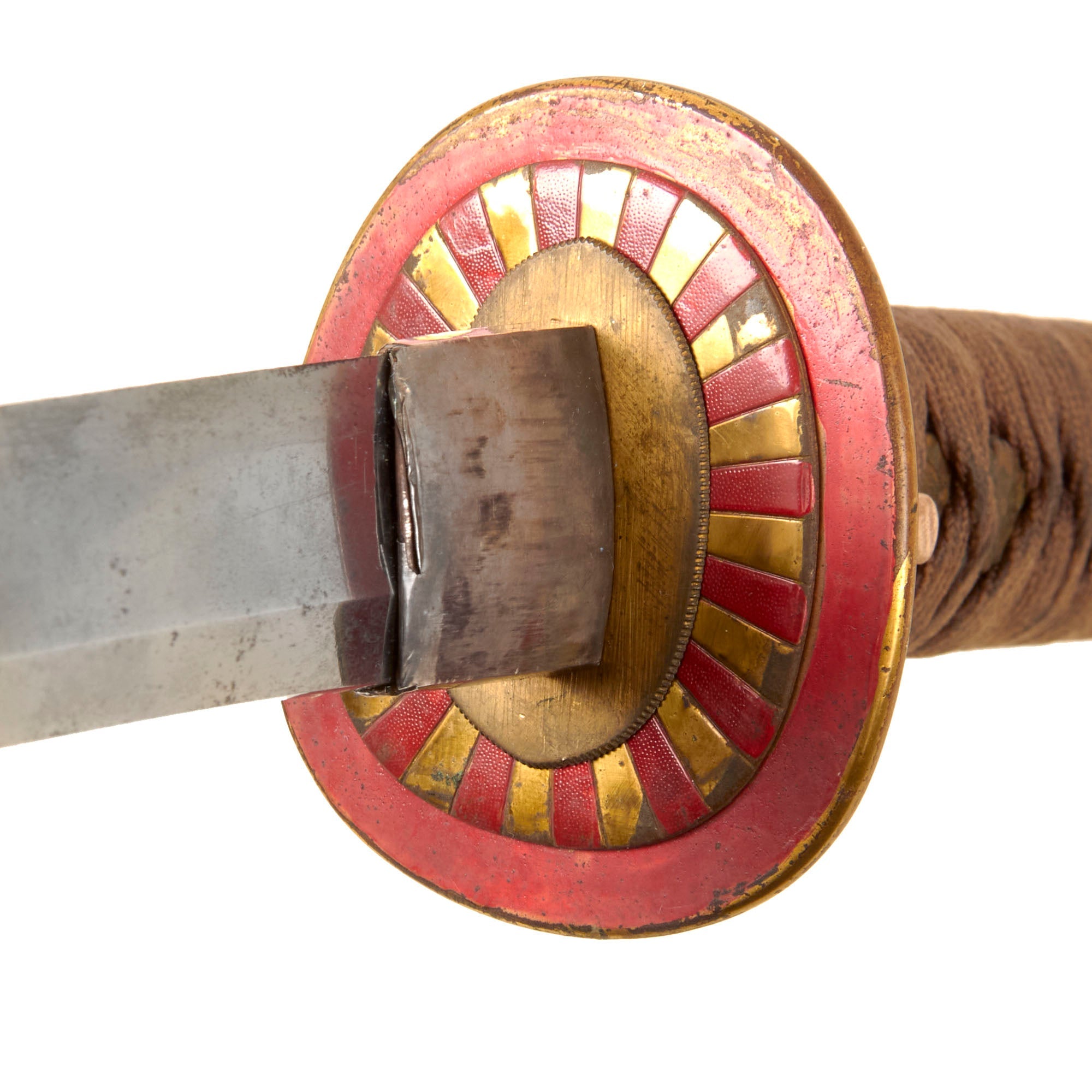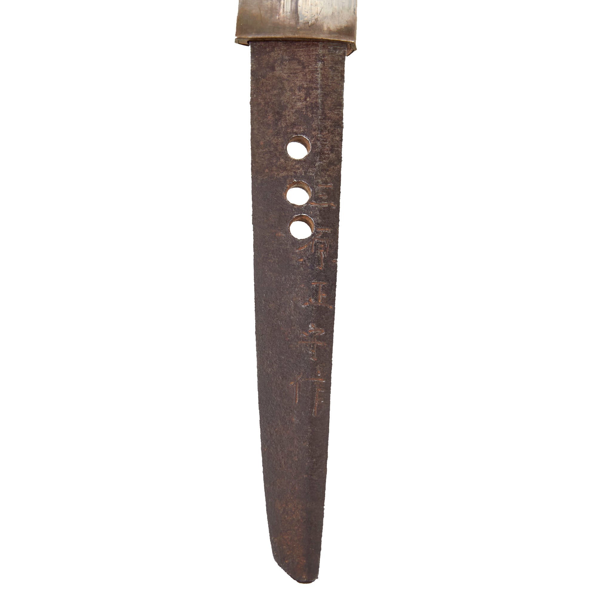 - WWII Japanese Navy Officer P1937 Kai-Gunto Katana with 16th Century Late Muromachi Period Blade by MIHARA MASAMORI and Sharkskin Shagreen Scabbard - dated 1567. The sword definitely shows signs of having been in a war, and the blade polish is a bit degraded, with the fittings also showing use and age. It is a HIGH GRADE example, signed on the tang with 三 原 正 守 作 - MIHARA MASAMORI SAKU (Made by Mihara Masamori) on one side, indicating the maker was a member of the very old and prestigious MIHARA school of swordsmithing in Japan. The other side is signed 永 禄 八 年 十 月 吉 日 - EIROKU HACHI NEN JU GATSU KICHI JITSU - "An auspicious day the 10th month of 1567". This blade is almost certainly a family blade, indicating the owner was definitely of some importance and lineage. We unfortunately do not know the history of the sword before it was gifted, but assume it came from a high-ranking officer on a captured ship. Definitely some incredible history to this sword!