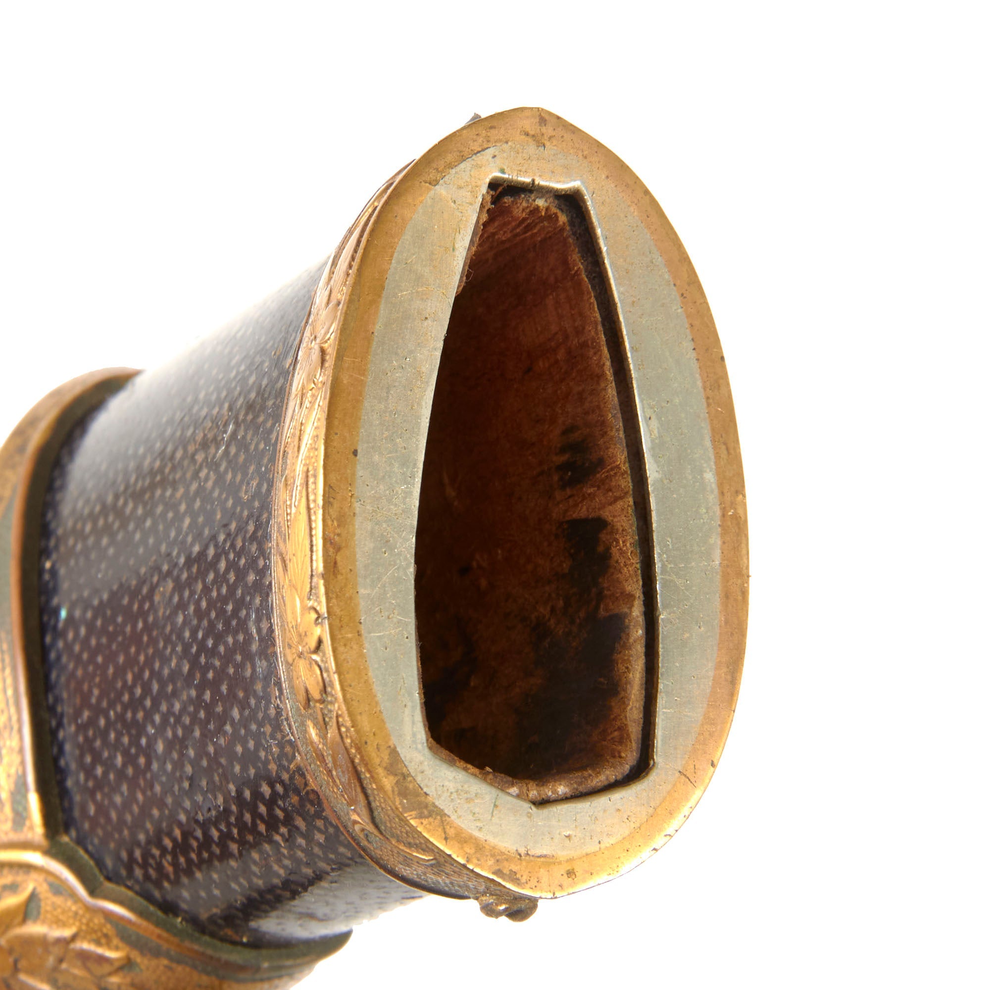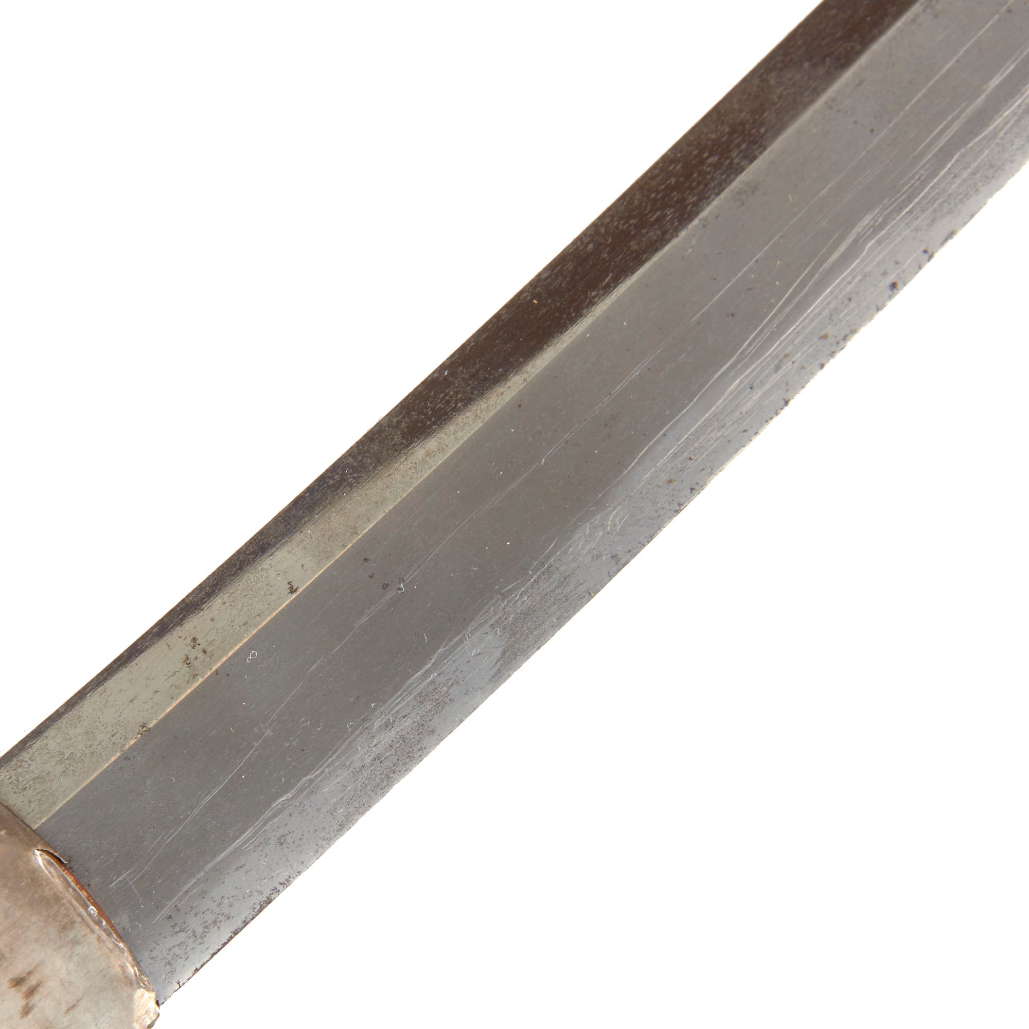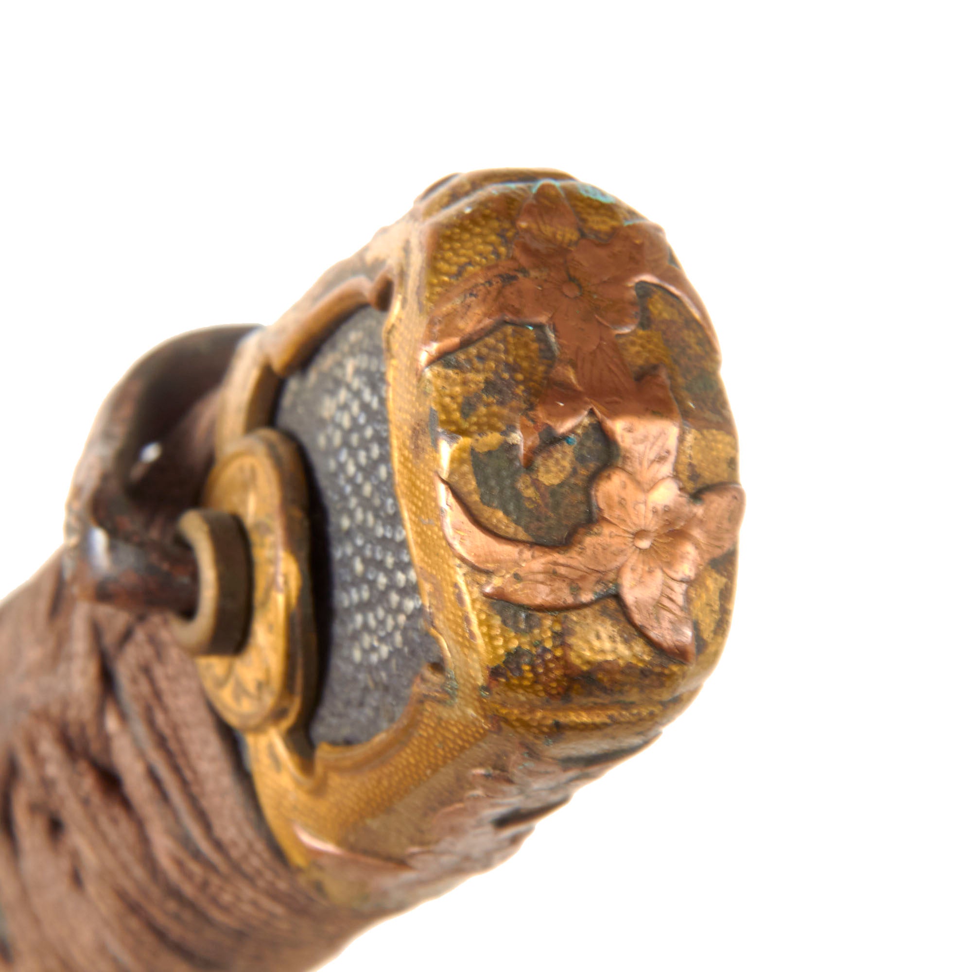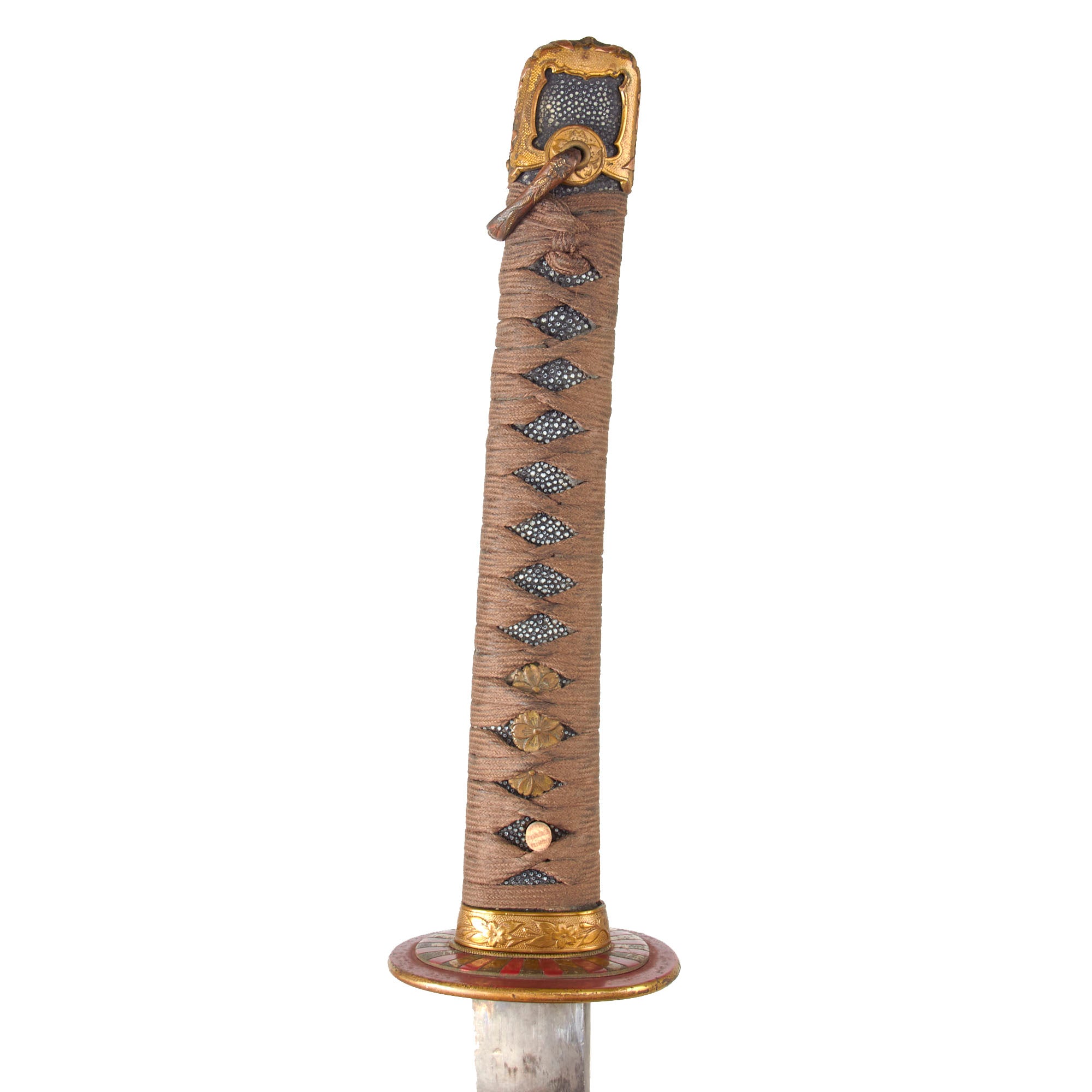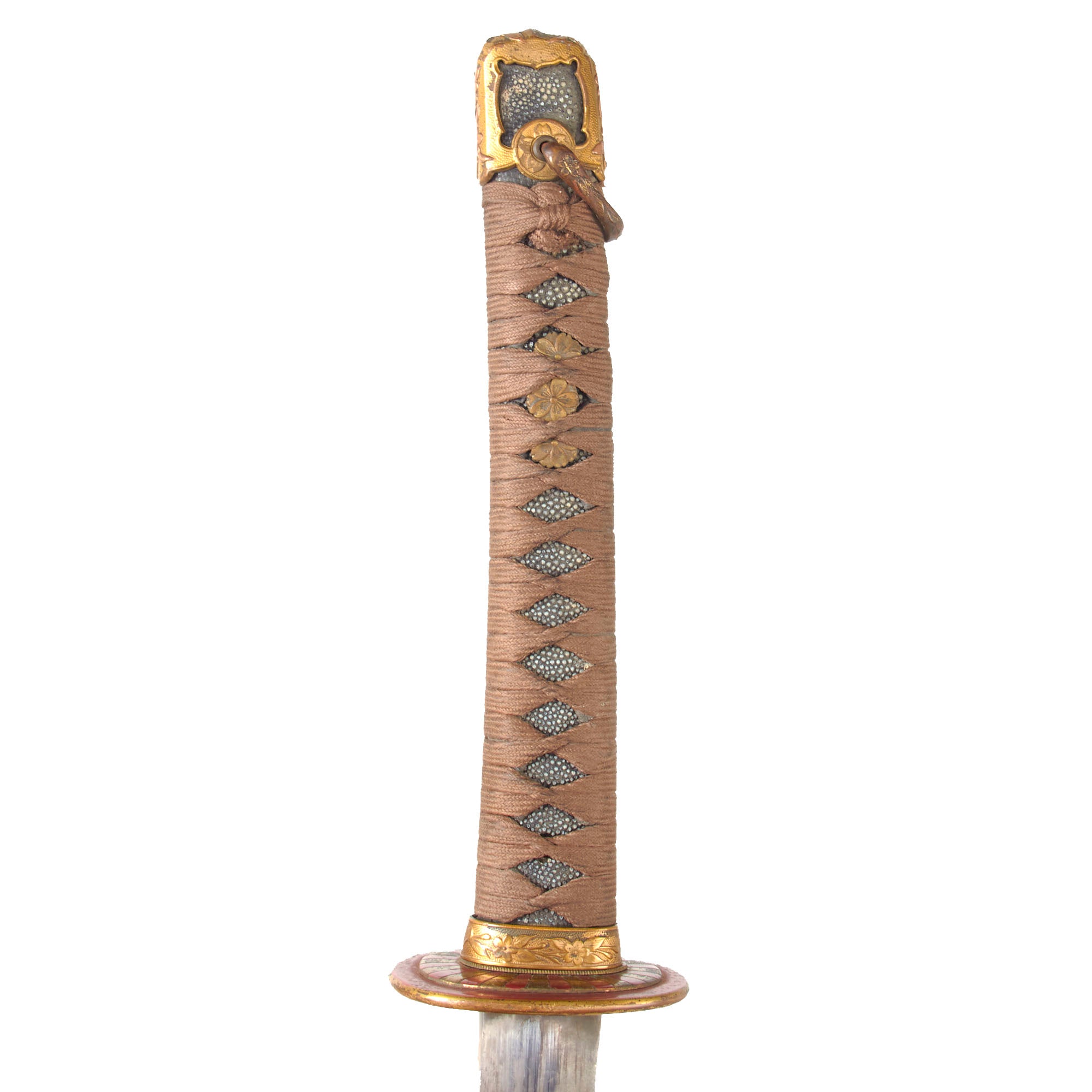 - WWII Japanese Navy Officer P1937 Kai-Gunto Katana with 16th Century Late Muromachi Period Blade by MIHARA MASAMORI and Sharkskin Shagreen Scabbard - dated 1567. The sword definitely shows signs of having been in a war, and the blade polish is a bit degraded, with the fittings also showing use and age. It is a HIGH GRADE example, signed on the tang with 三 原 正 守 作 - MIHARA MASAMORI SAKU (Made by Mihara Masamori) on one side, indicating the maker was a member of the very old and prestigious MIHARA school of swordsmithing in Japan. The other side is signed 永 禄 八 年 十 月 吉 日 - EIROKU HACHI NEN JU GATSU KICHI JITSU - "An auspicious day the 10th month of 1567". This blade is almost certainly a family blade, indicating the owner was definitely of some importance and lineage. We unfortunately do not know the history of the sword before it was gifted, but assume it came from a high-ranking officer on a captured ship. Definitely some incredible history to this sword!