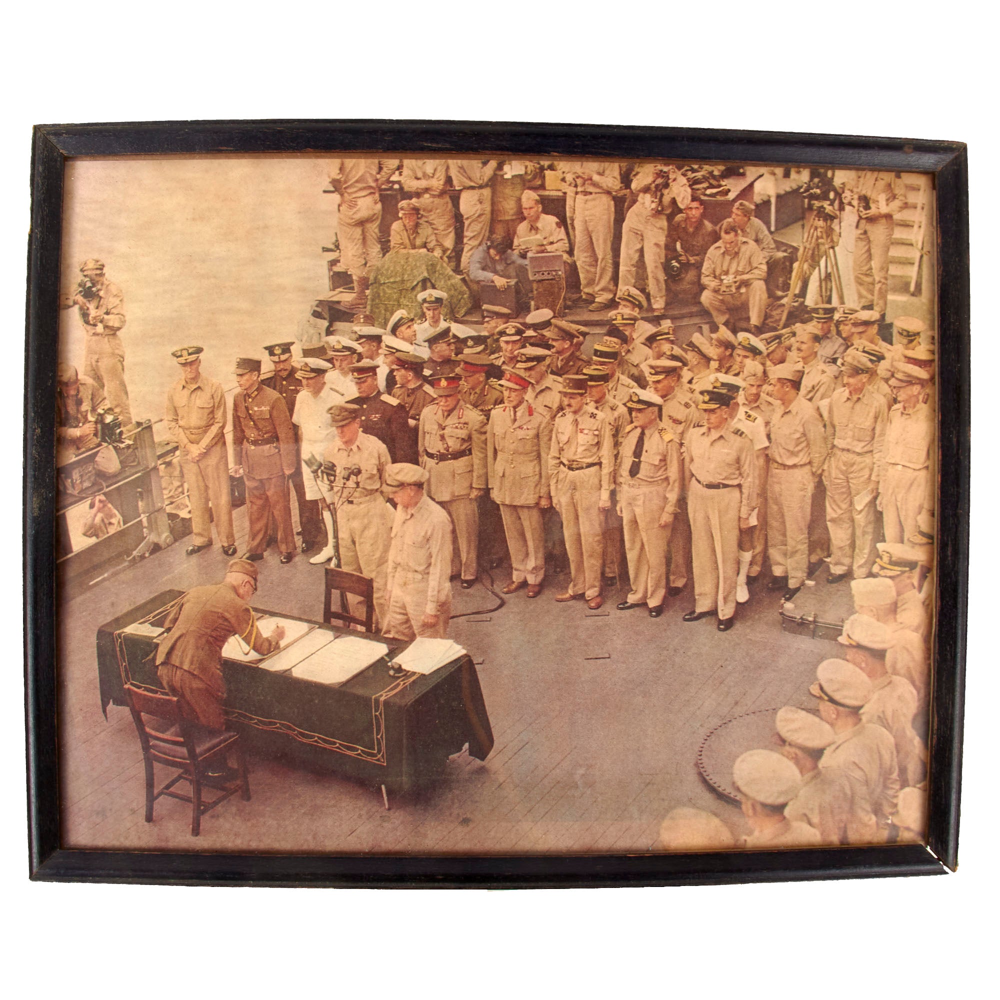 - 11 ½ x 14 ½” Framed colorized photo of signing of Japanese Surrender, the first publication of said full-color photo.