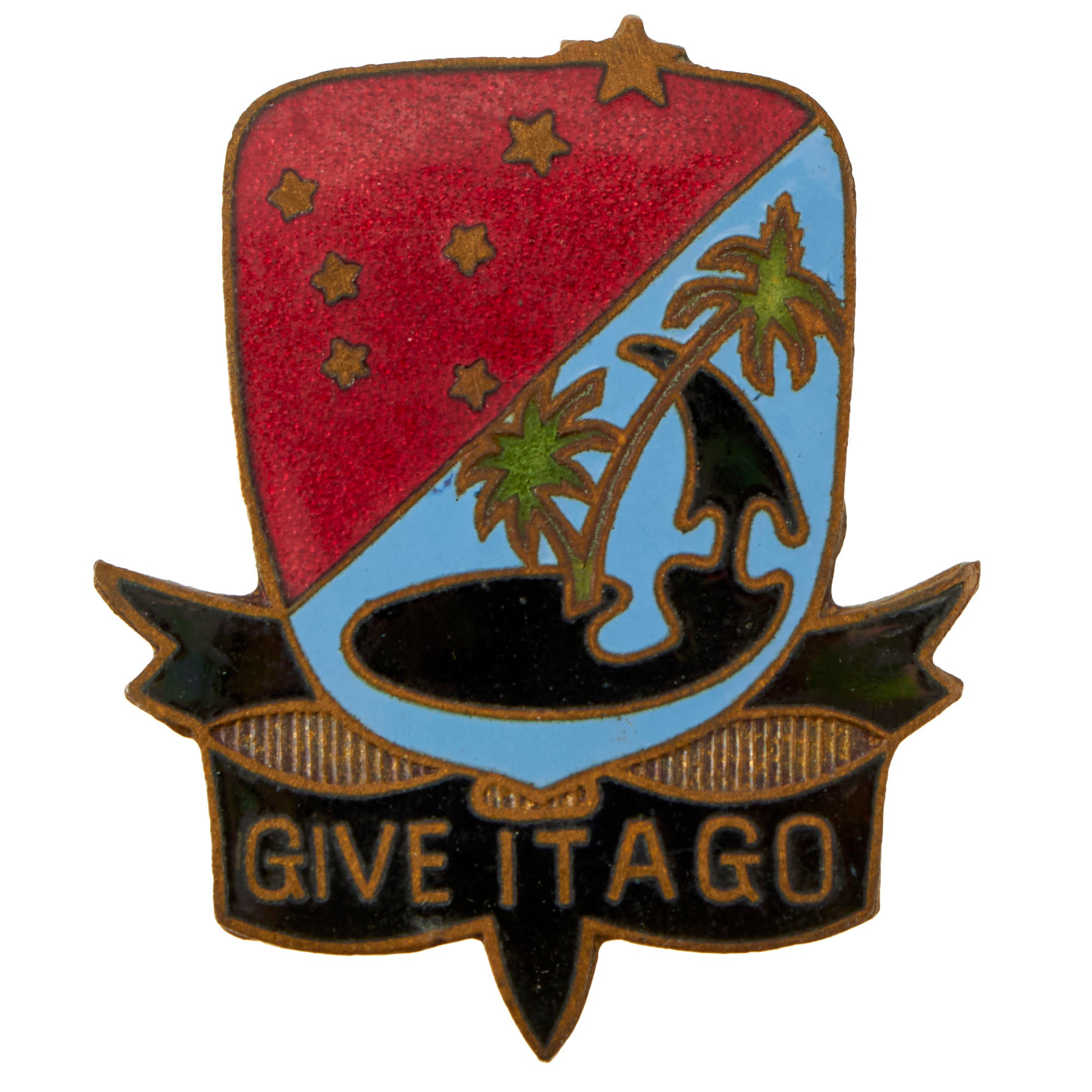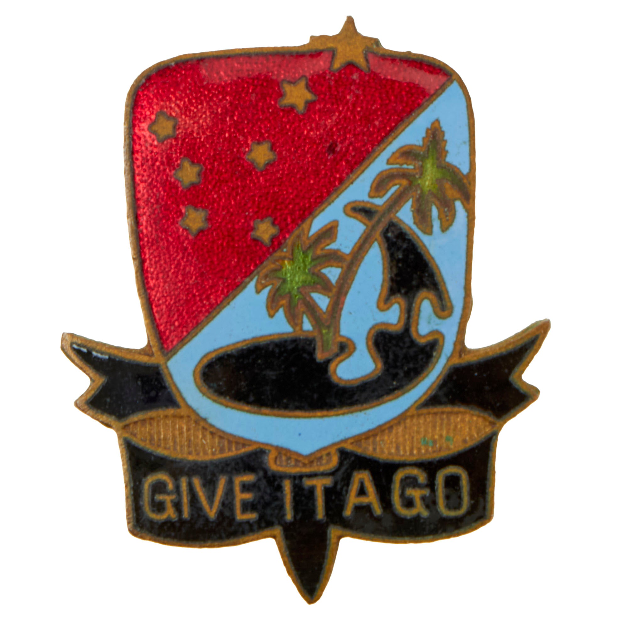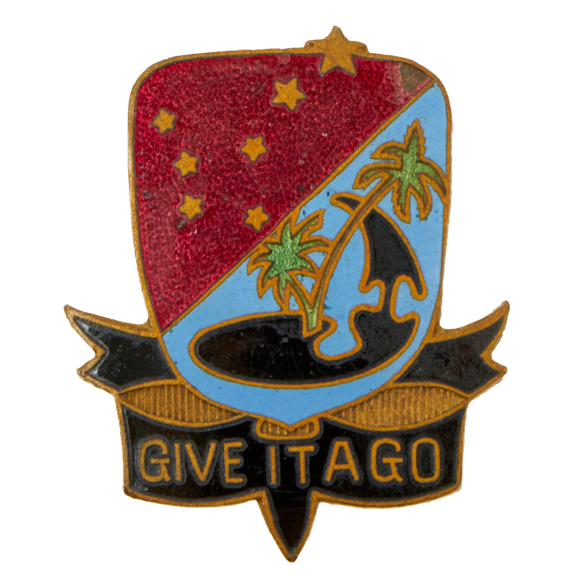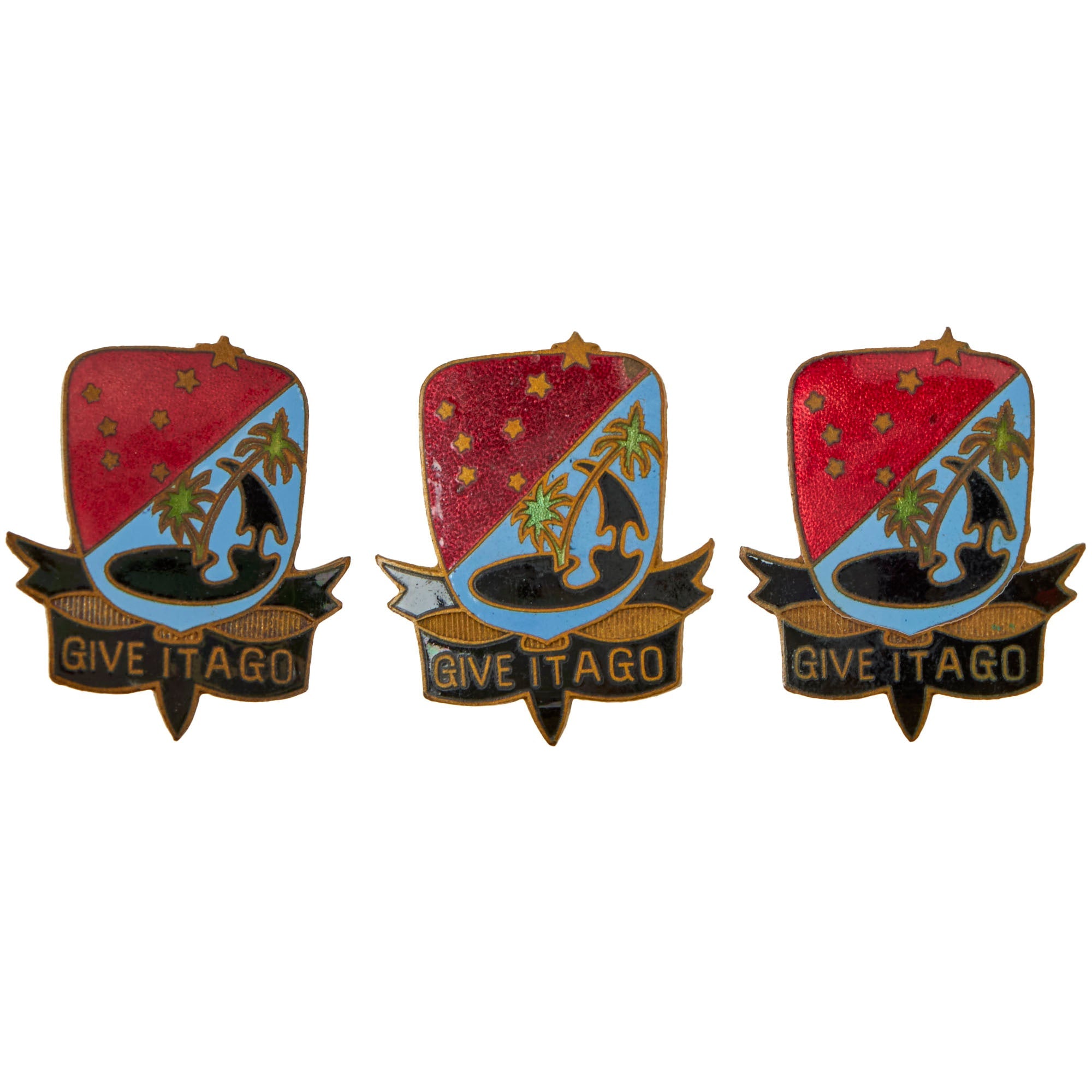 This is a fantastic set of three Distinctive Unit Insignias or DUIs for the 271st Field Artillery Battalion, which was assigned to the 1st Cavalry Division during World War II. The unit was activated in Australia in 1943, so it makes sense that these enamel DUIs are Australian-made! They have great enamel construction and bear the motto Give it a Go, picked up in Australia.