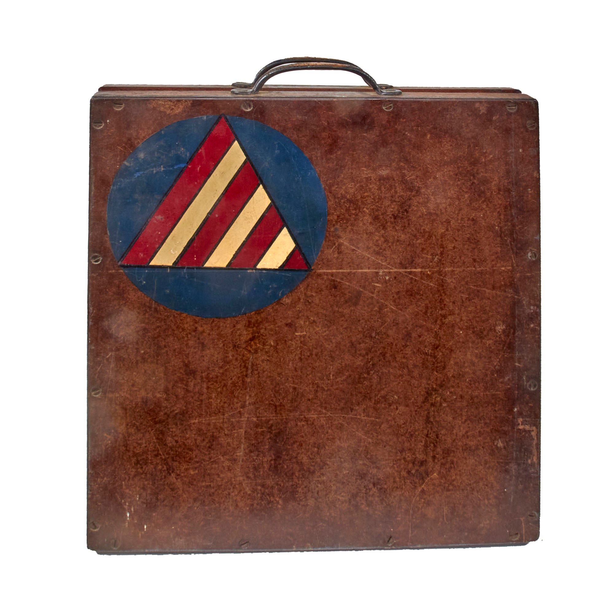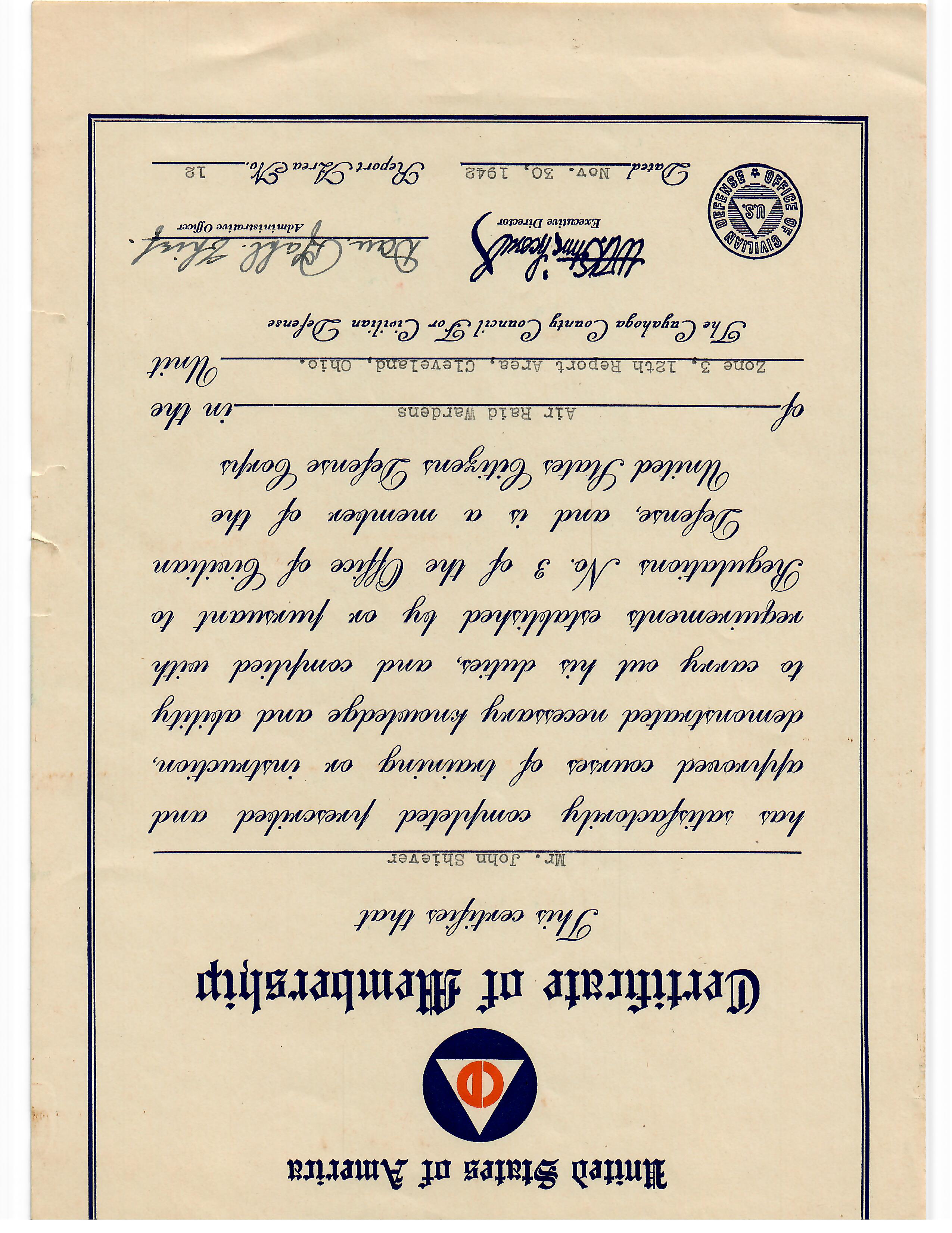 It’s made from particle board. The briefcase measures 13½ x 12½ x 2” and has the Civil Defense Air Raid Warden insignia embossed on both sides. The interior has some great material including a certificate qualifying Jordan as an Air Raid Warden, Dated November 30th, 1942. He certainly spent a lot of time in this position!