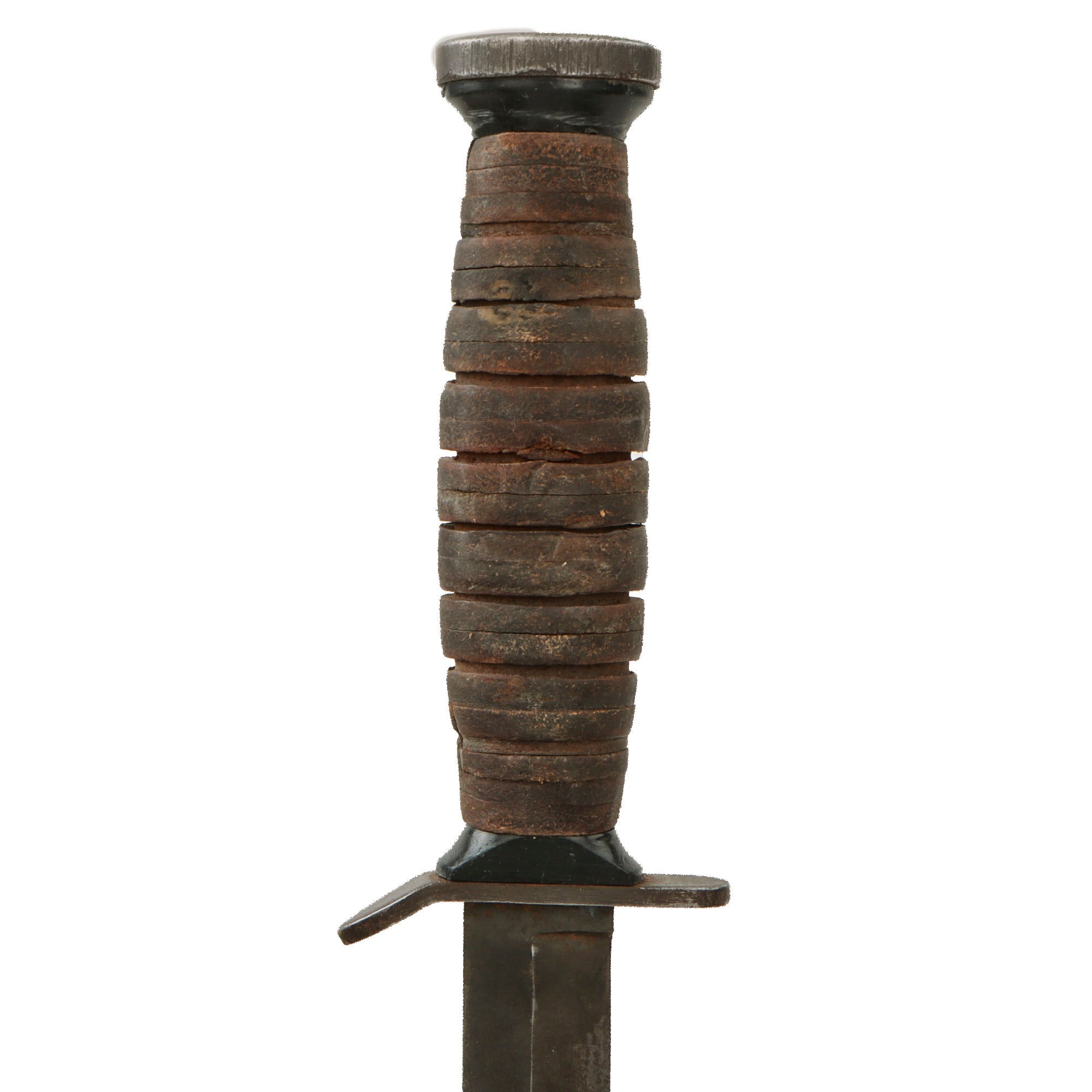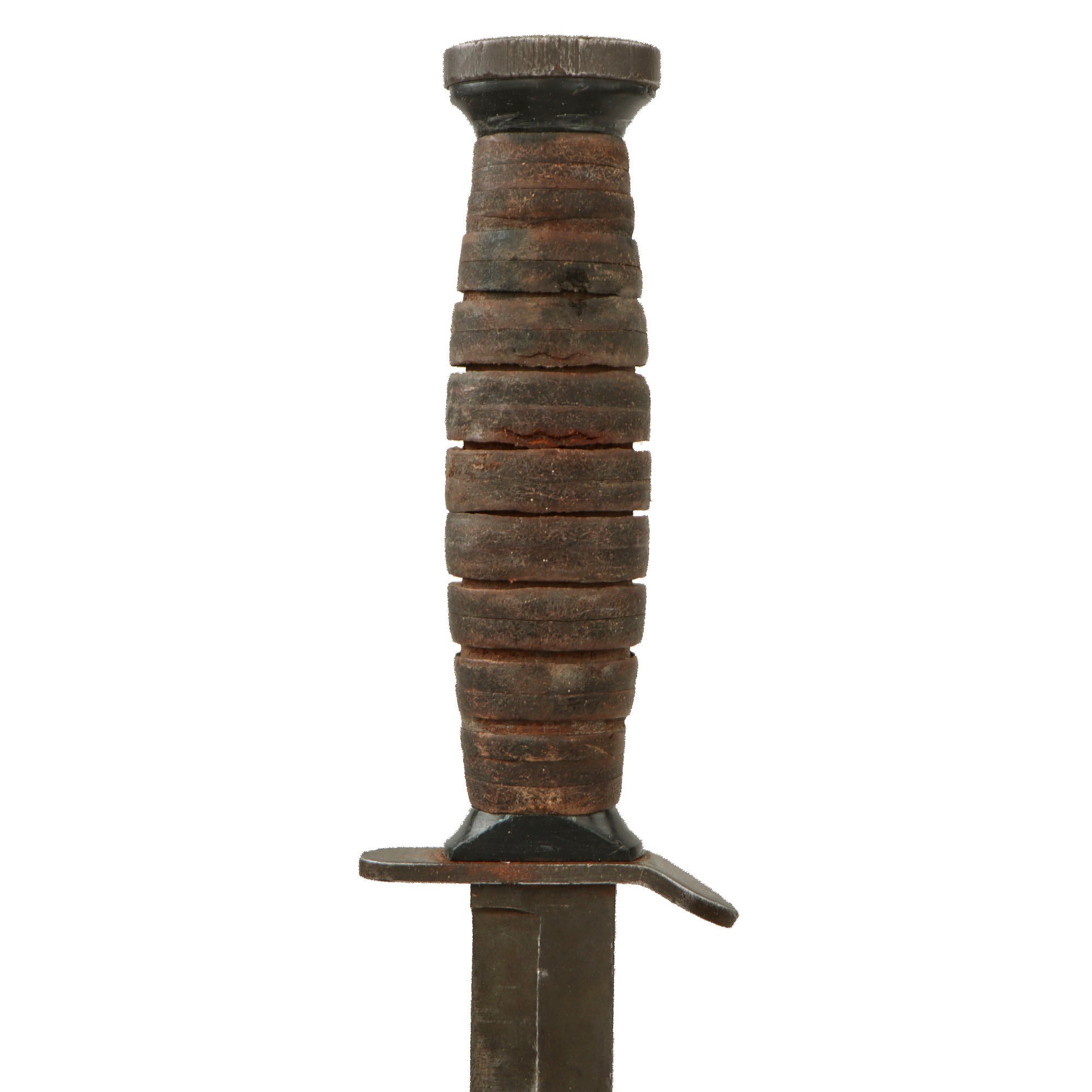 Original U.S. WWII “Commercial” M3 Fighting Knife with Black Plastic Spacers & Damaged Private Purchase M6 Scabbard Likely by Barwood