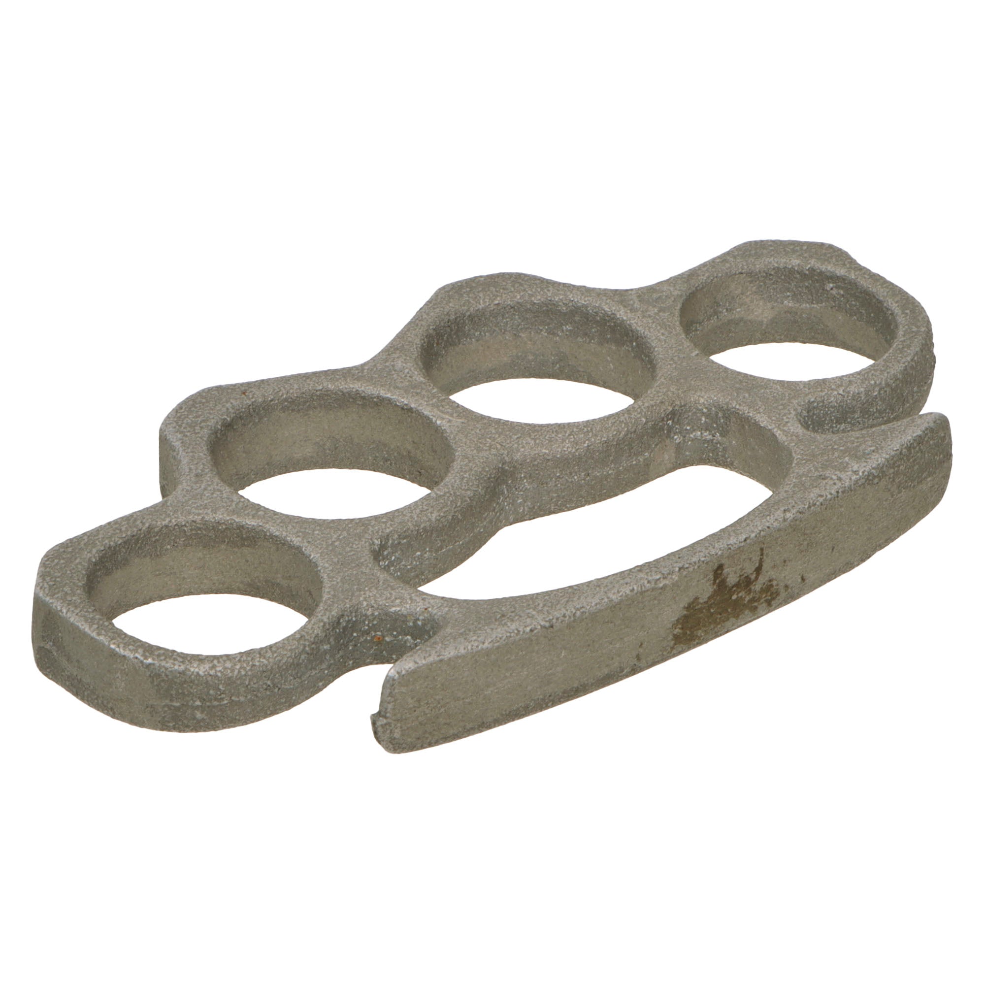 Original Item: Only One Available. This is a very nice example of a U.S. WWII set of Custom Made Cast Aluminum Brass Knuckle Dusters, used for close combat in the field. As they were more lightweight than brass, they may have been easier to use, not requiring as much force to move, but still protecting the fingers. These were often cast aboard large ships, who necessarily had small foundries and metalworkers needed to effect repairs on the various parts of a ship. Compared to their usual work, making cast metal knuckles was relatively simple. The look of the surface texture suggests that they were sand cast, a very old and effective way of casting metal.