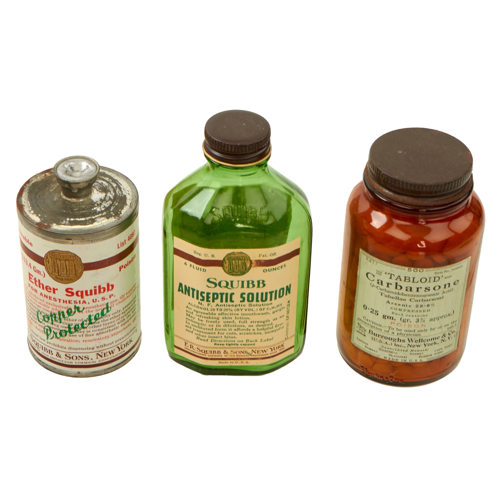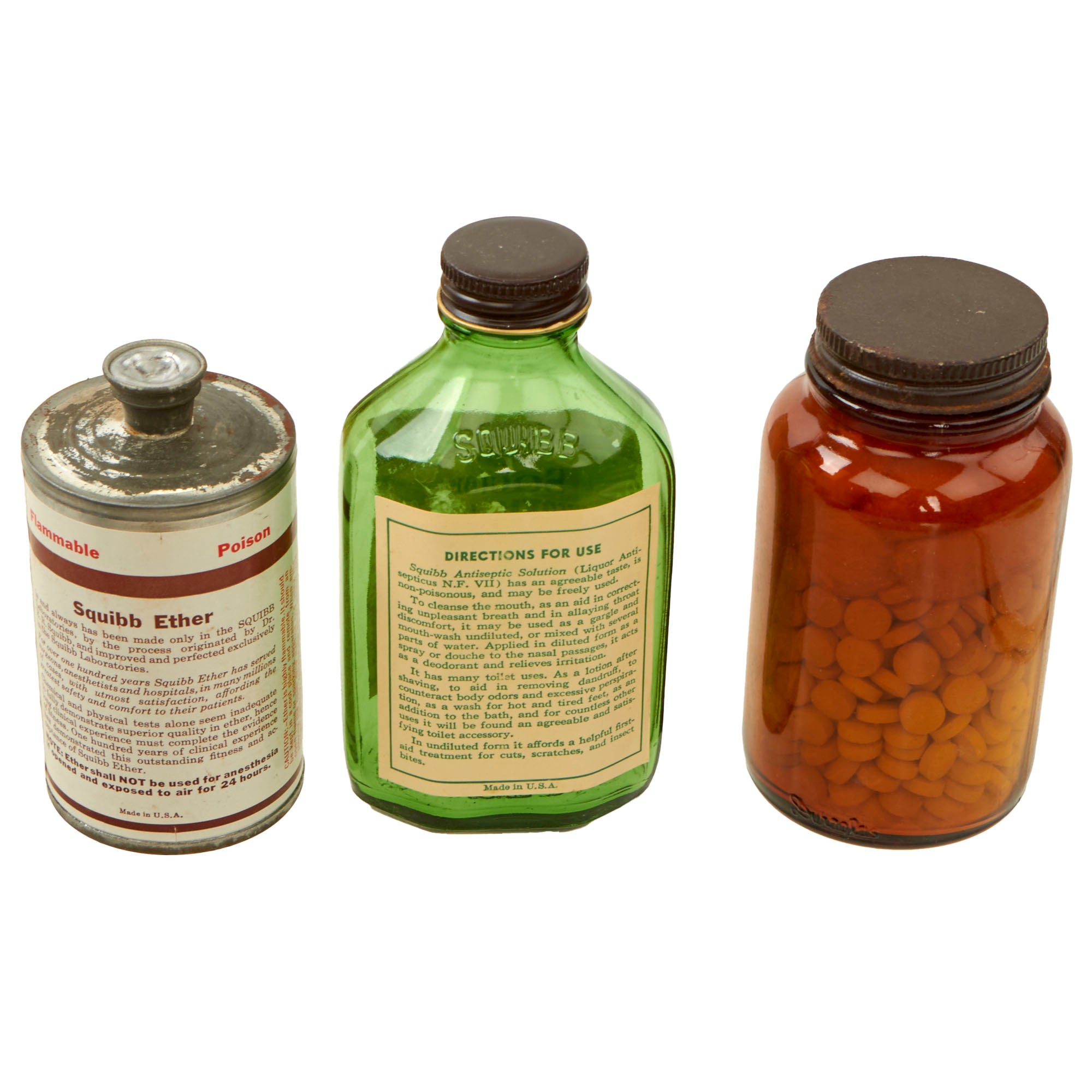 - Empty bottle of Squibb Antiseptic Solution.