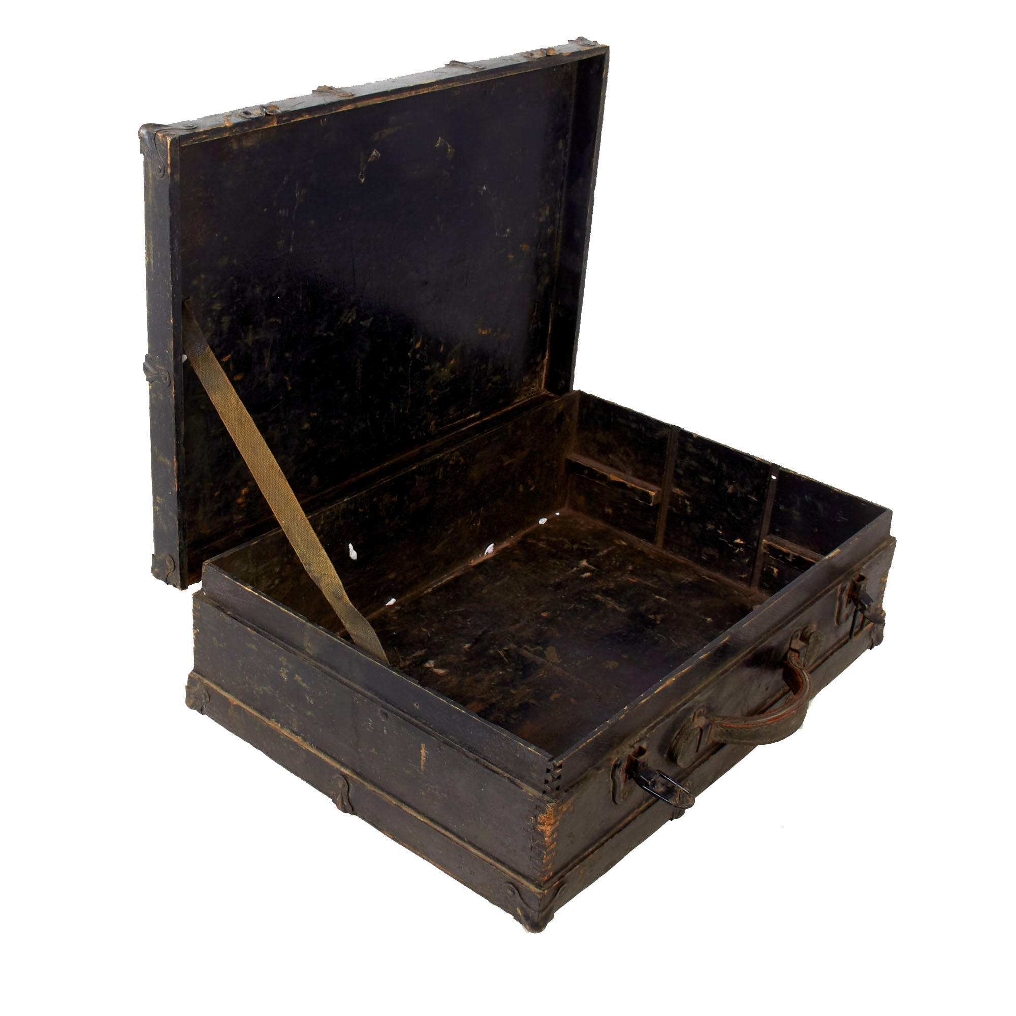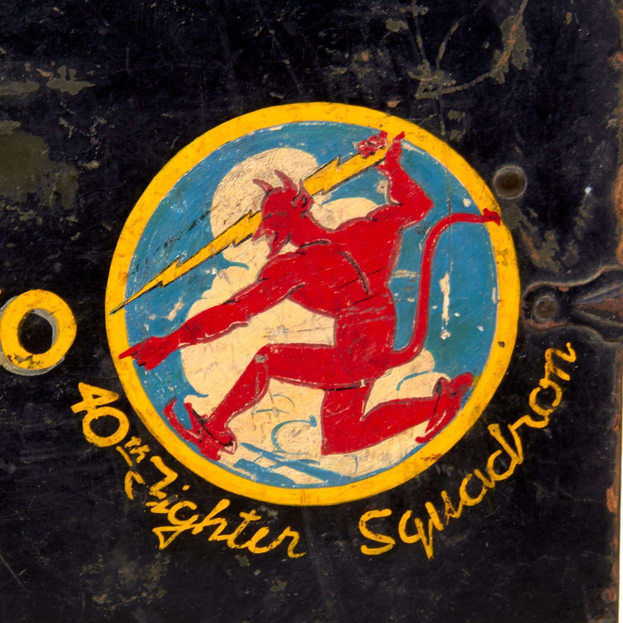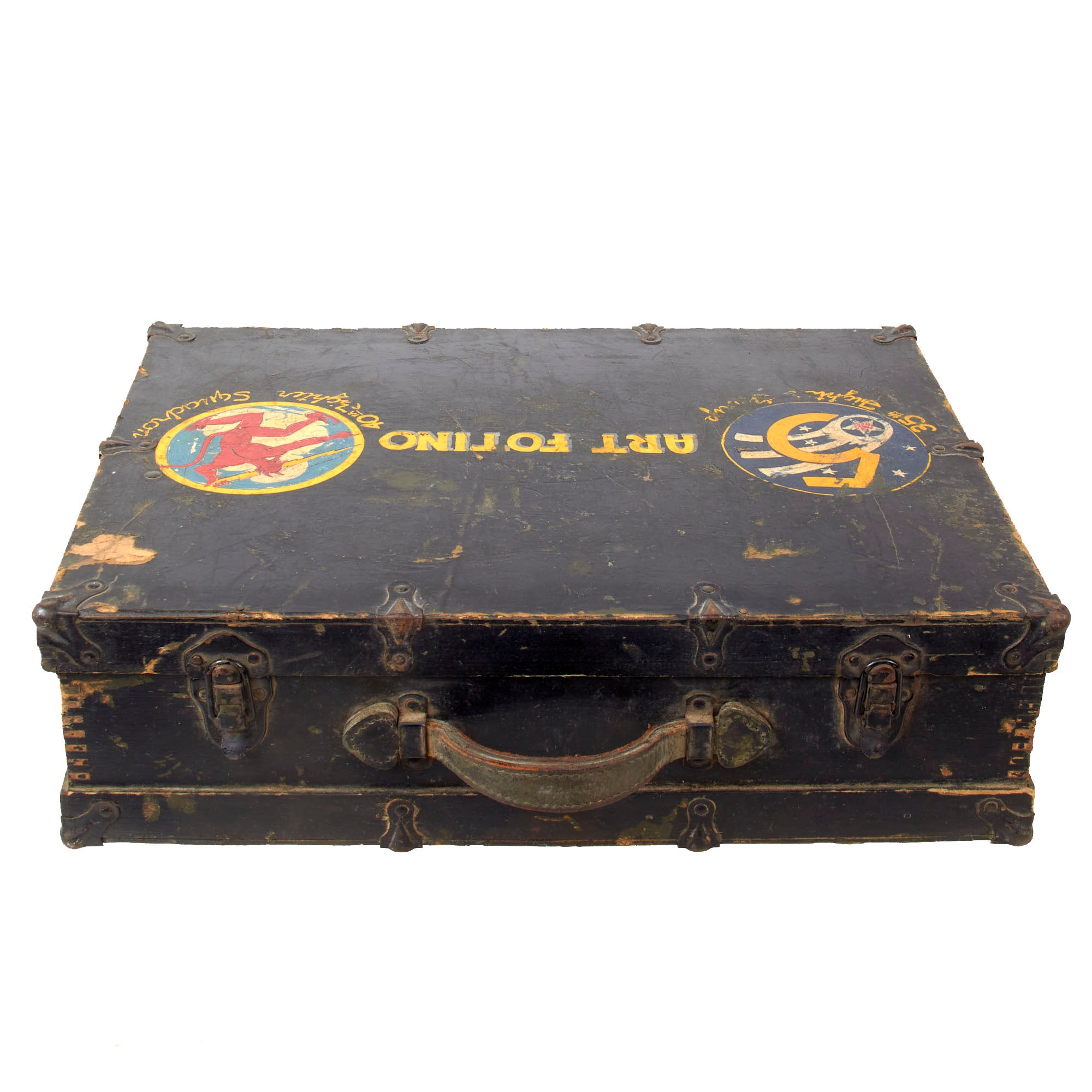 Original Item. One-of-a-Kind. This is the gorgeously-painted suitcase / trunk of Private First Class Arthur Gerard Fotino, 40th Fighter Squadron, 35th Fighter Group, 5th Air Force. Fotino participated in the Air Offensive Japan, New Guinea, Western Pacific, Southern Philippines, Luzon, and Ryukyus. He was attached to the 40th FS operating special equipment used in refueling planes, and served 17 months of overseas duty in the Asiatic-Pacific Theater of Operations.