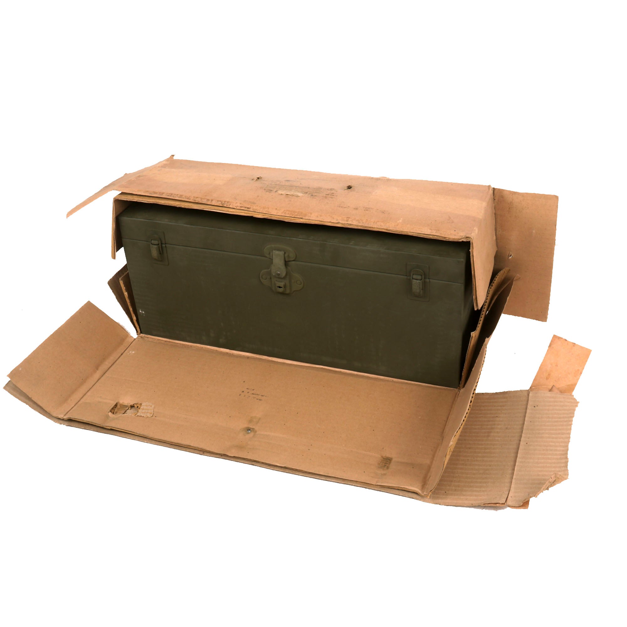 Original Item. Only One Available. This is a great New Old Stock example of a WWII Armorer’s tool chest in its original shipping box which has deteriorated heavily. Measures approximately 22 1/2" x 8 1/2" x 9 1/4" when packed in the original box.