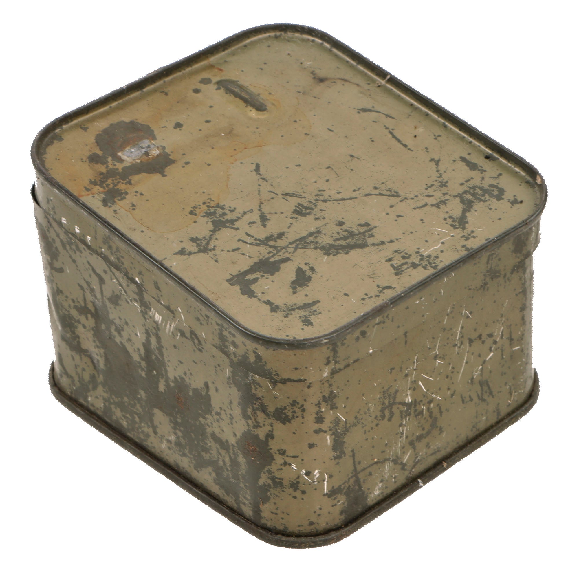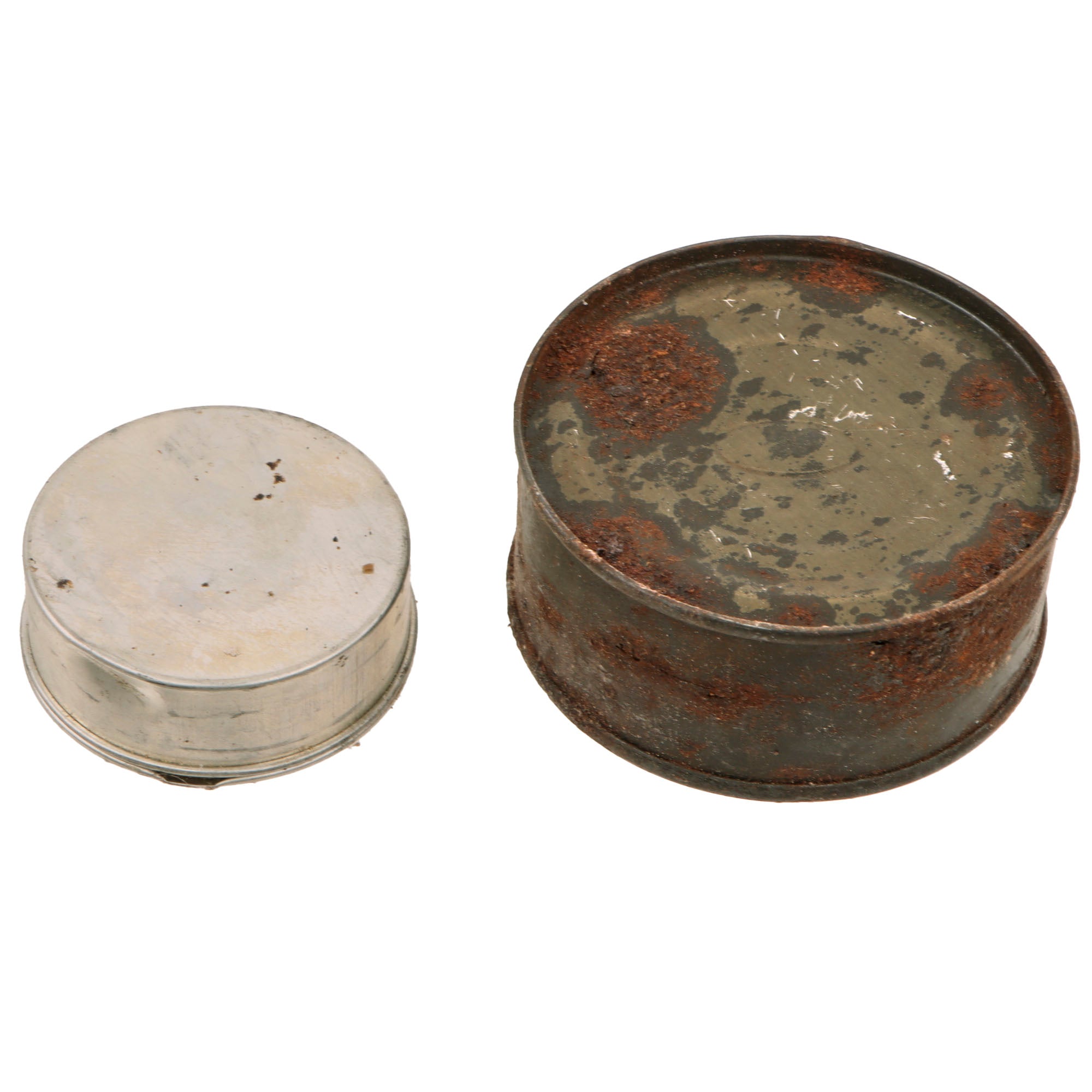 - “Sealed” silver colored tin, heavy residue and damage.