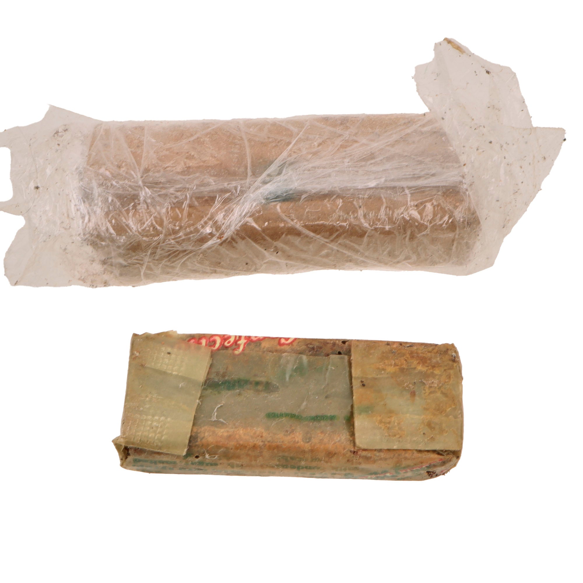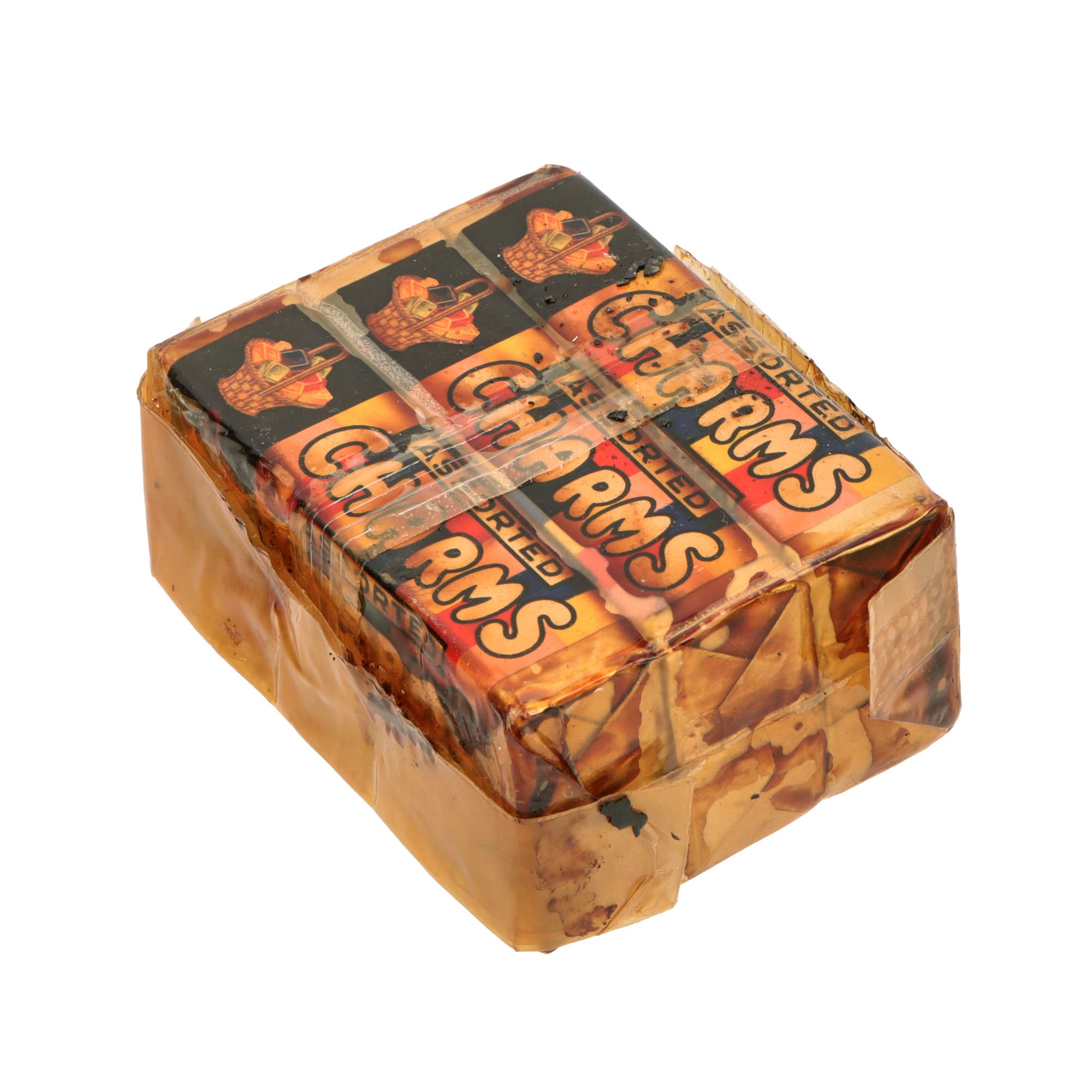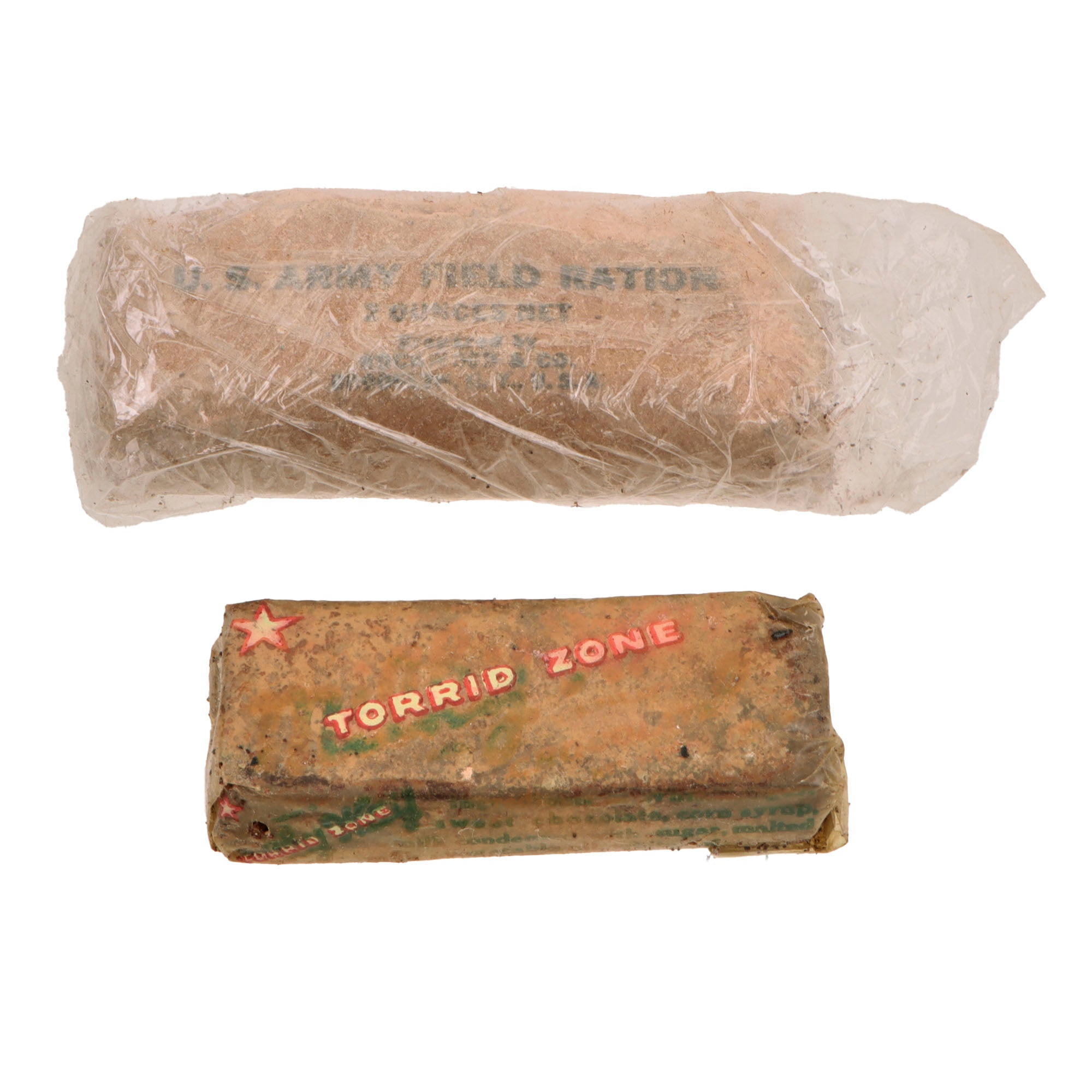 - US Army Field Ration D small size 2 ounces with very heavy damage and loss of cover material so chocolate residue is all over the plastic covering. Heavy damage.