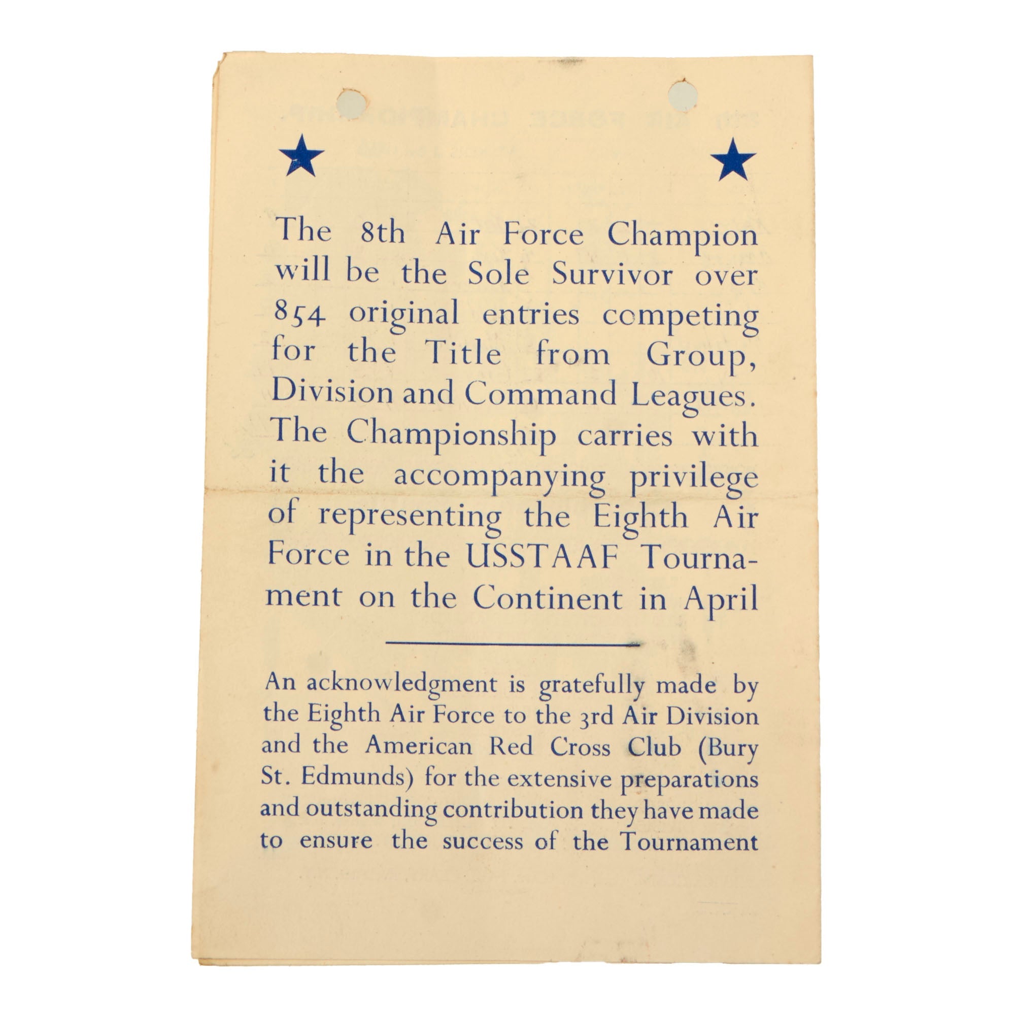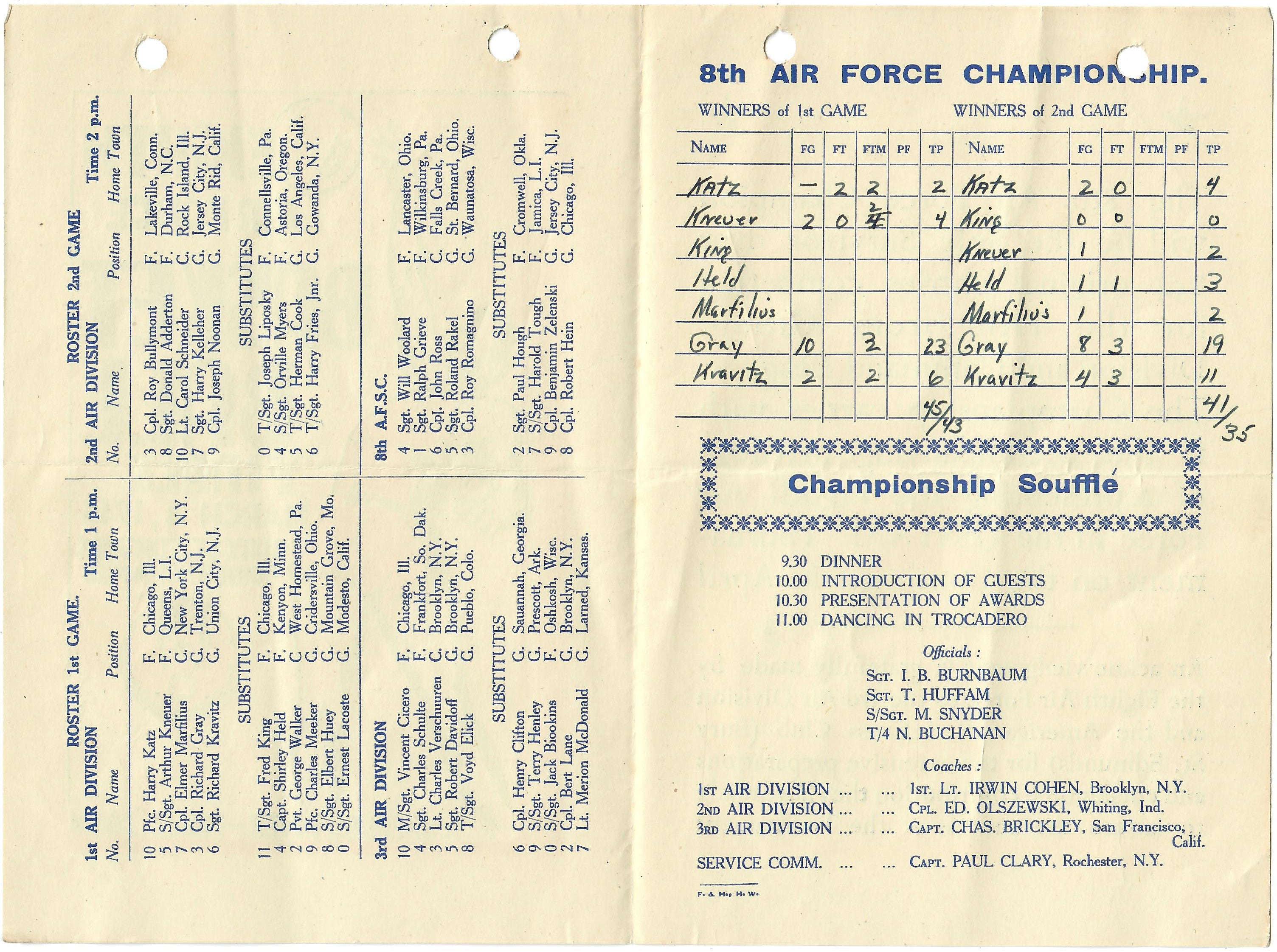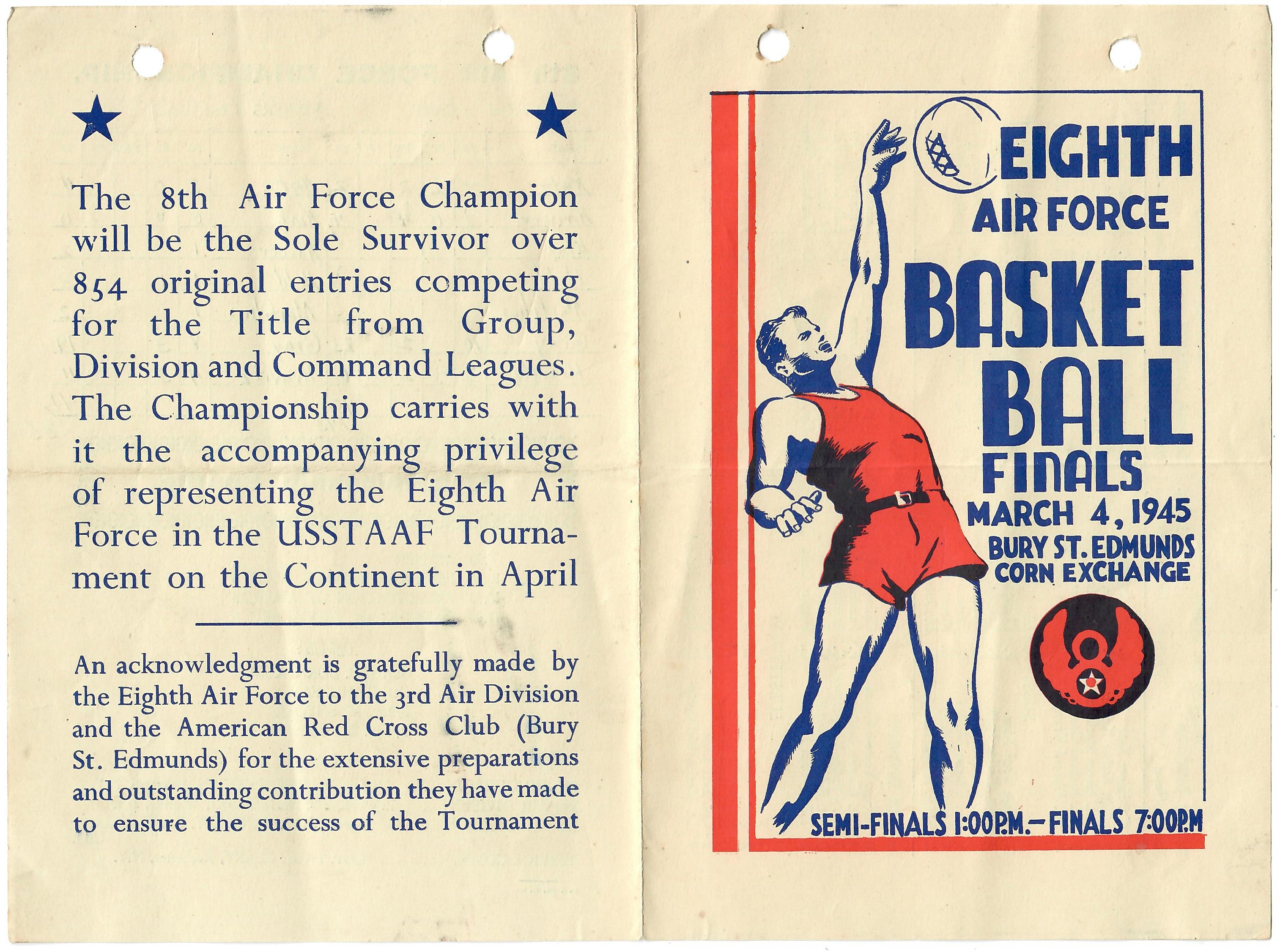 - 8th Air Force Basketball finals March 4th, 1945 program with winners of 1st and 2nd game filled in. Great piece.