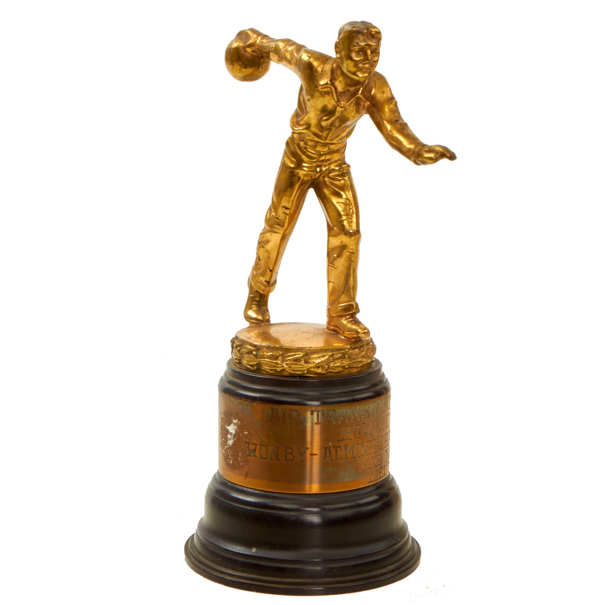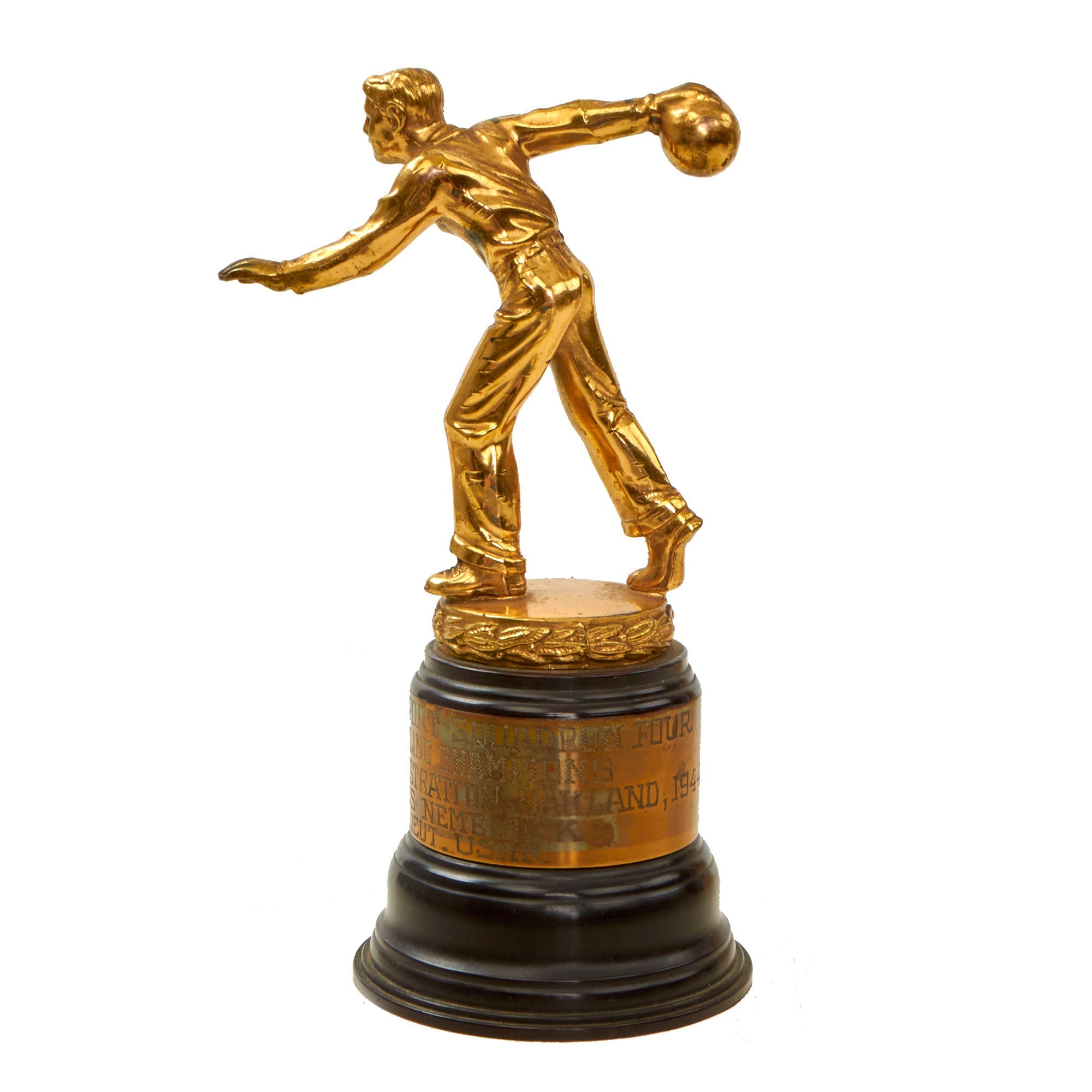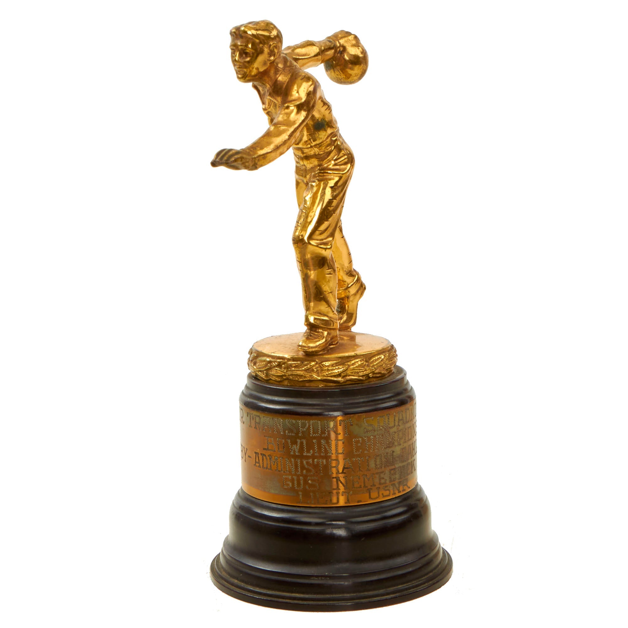 - Bowling Trophy engraved AIR TRANSPORT SQUADRON FOUR BOWLING CHAMPIONS WON BY - ADMINISTRATION OAKLAND, 1944 GUS NEMECHEK LIEUT. USNR.. Great shape overall. Measures 6¾” tall.